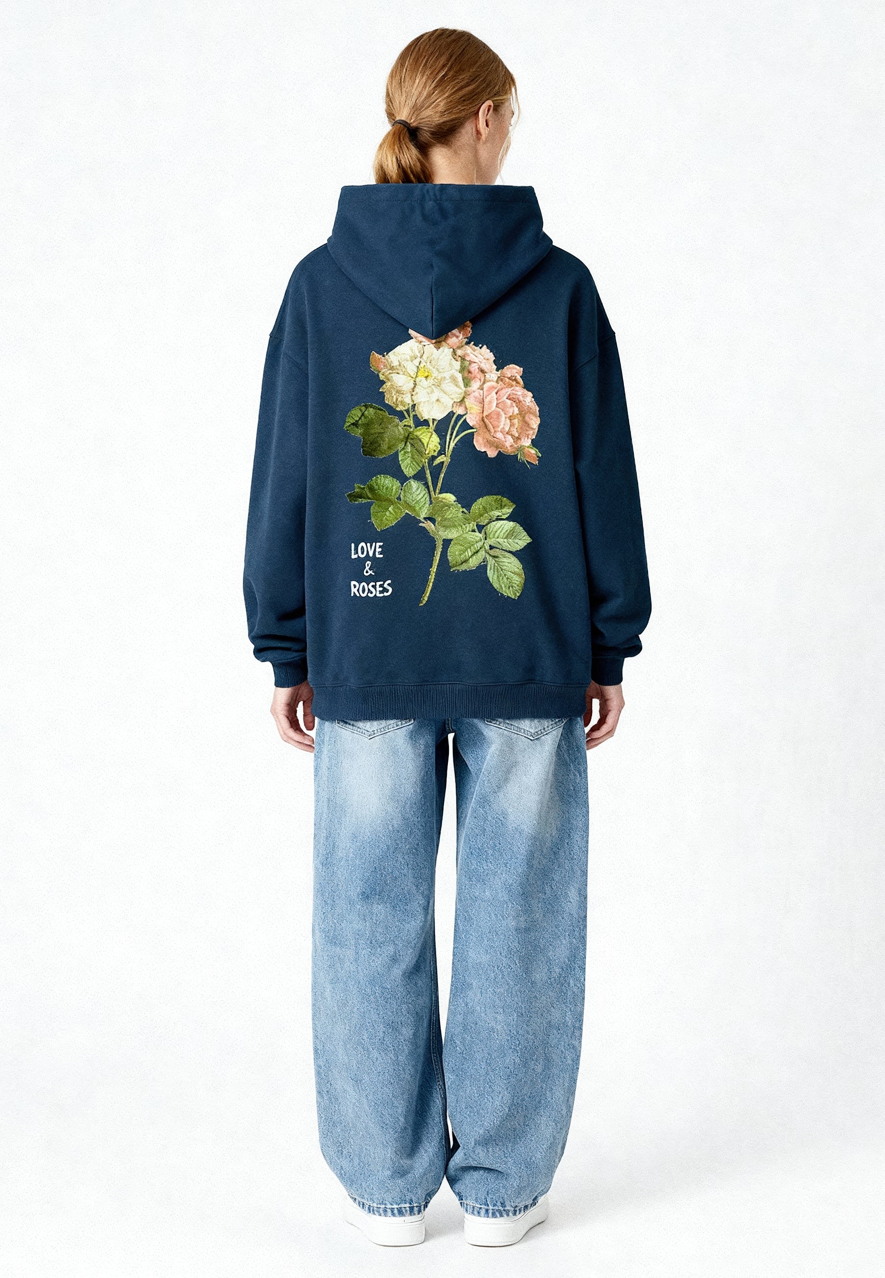 Sweat à Capuche Oversize Imprimé au Dos "Roses"
