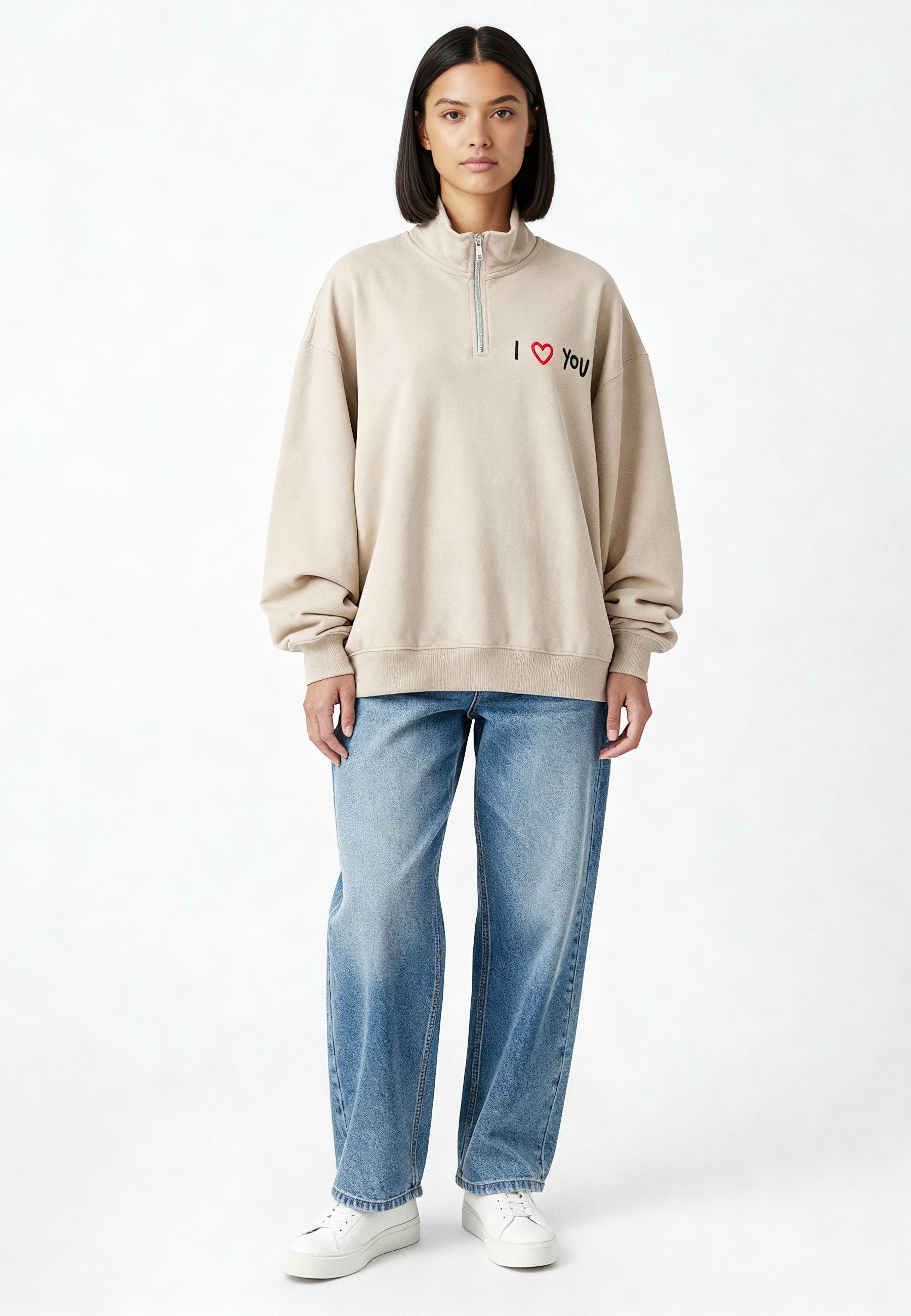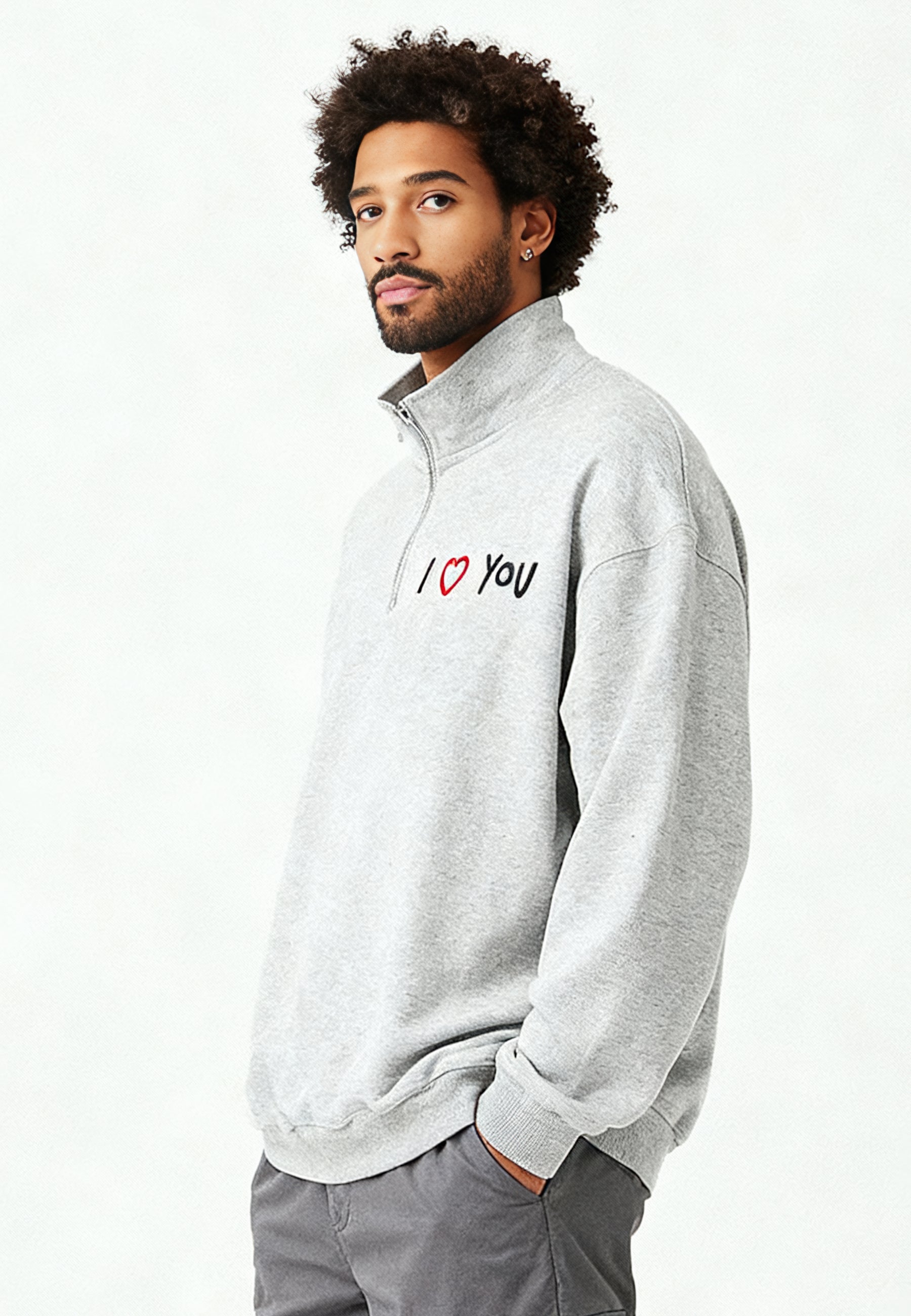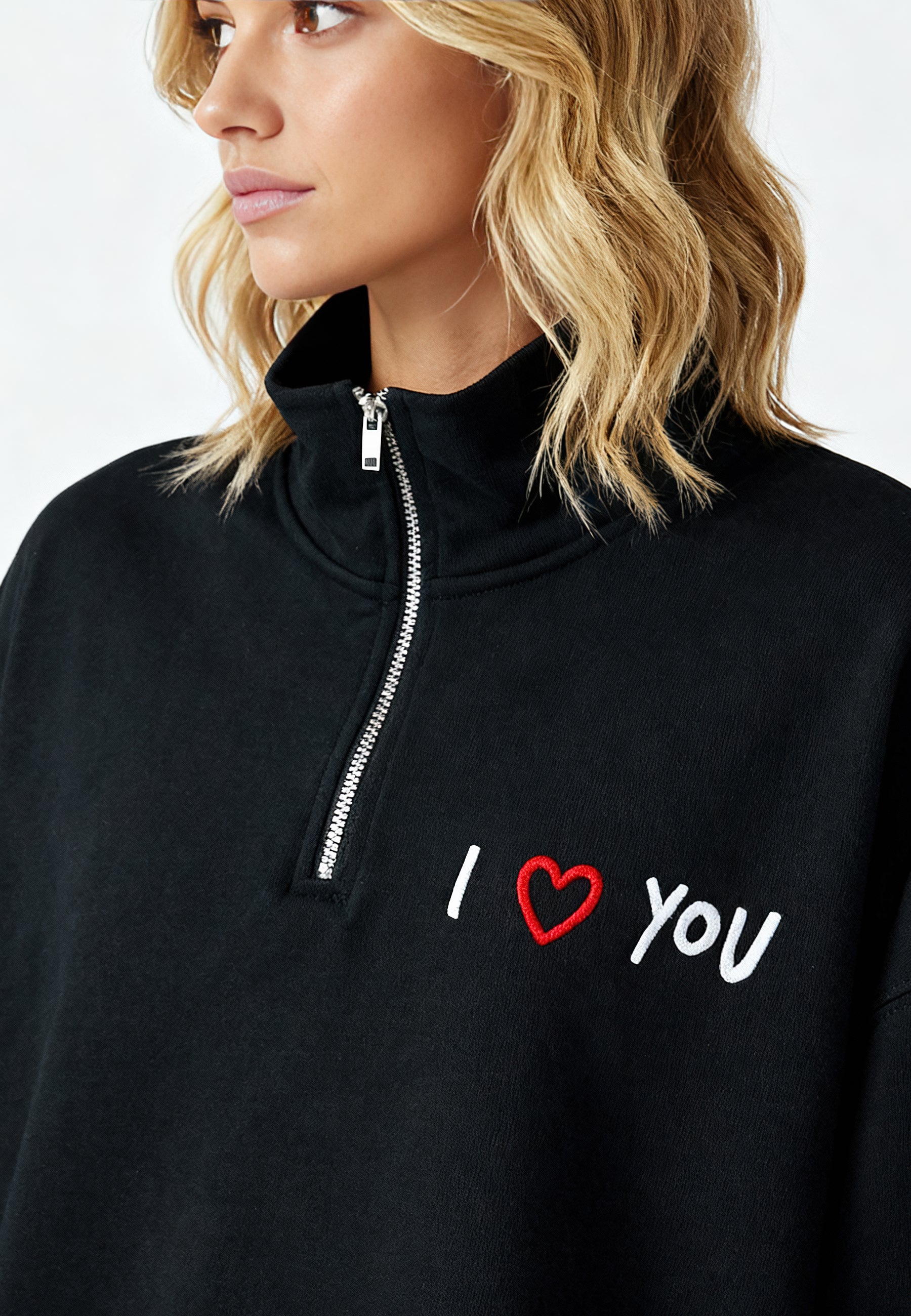 Sweatshirt Oversized en Molleton Épais 400 GSM Brodé "I Love You"