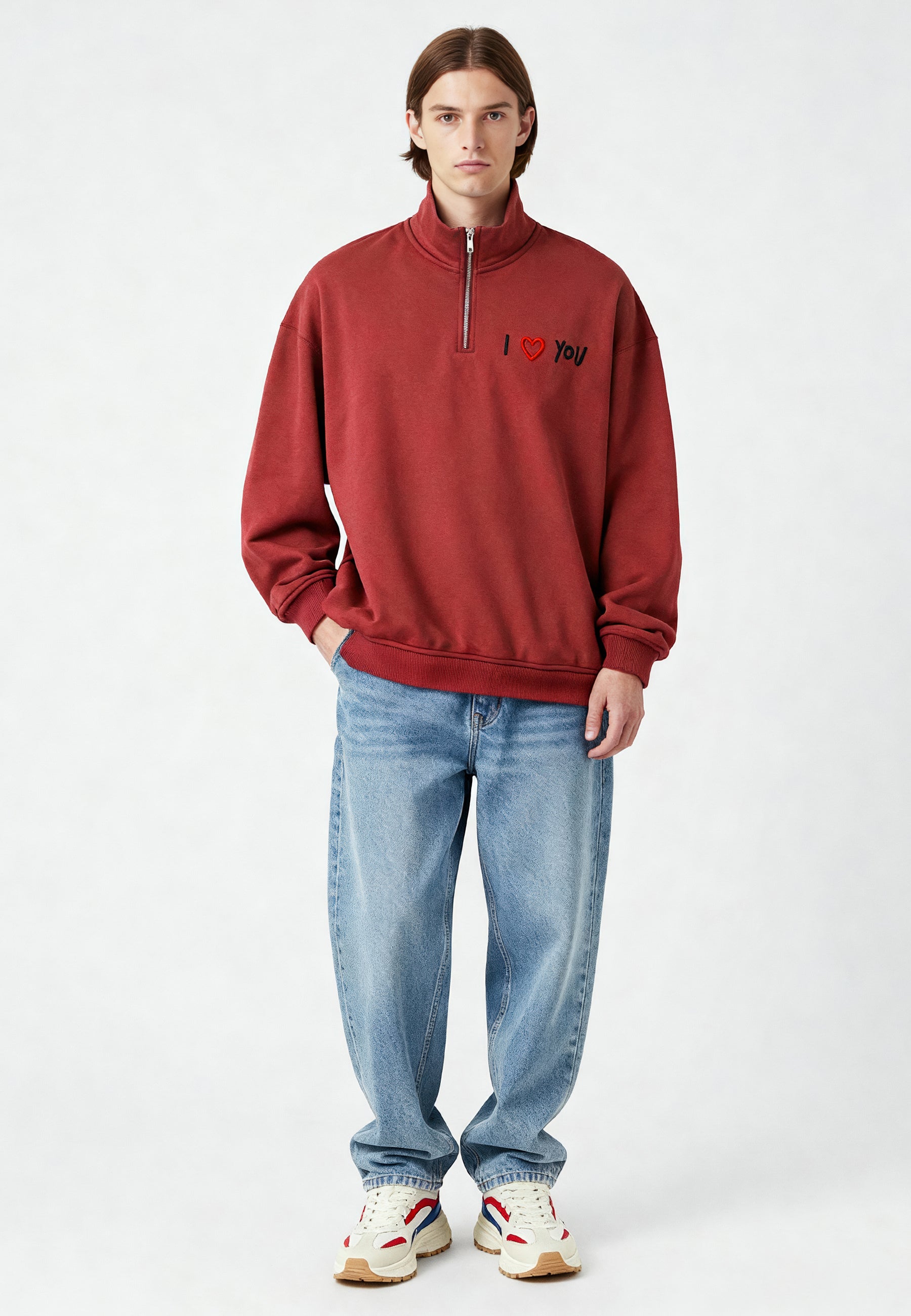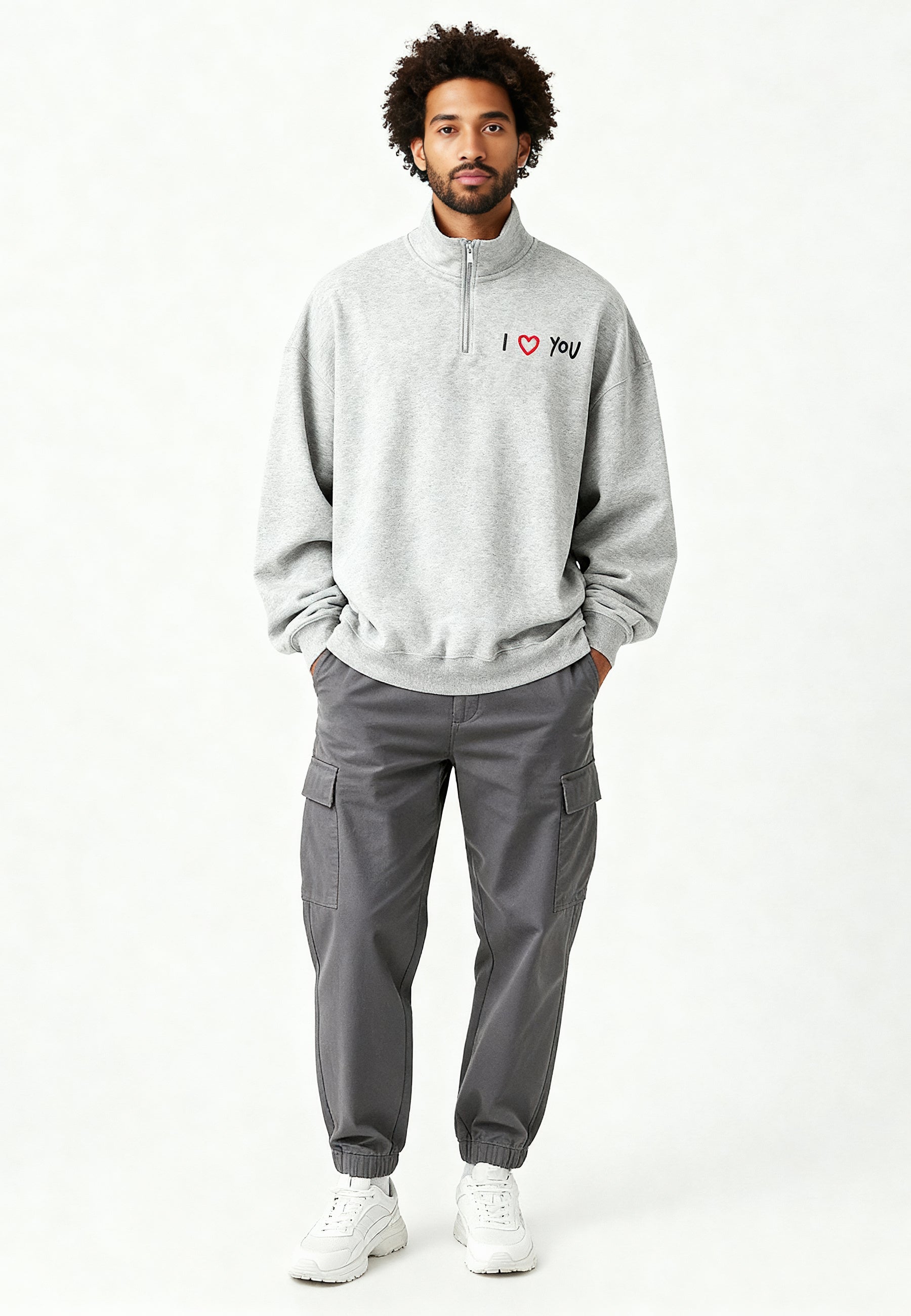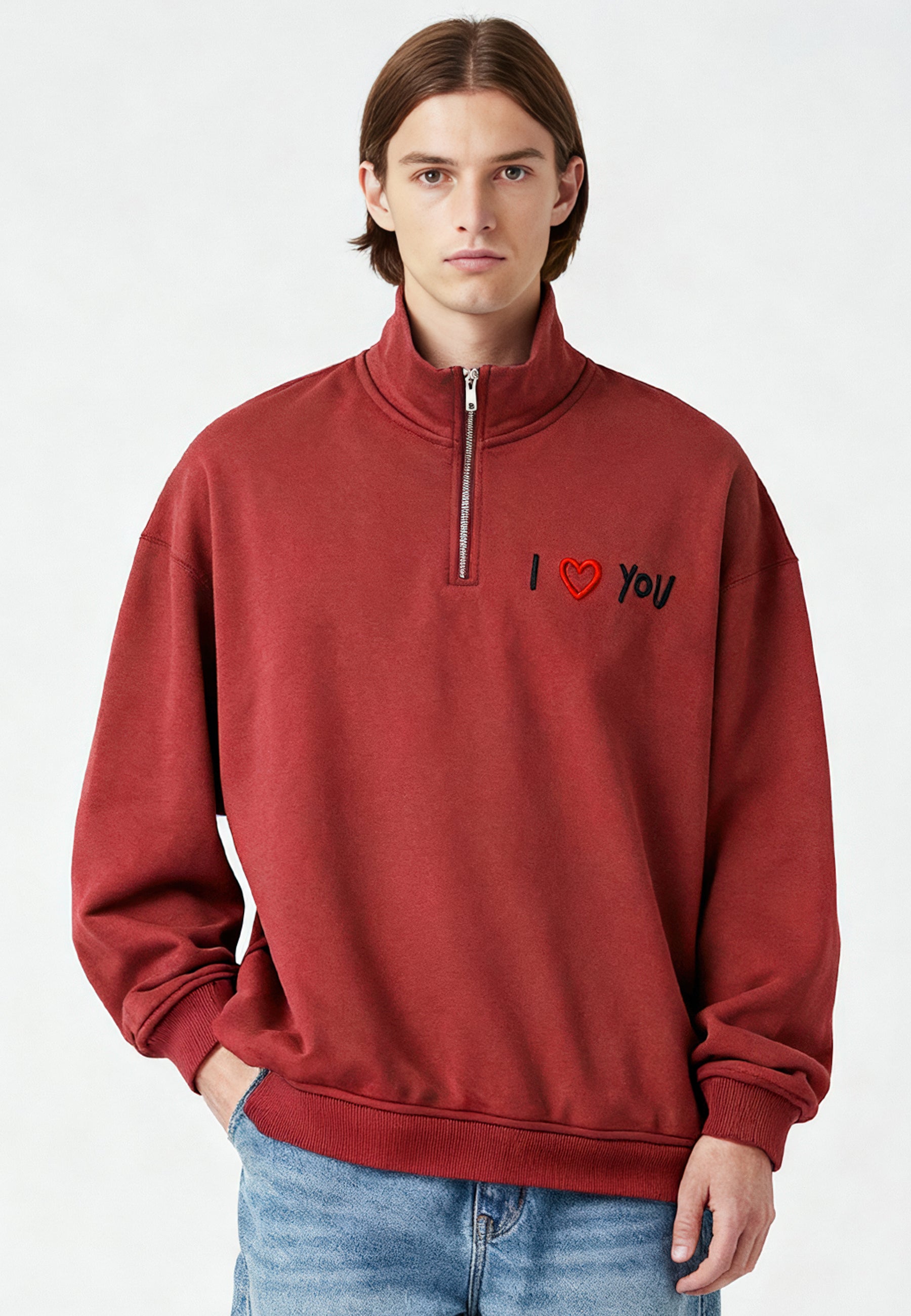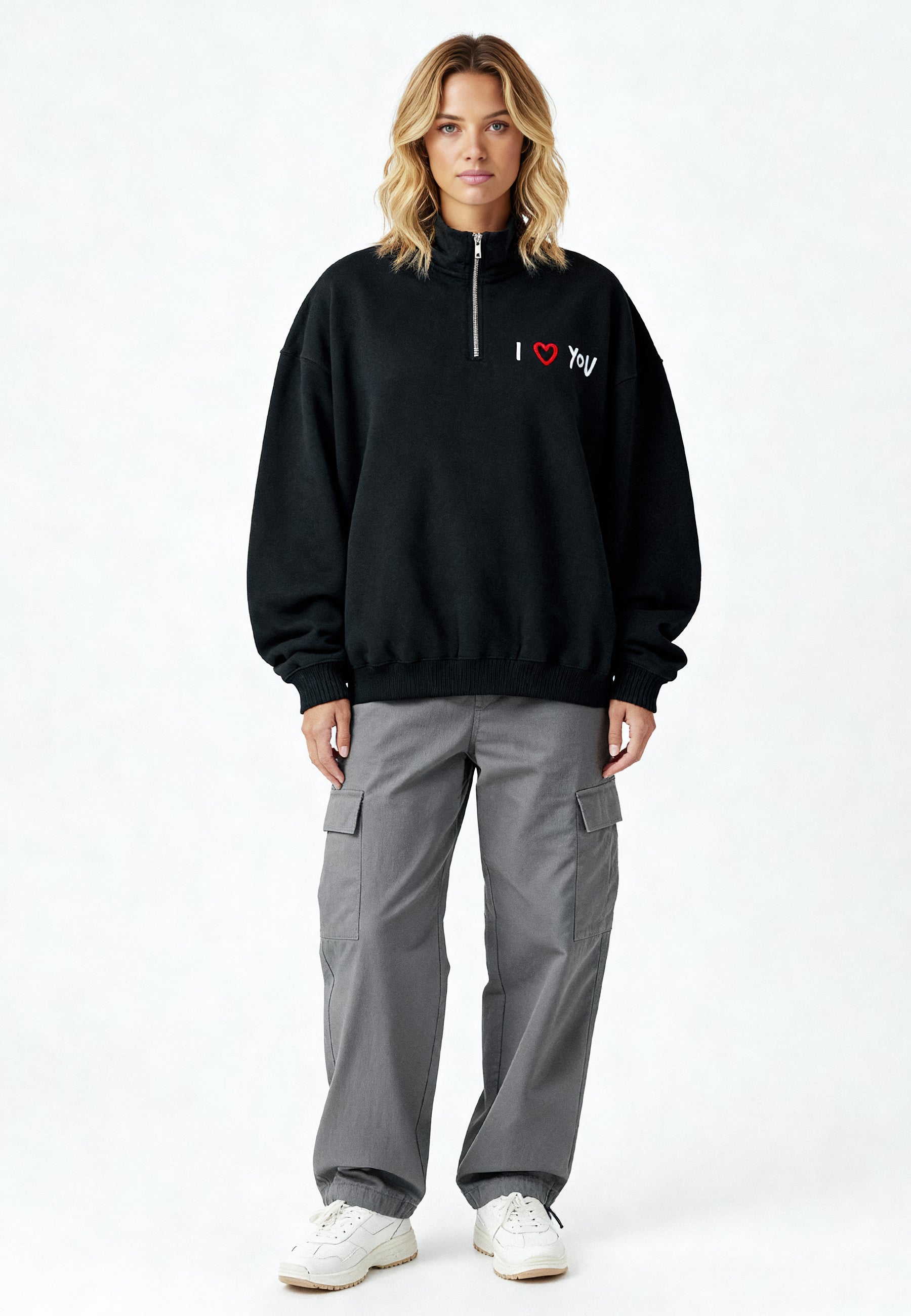 Sweatshirt Oversized en Molleton Épais 400 GSM Brodé "I Love You"