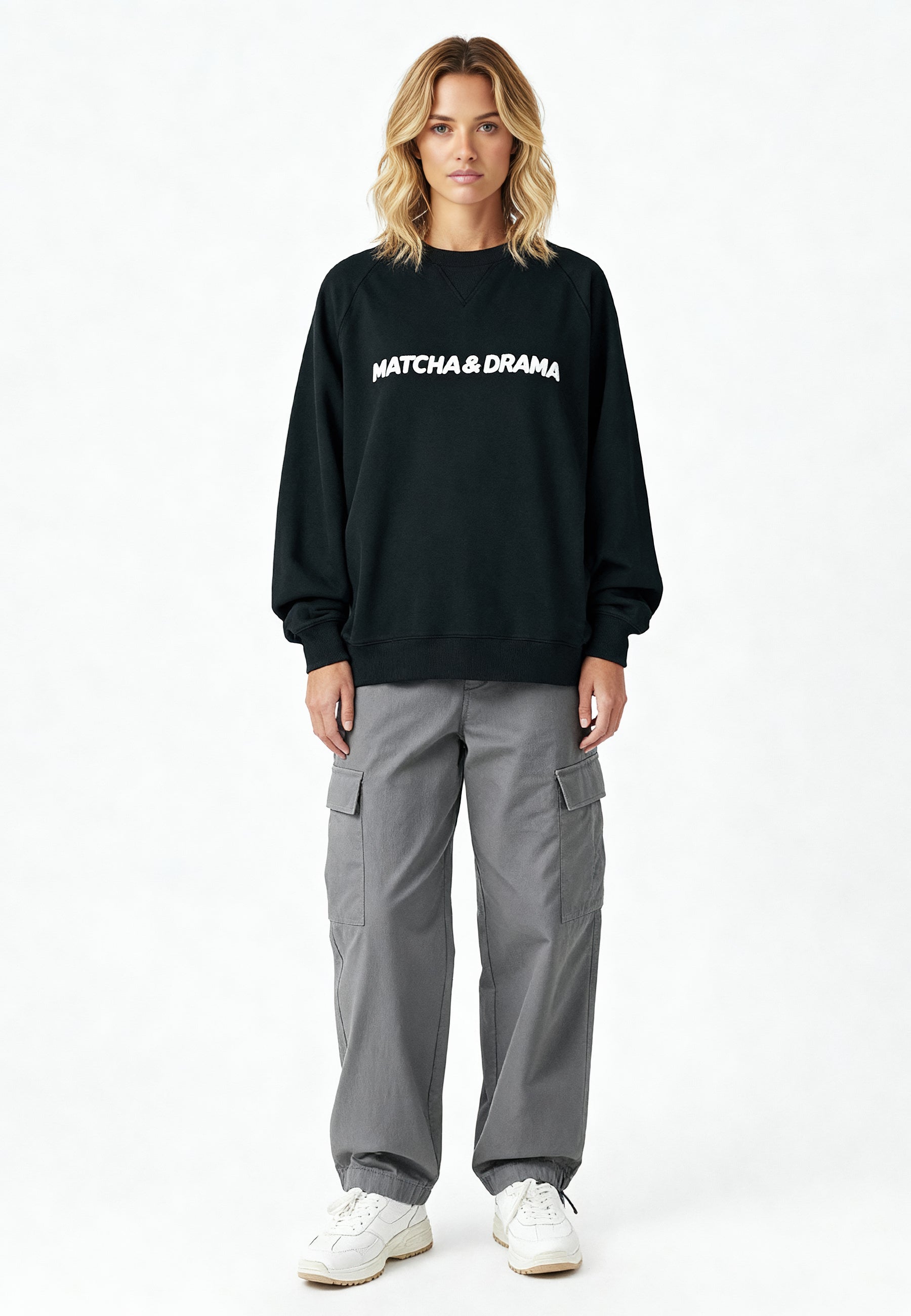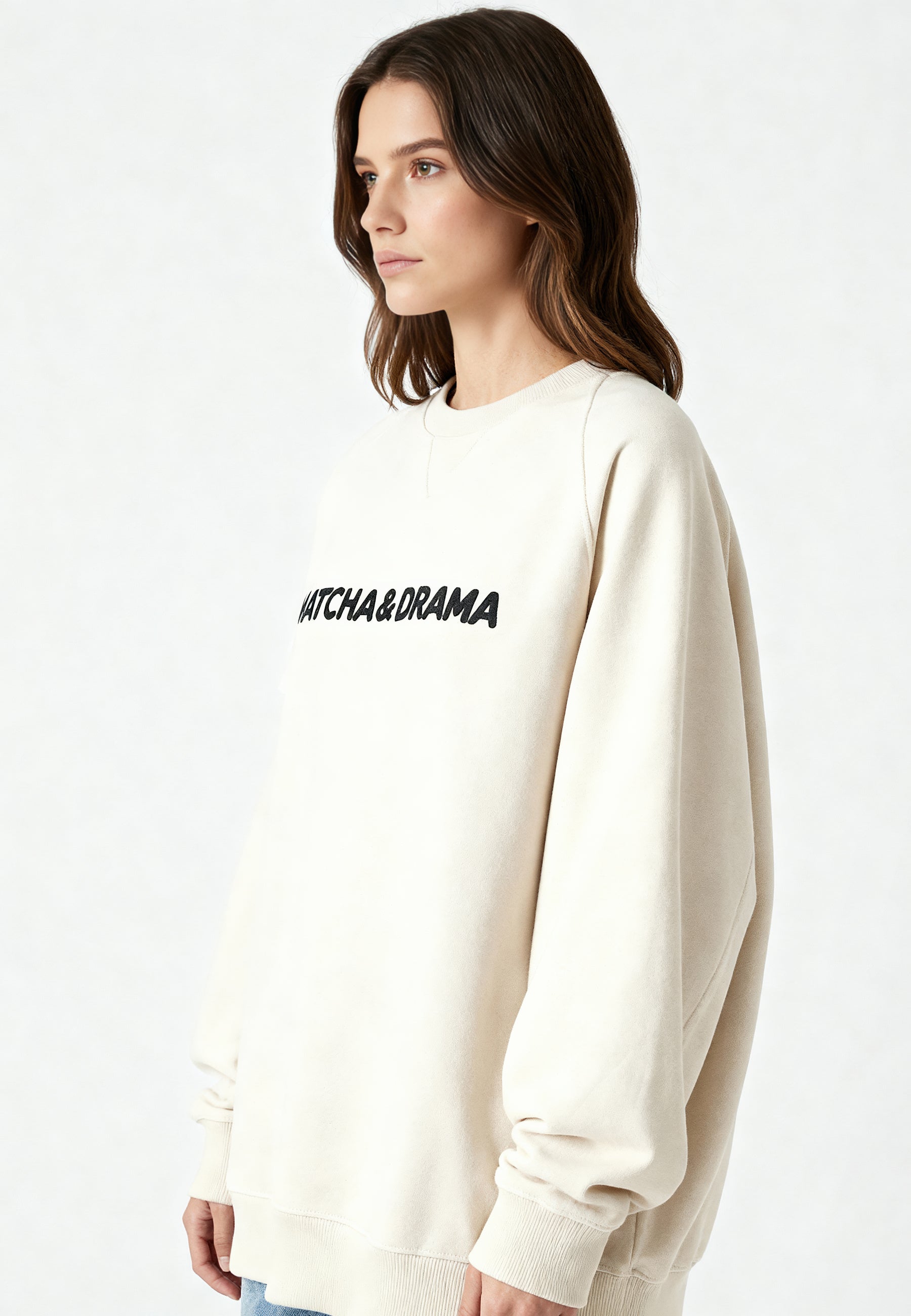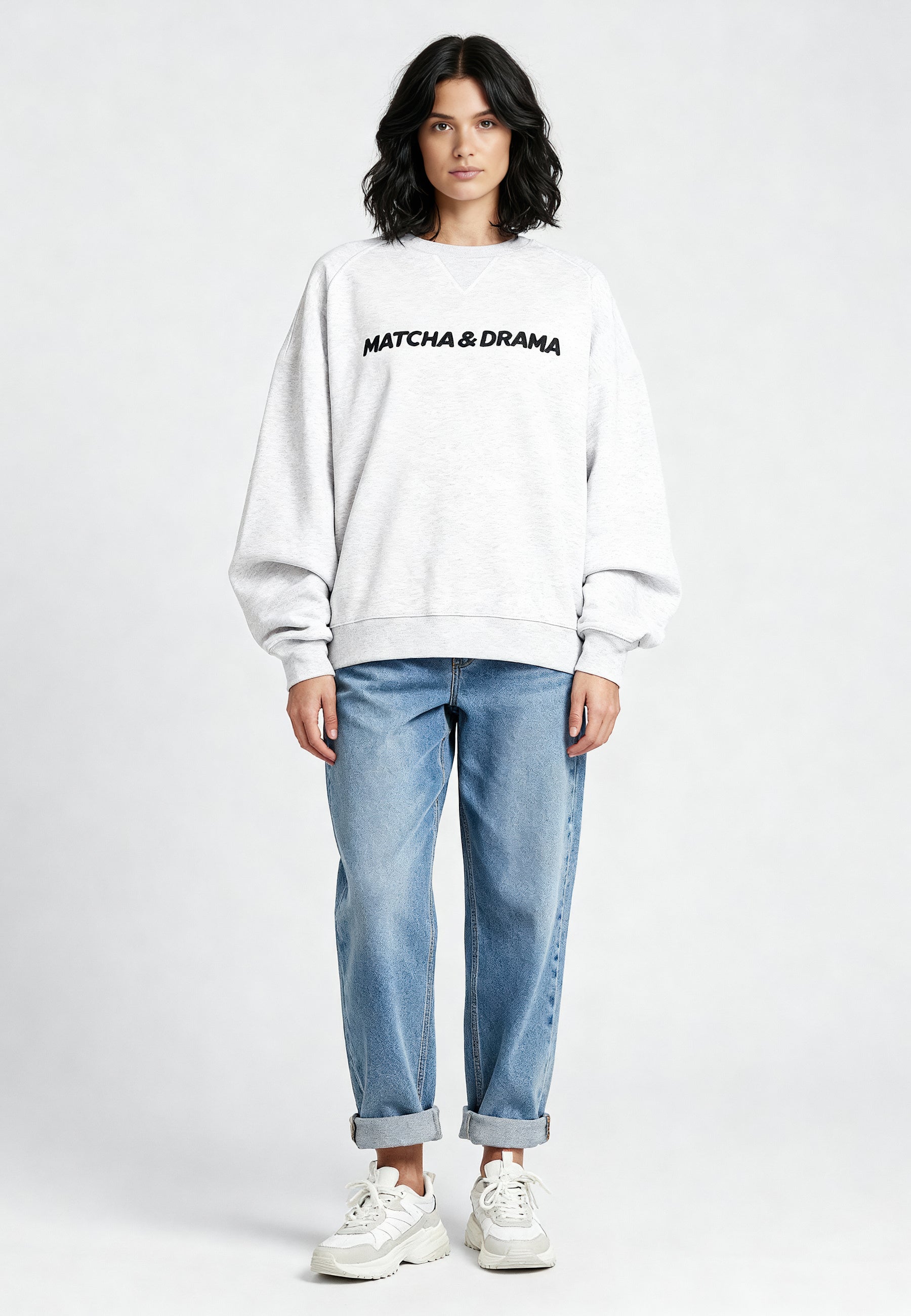Sweatshirt en Molleton Épais 400 GSM Brodé "Matcha & Drama"