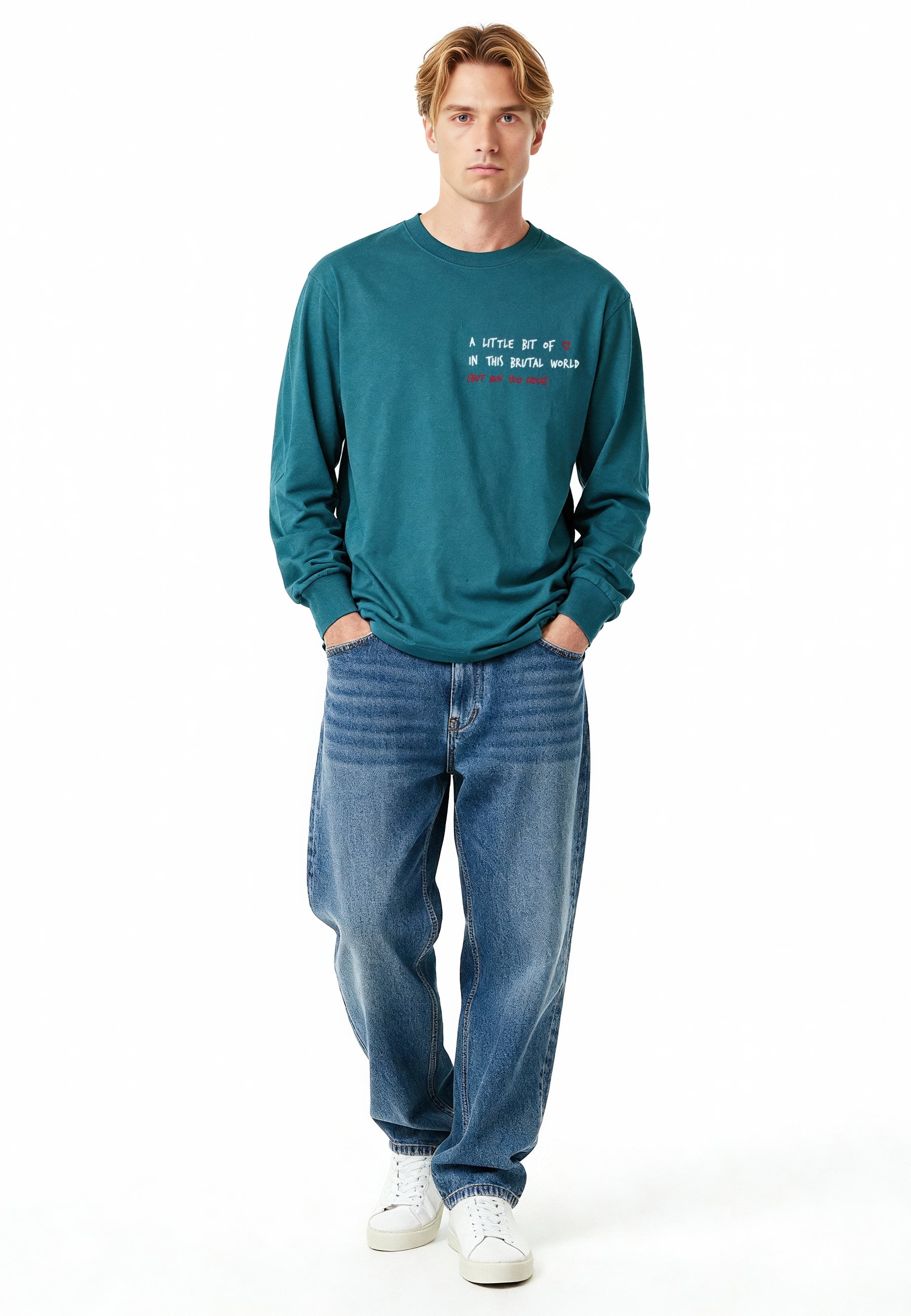 T-shirt Manches Longues En Jersey Épais 240 GSM Brodé "Brutal"