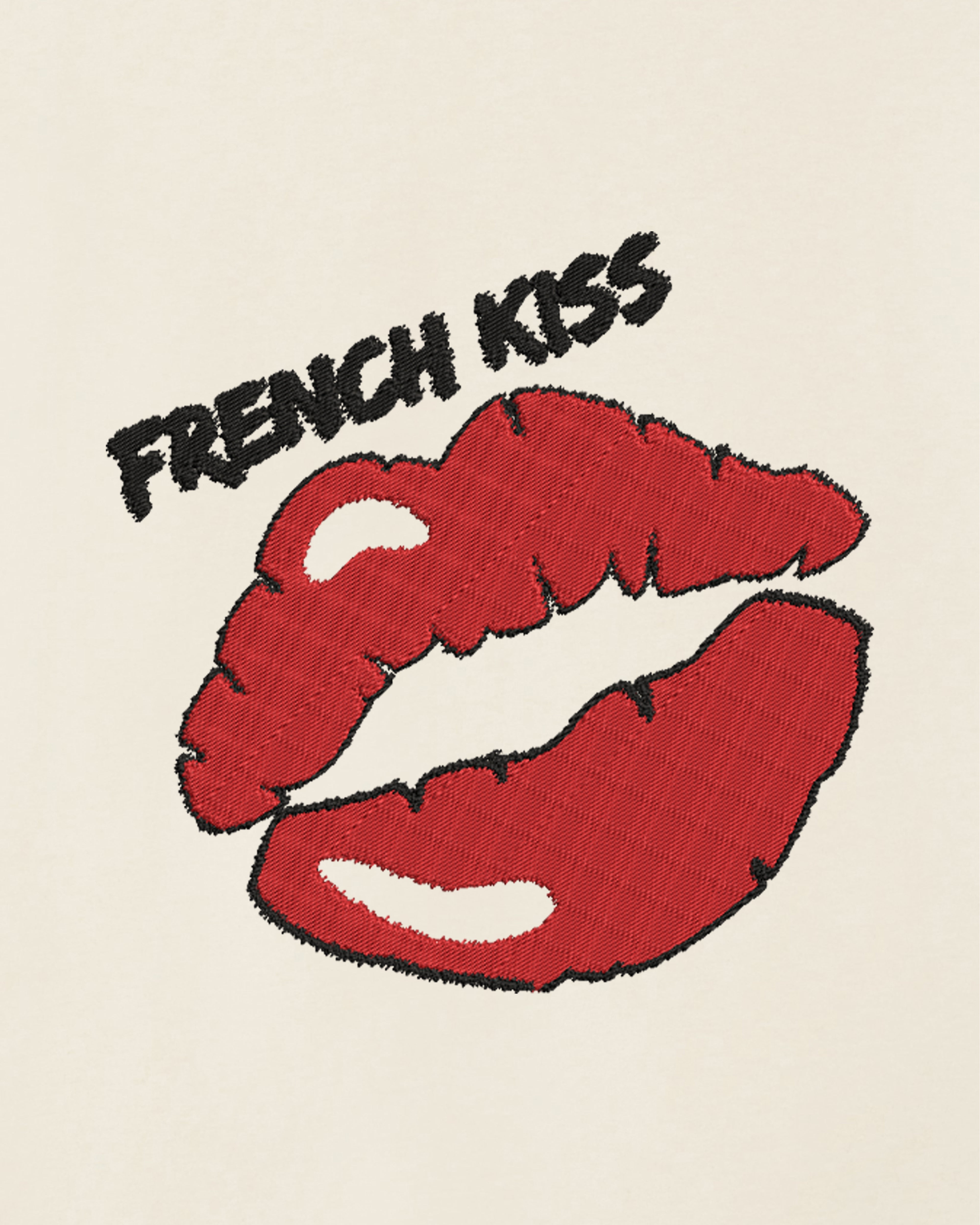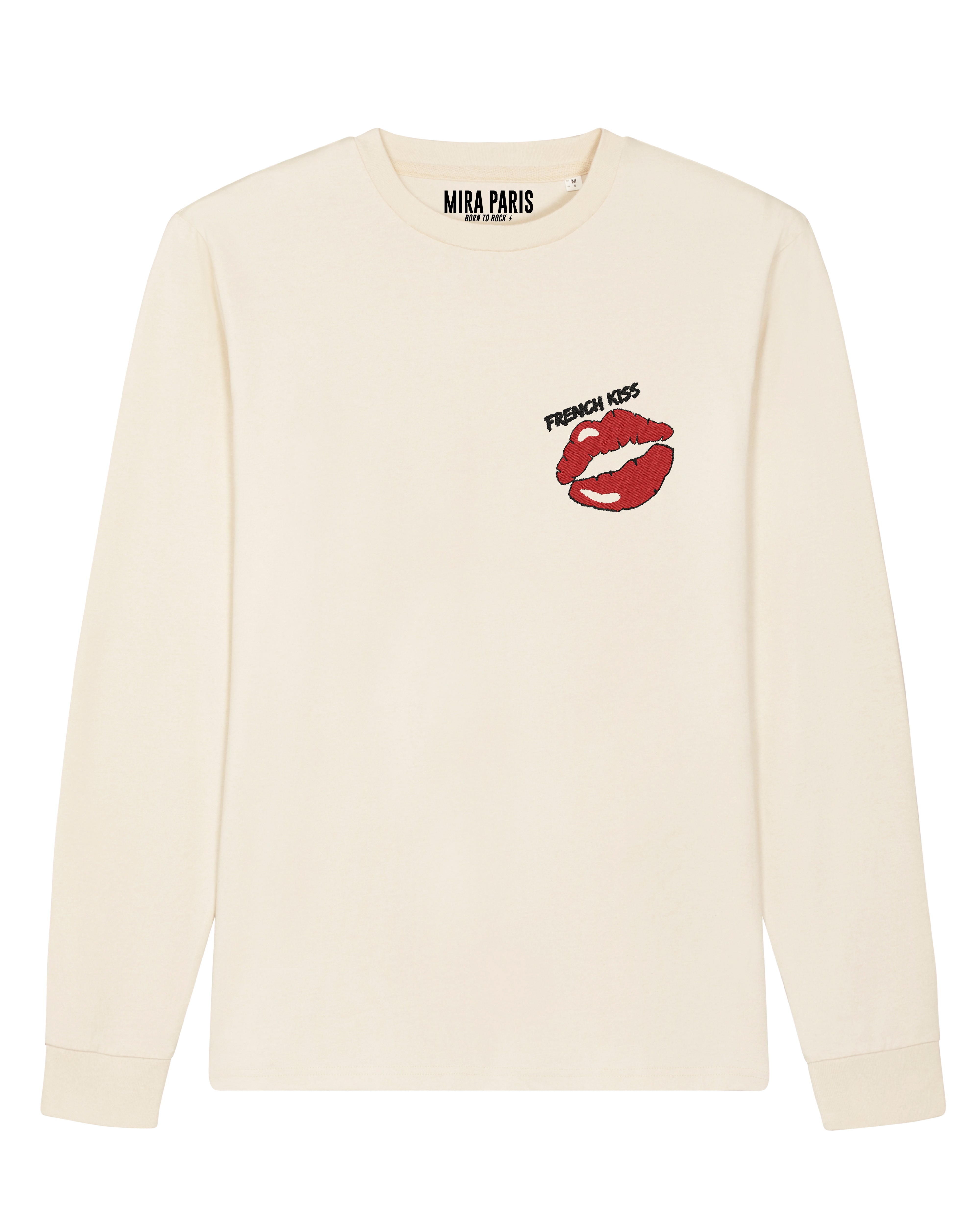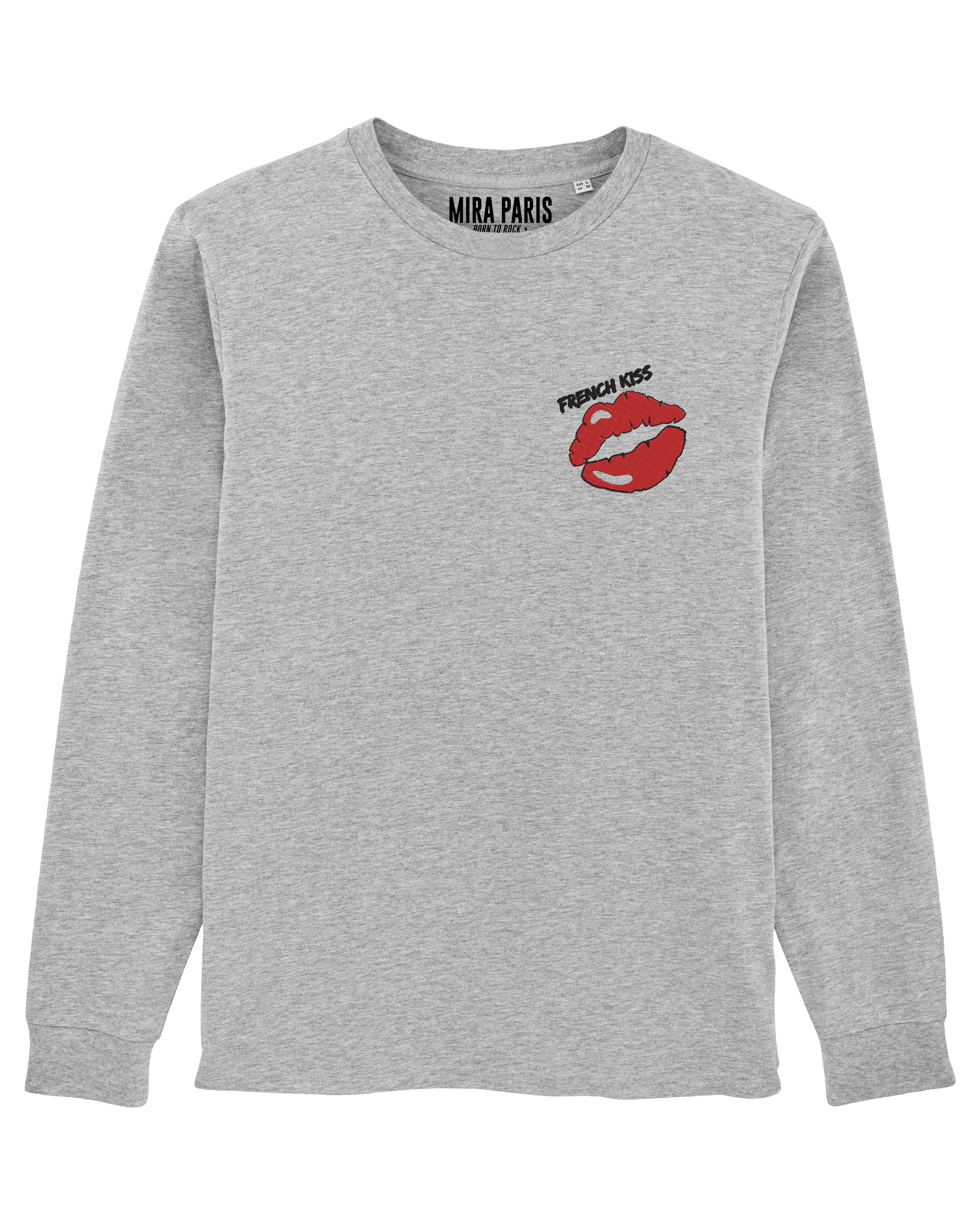 T-shirt Manches Longues En Jersey Épais Brodé "French Kiss"