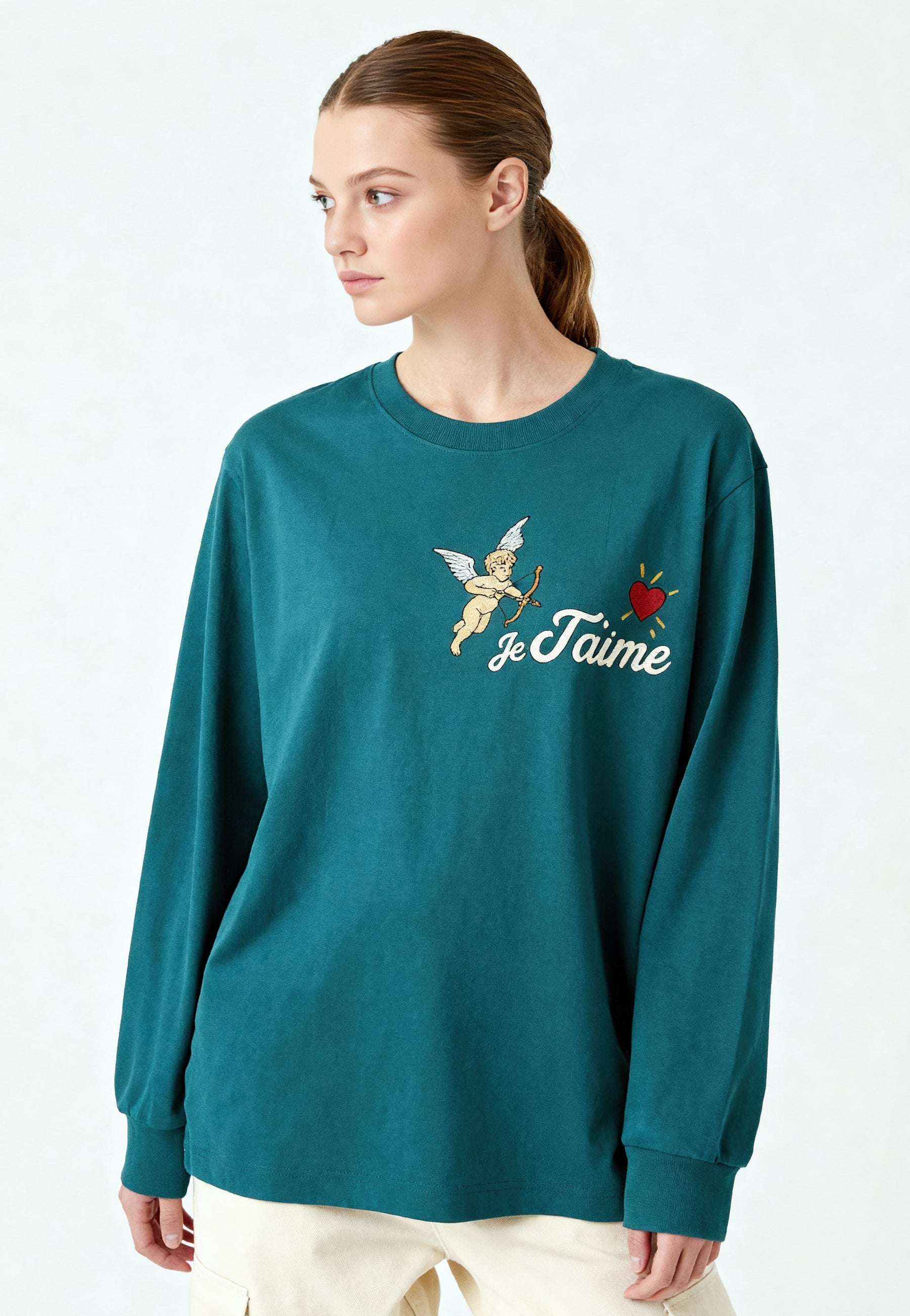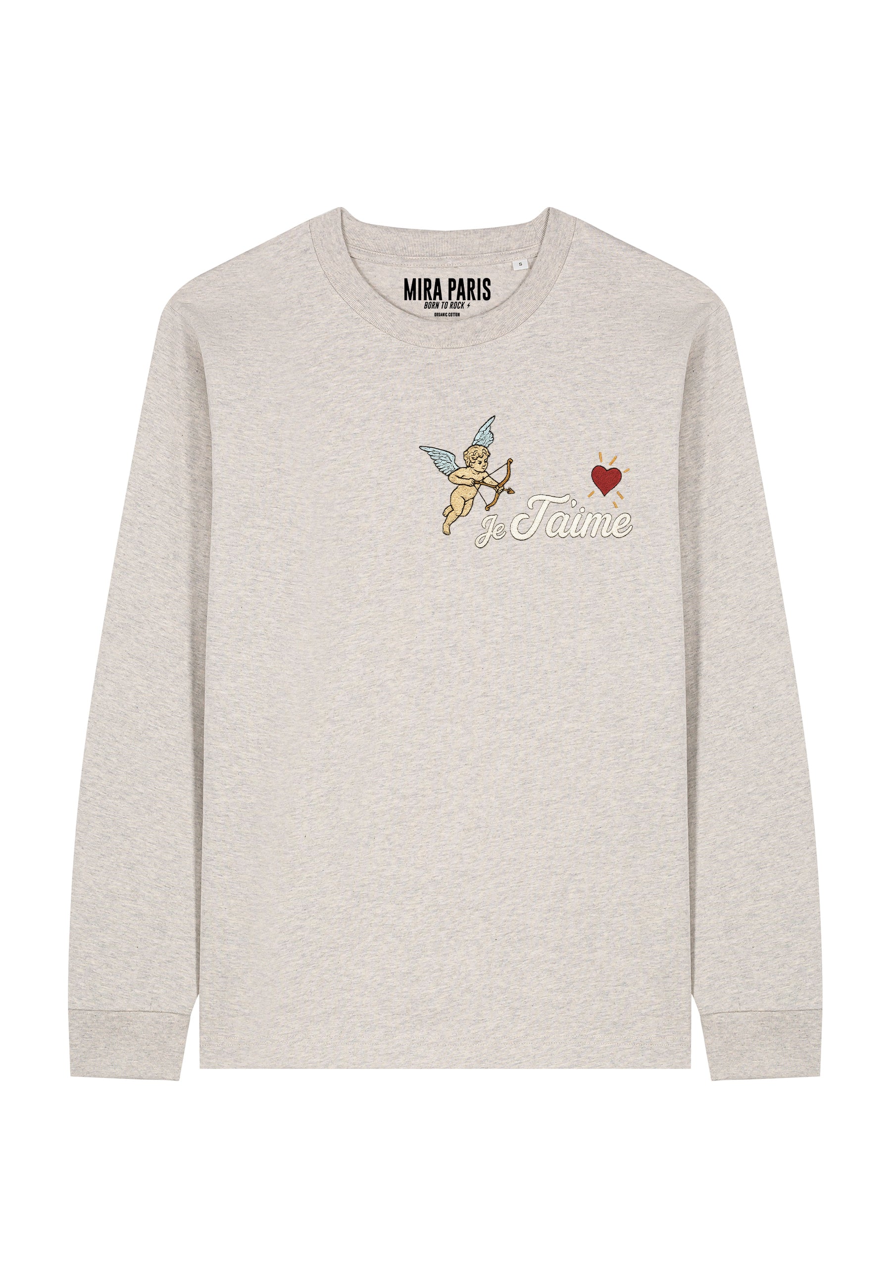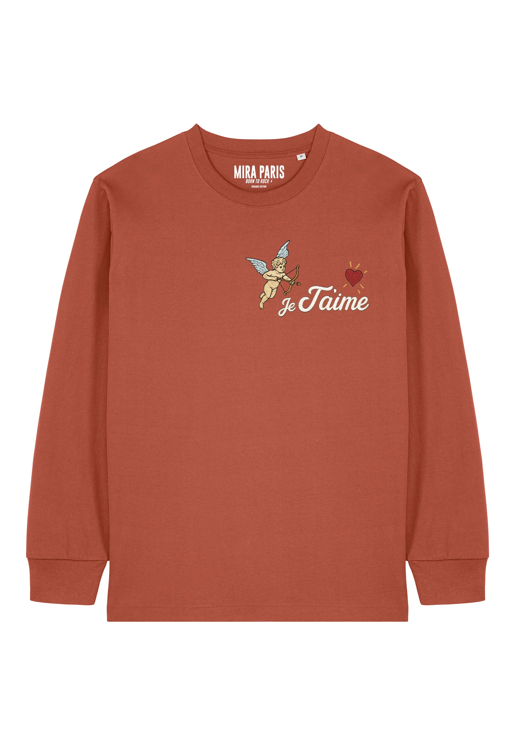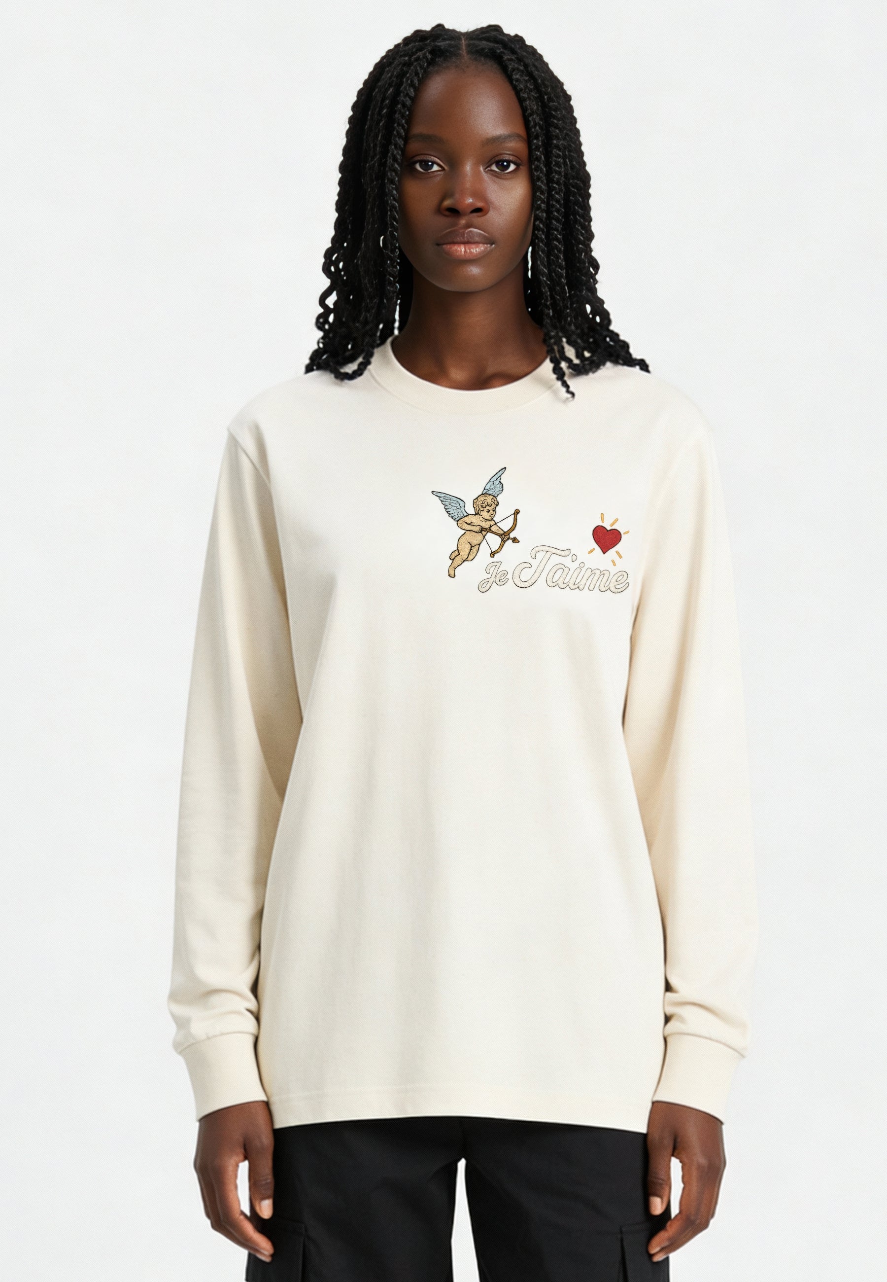 T-shirt Manches Longues En Jersey Épais 240 GSM Brodé "Je T'aime"