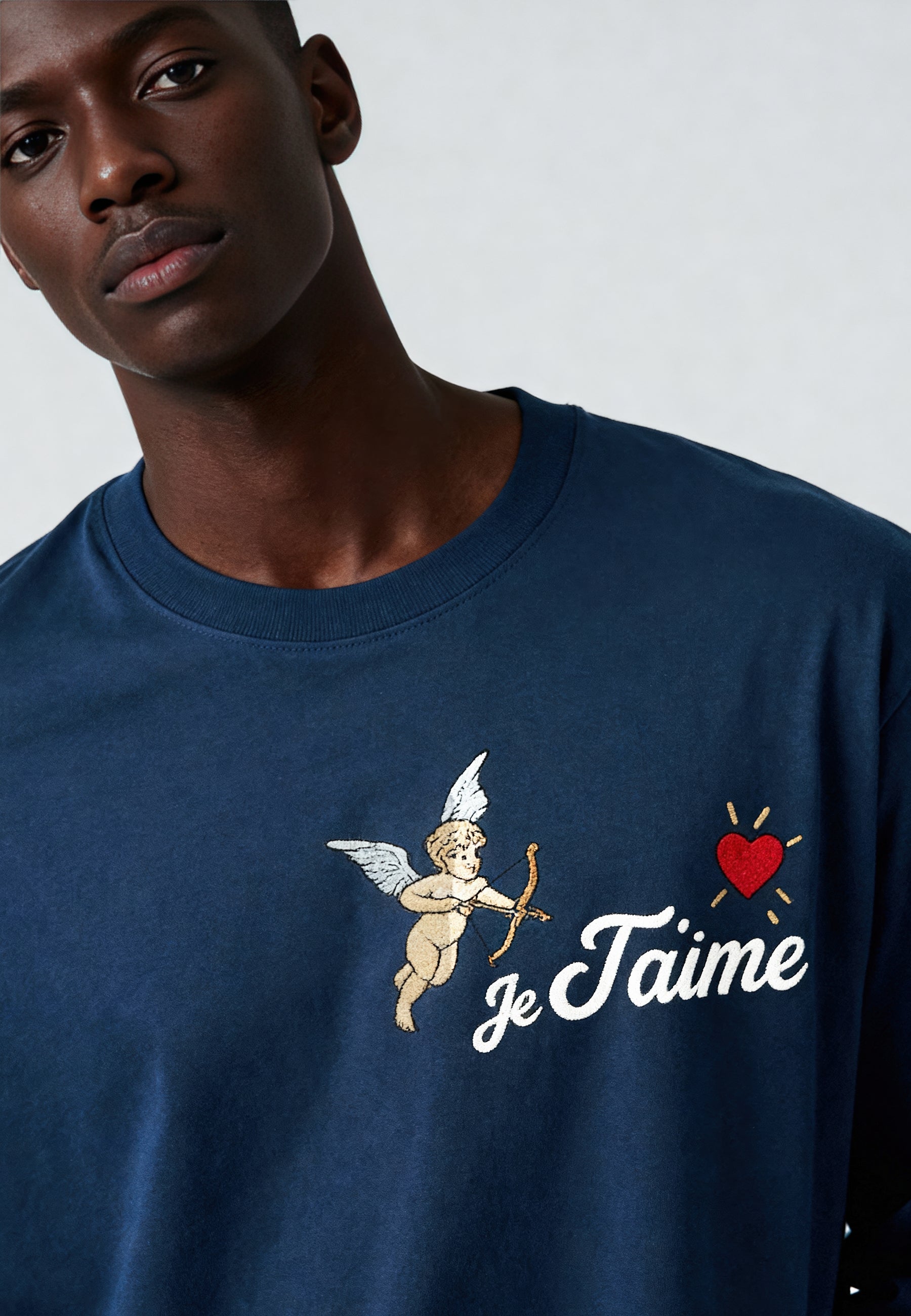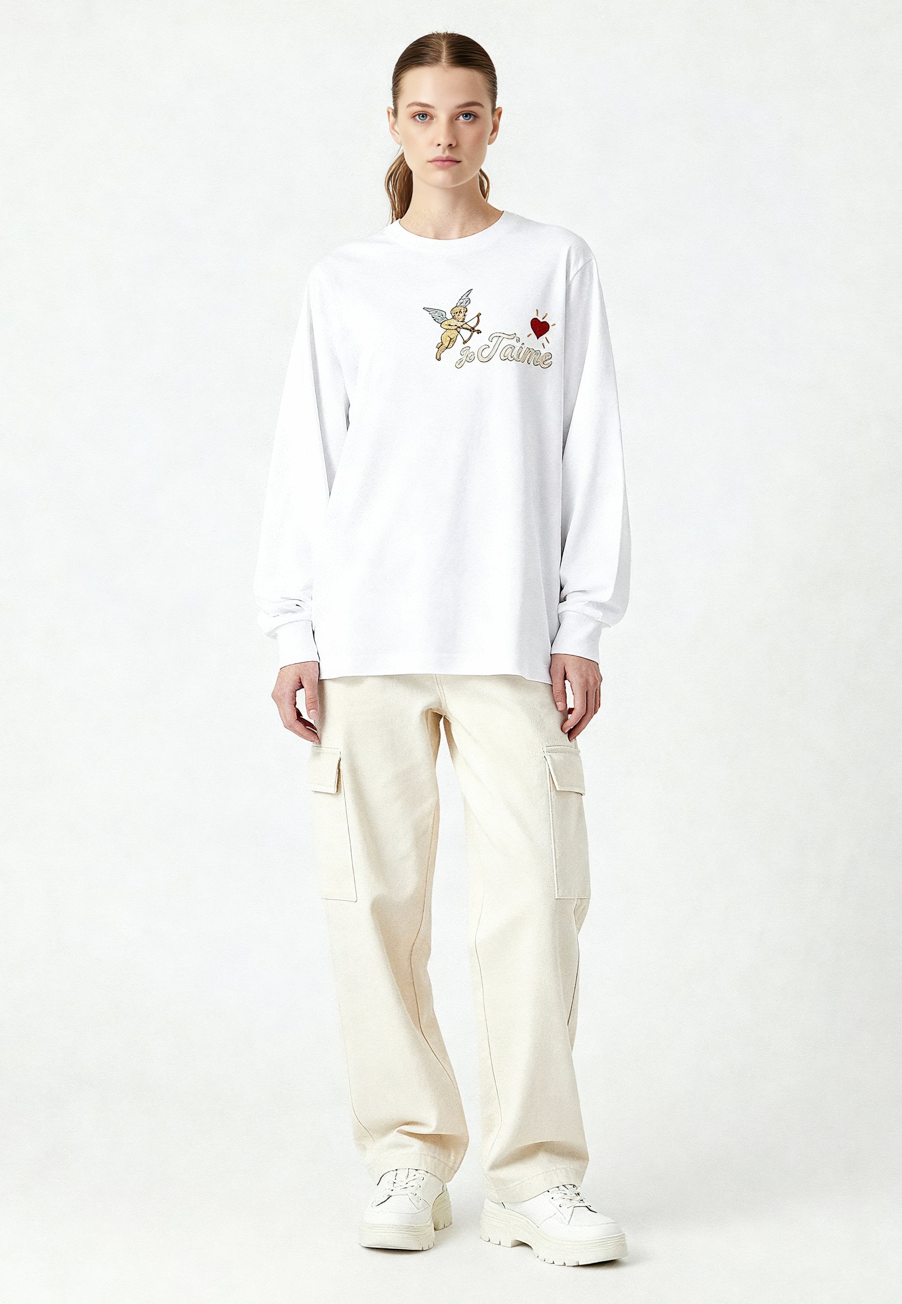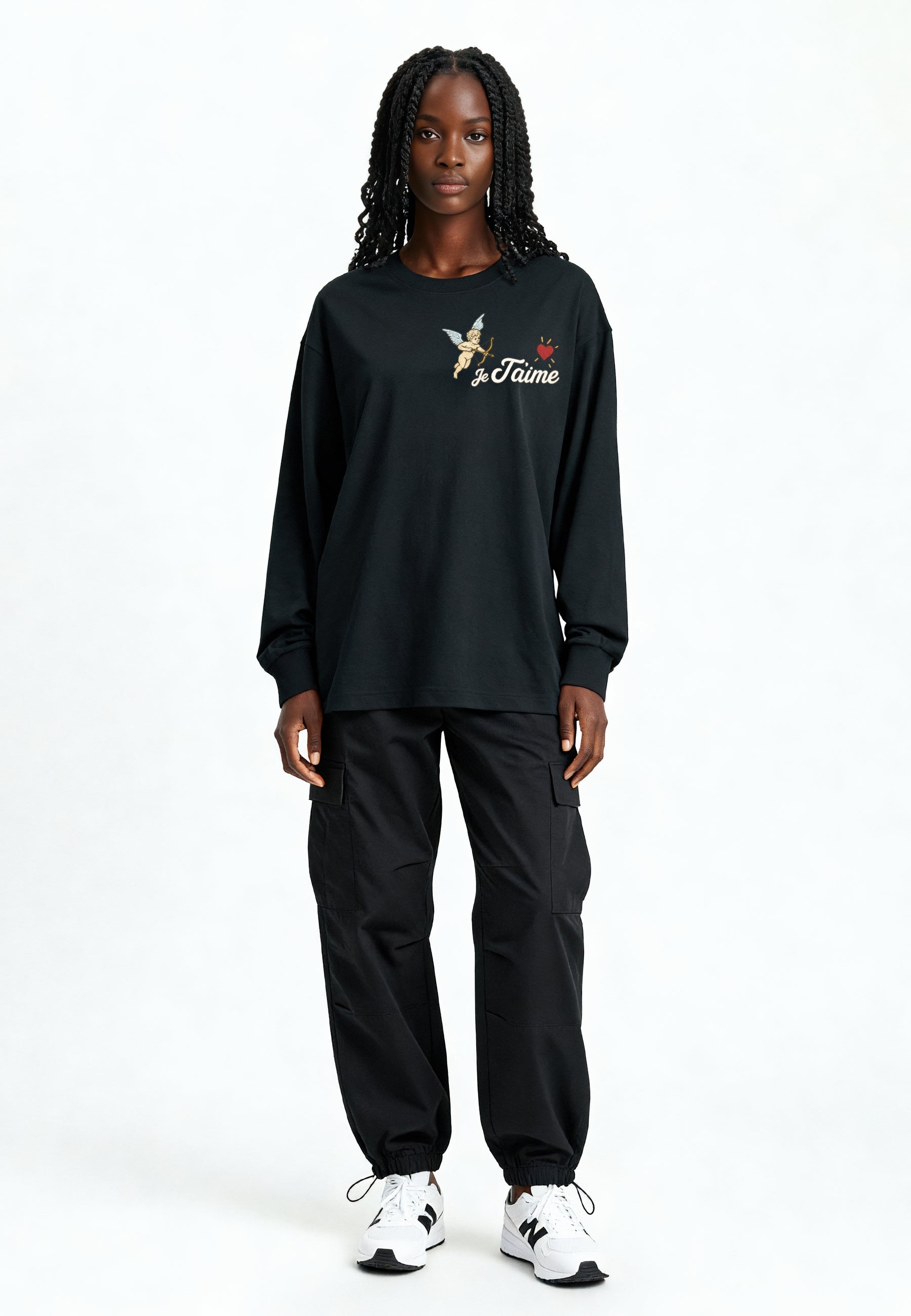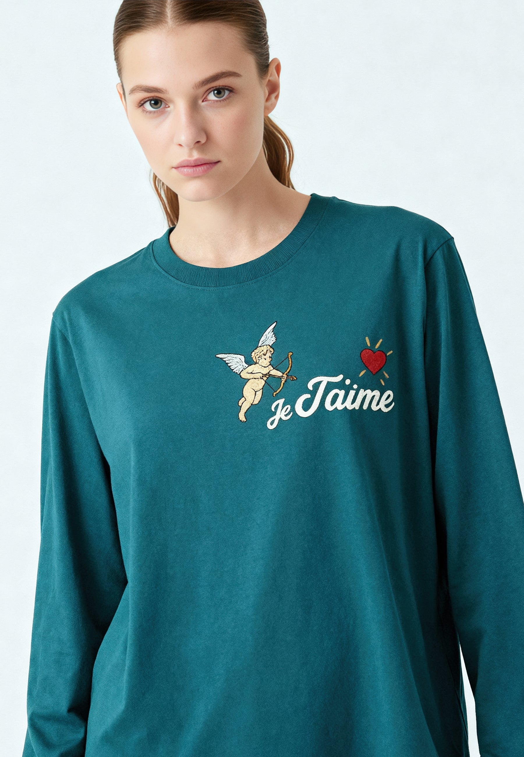 T-shirt Manches Longues En Jersey Épais 240 GSM Brodé "Je T'aime"
