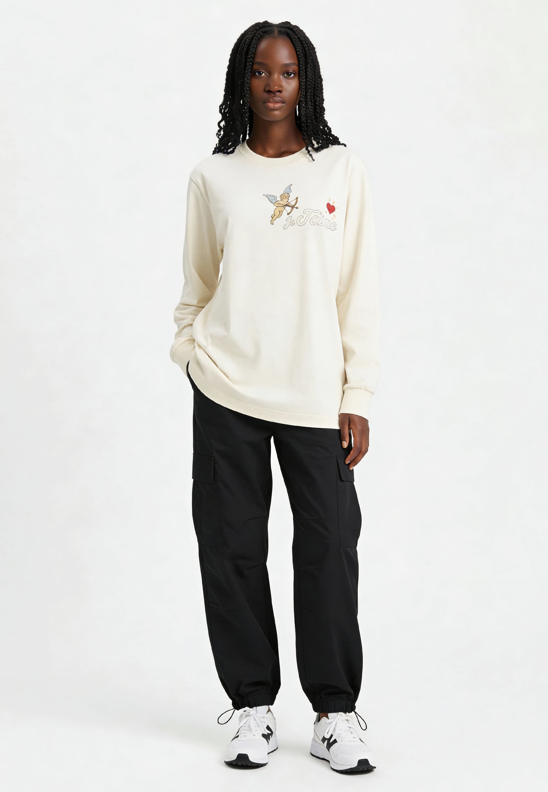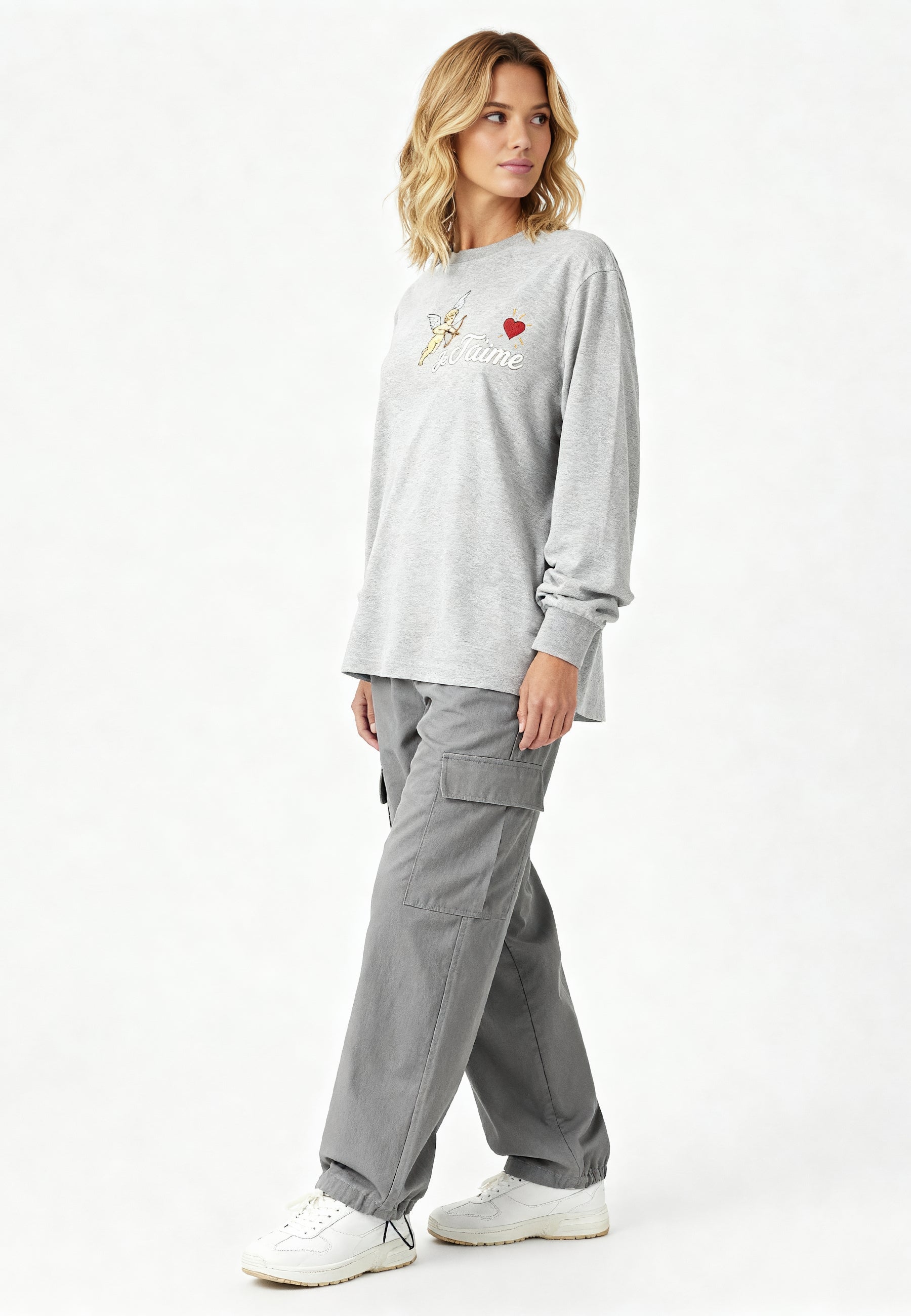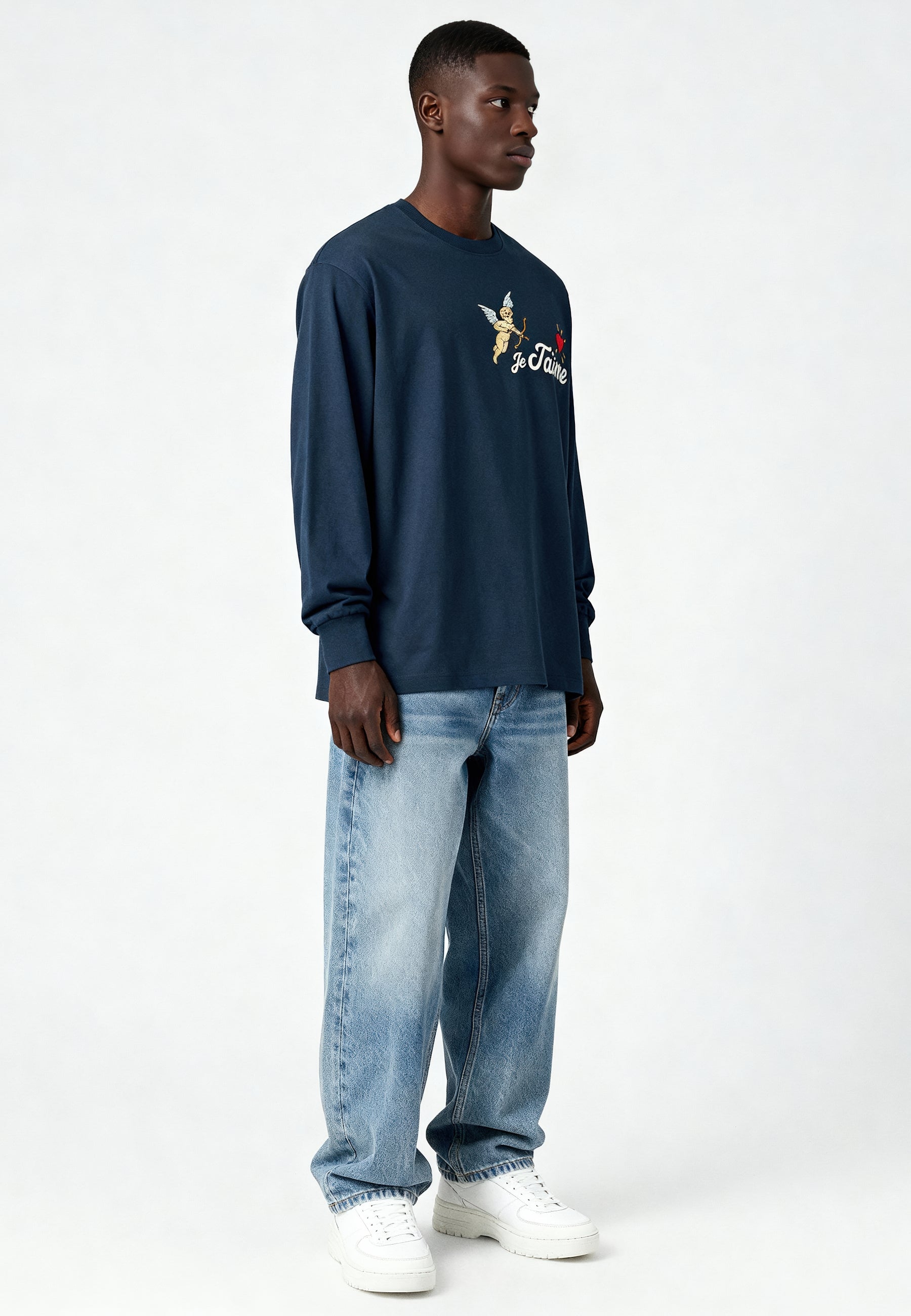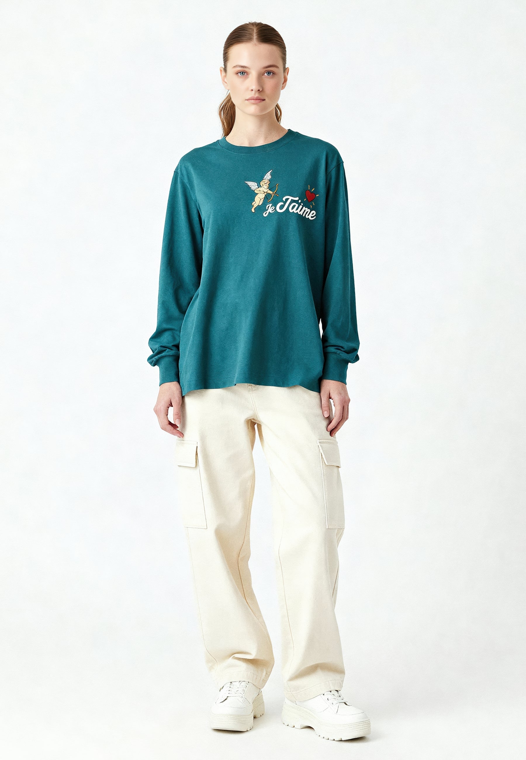 T-shirt Manches Longues En Jersey Épais 240 GSM Brodé "Je T'aime"