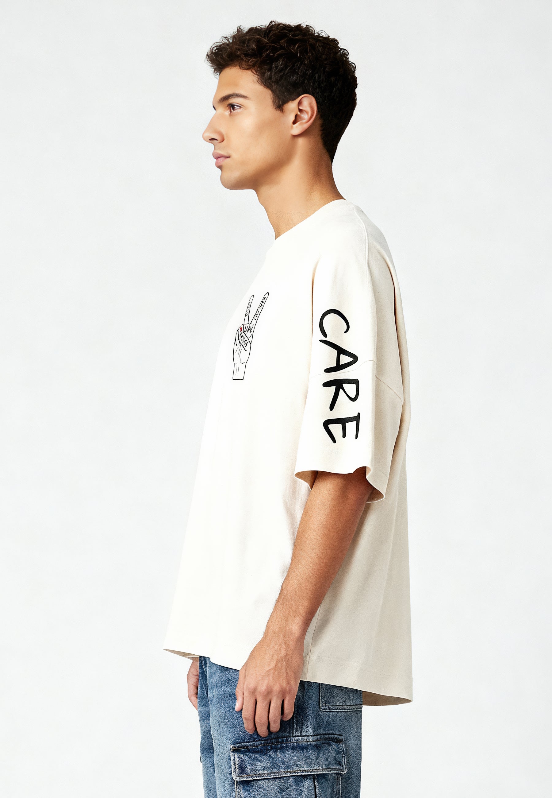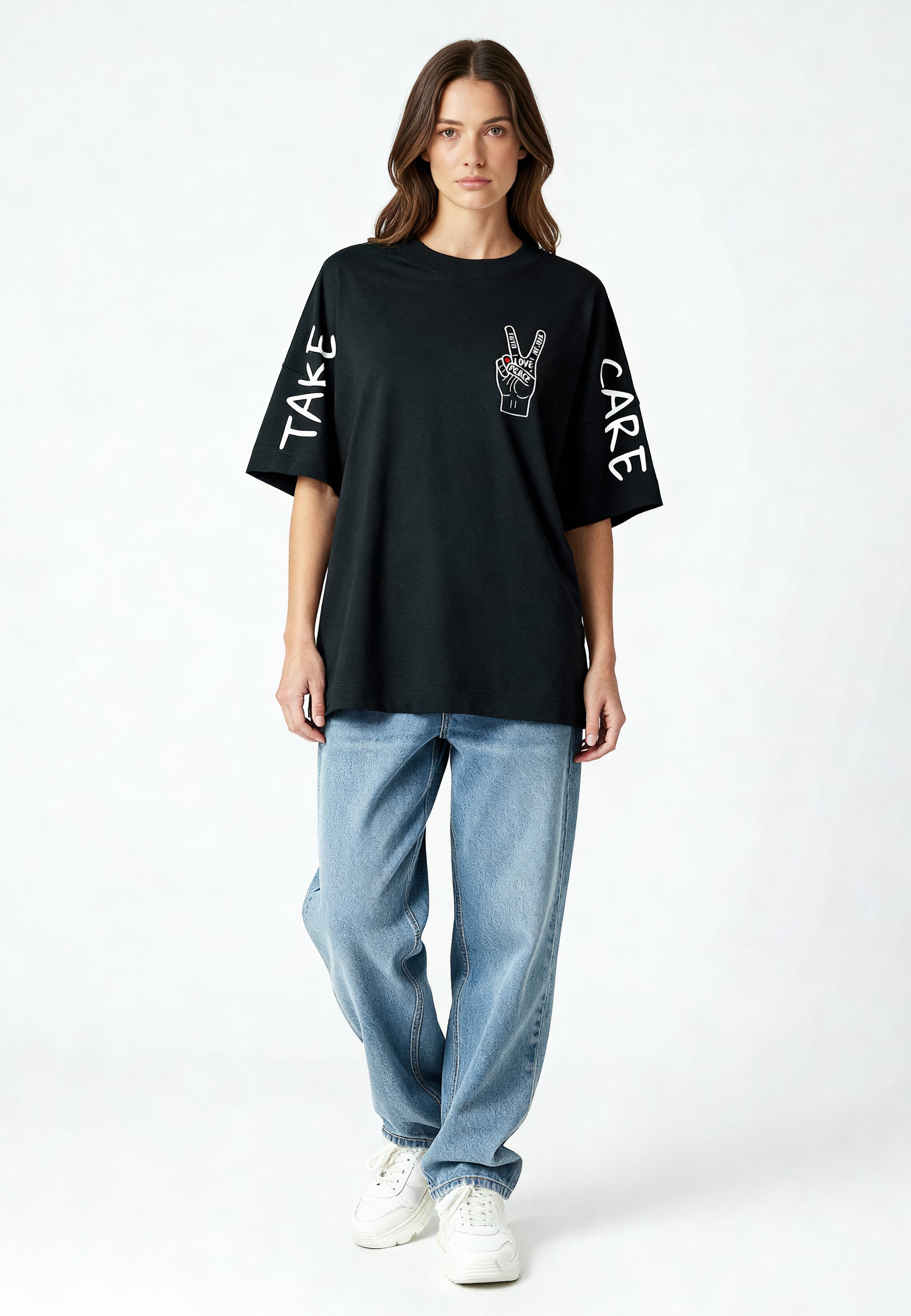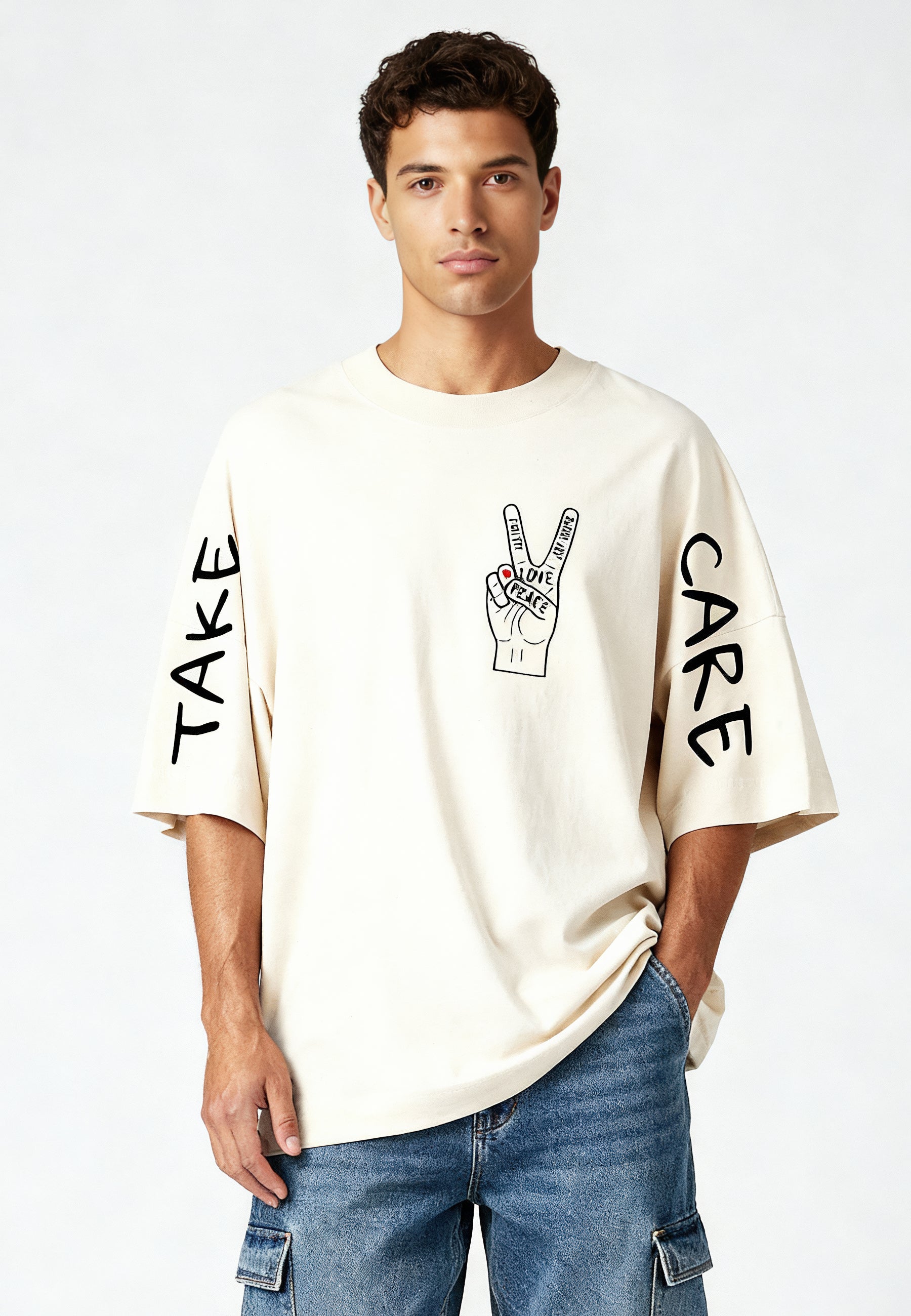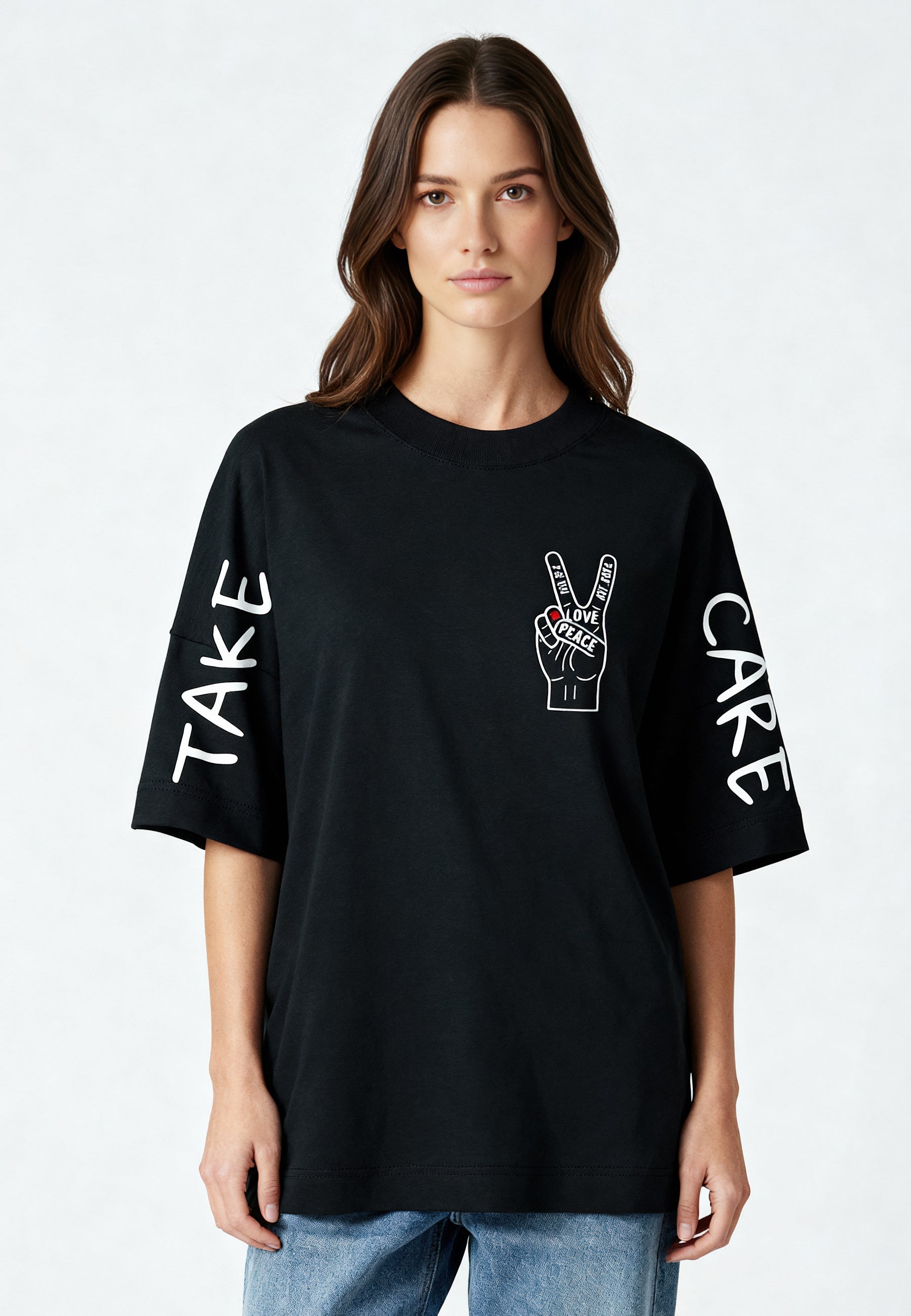 T-shirt Oversize en Jersey Épais Imprimé "Take Care"