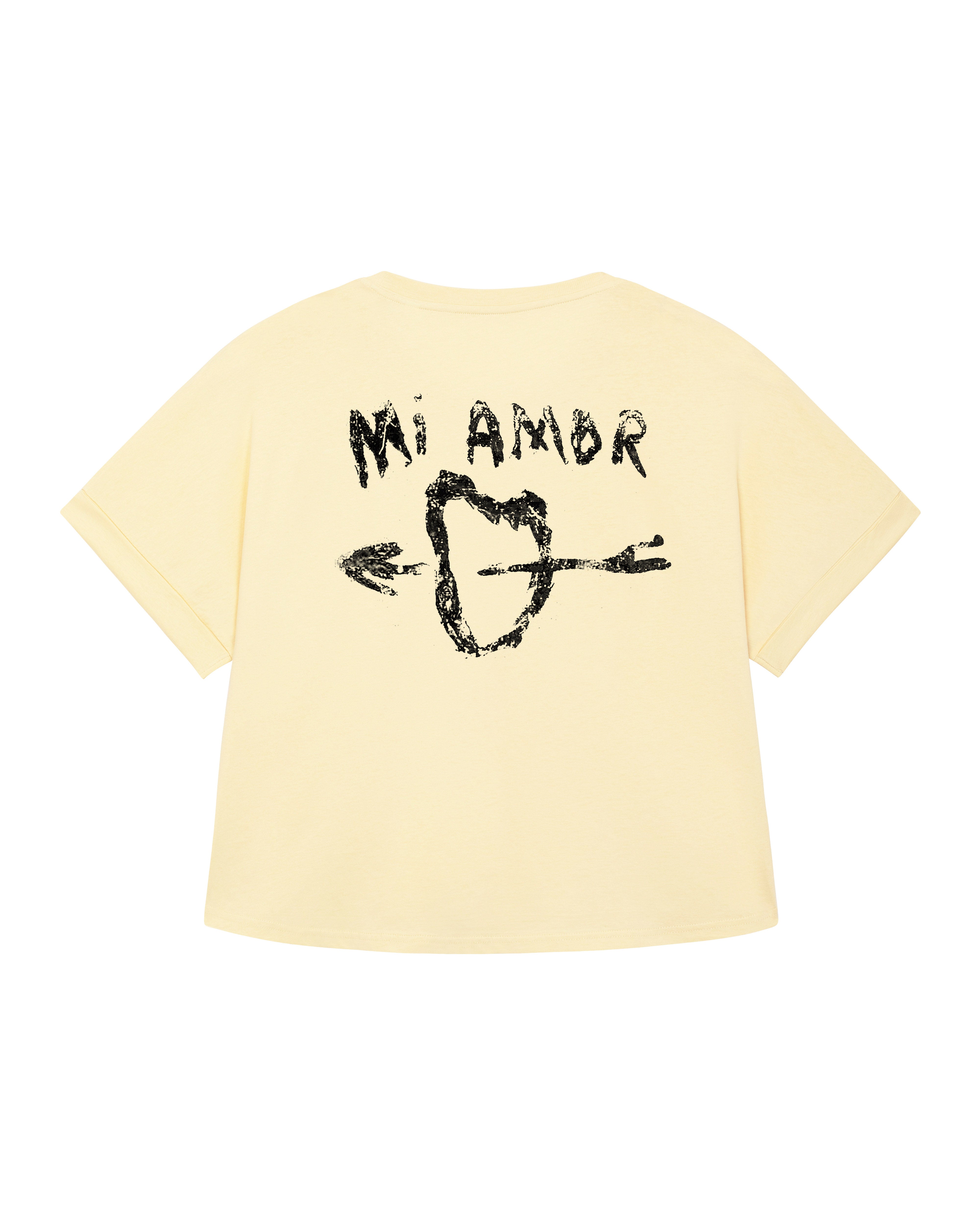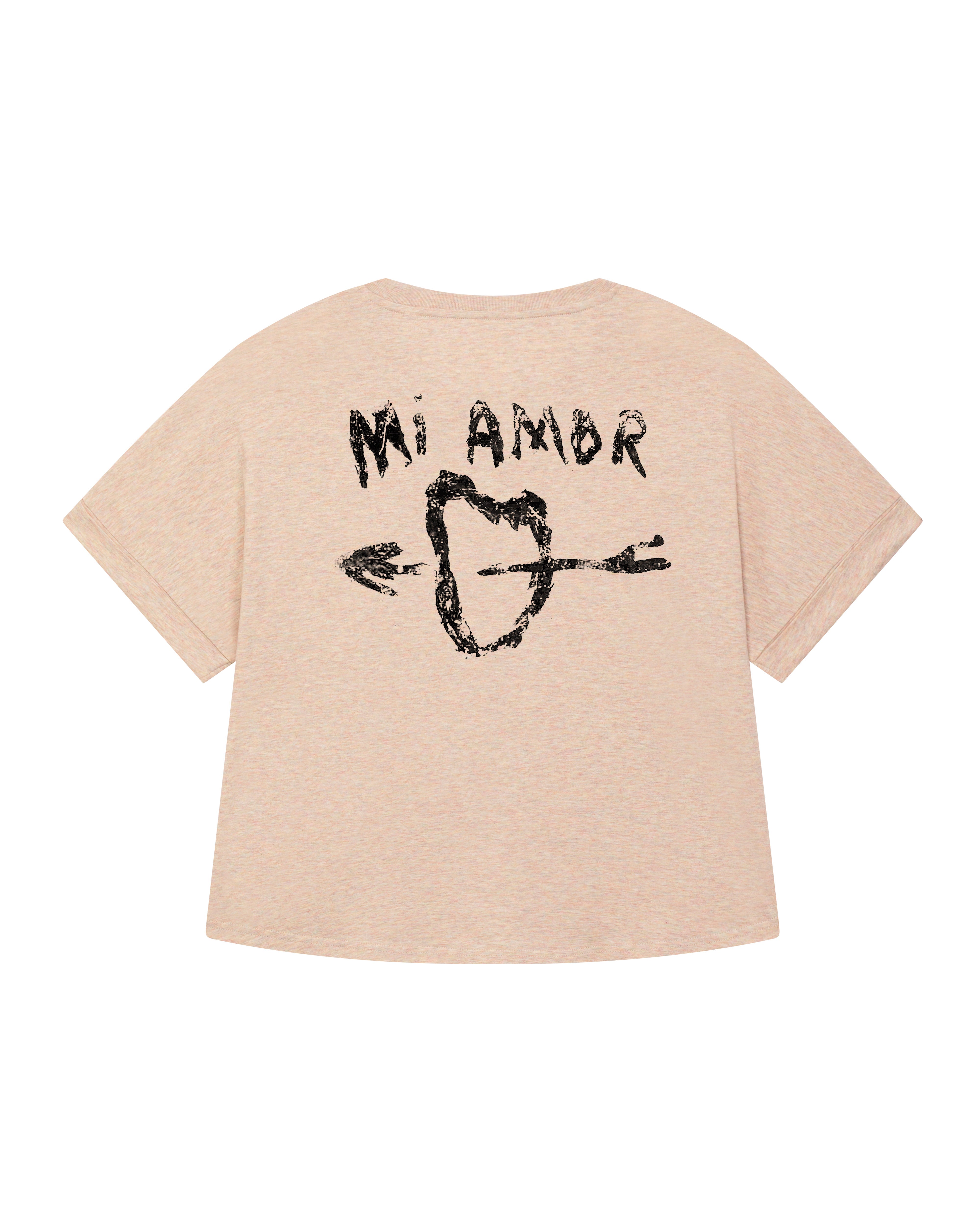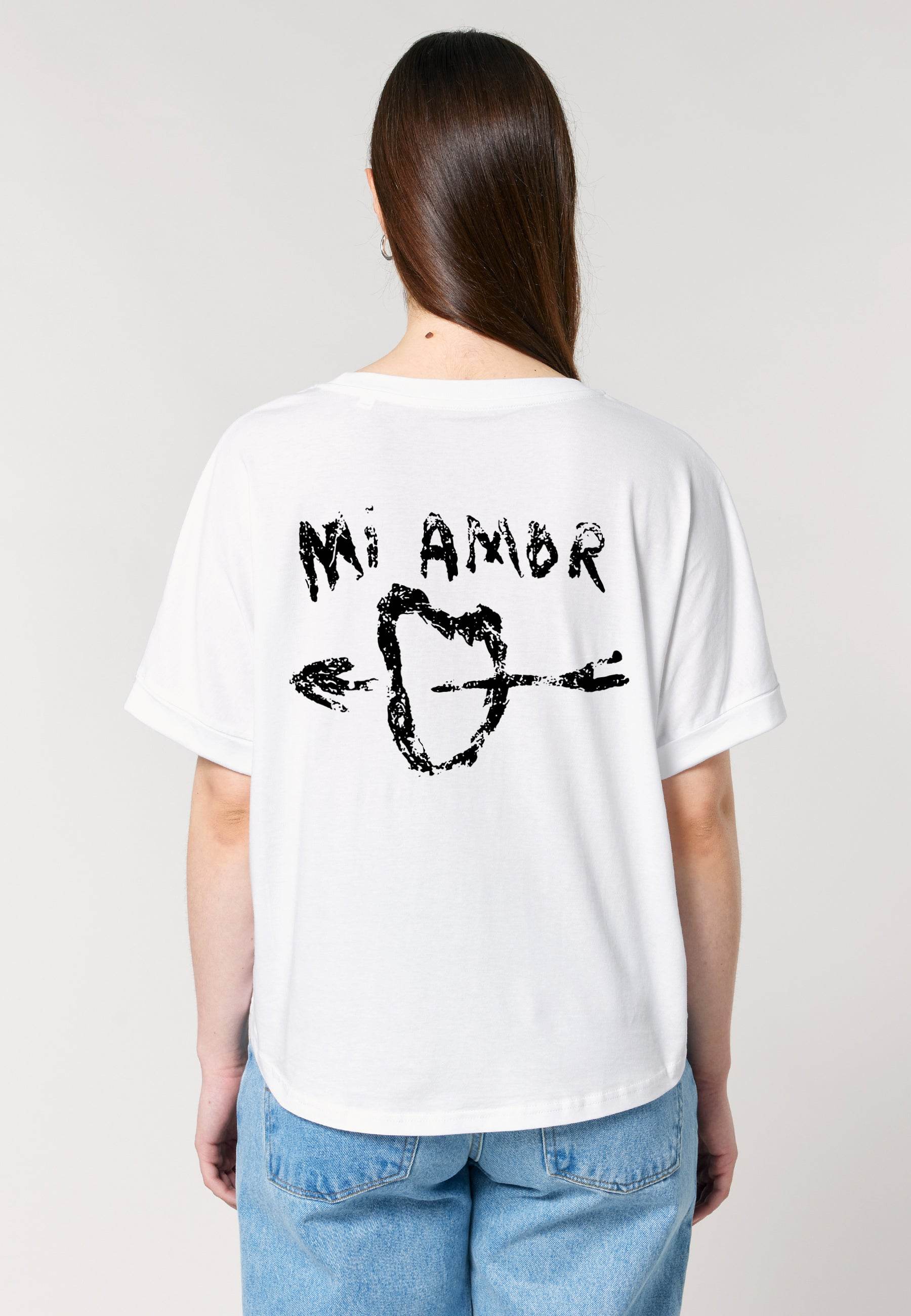 T-shirt Femme Manches Roulottées Imprimé au Dos "Mi Amor"