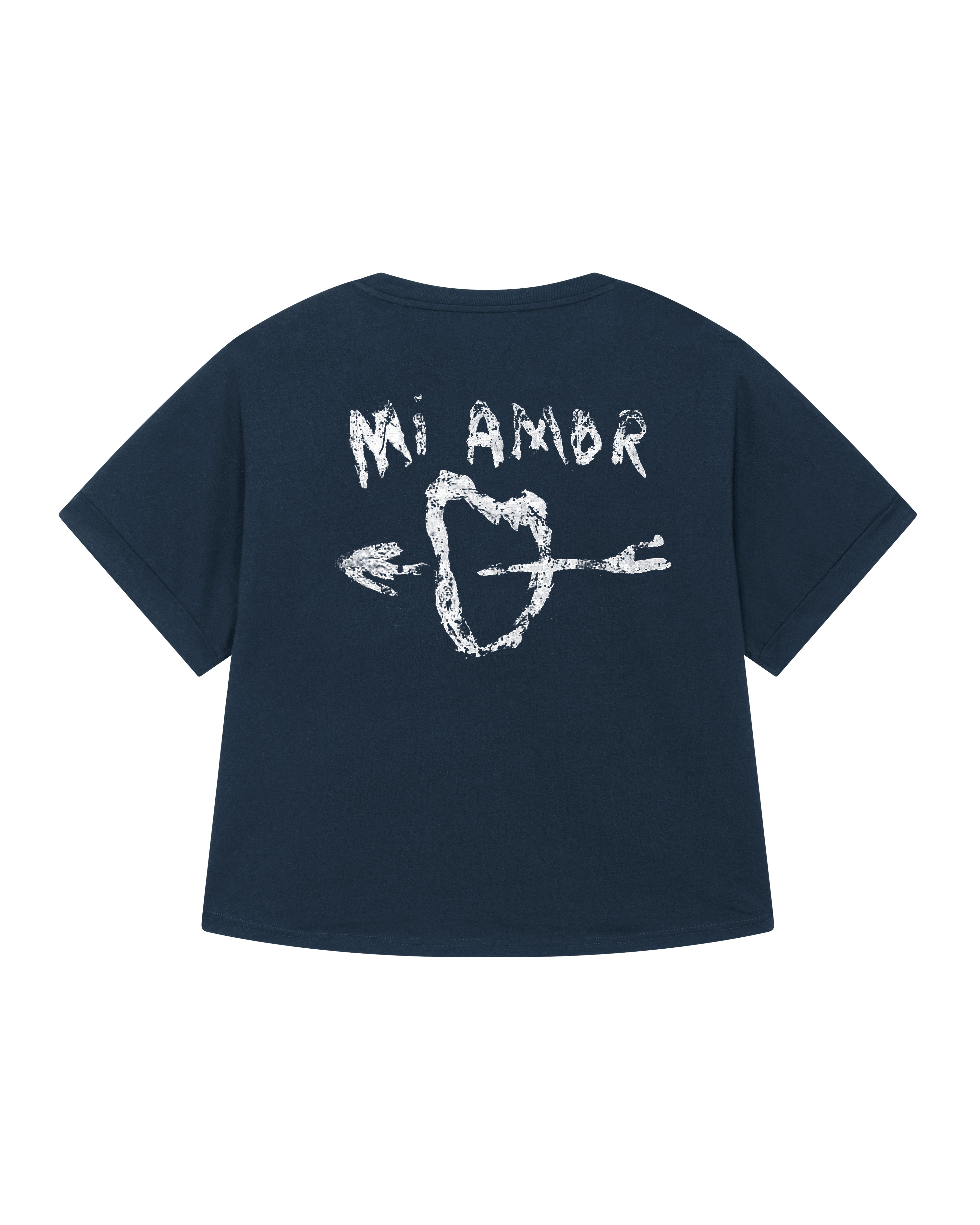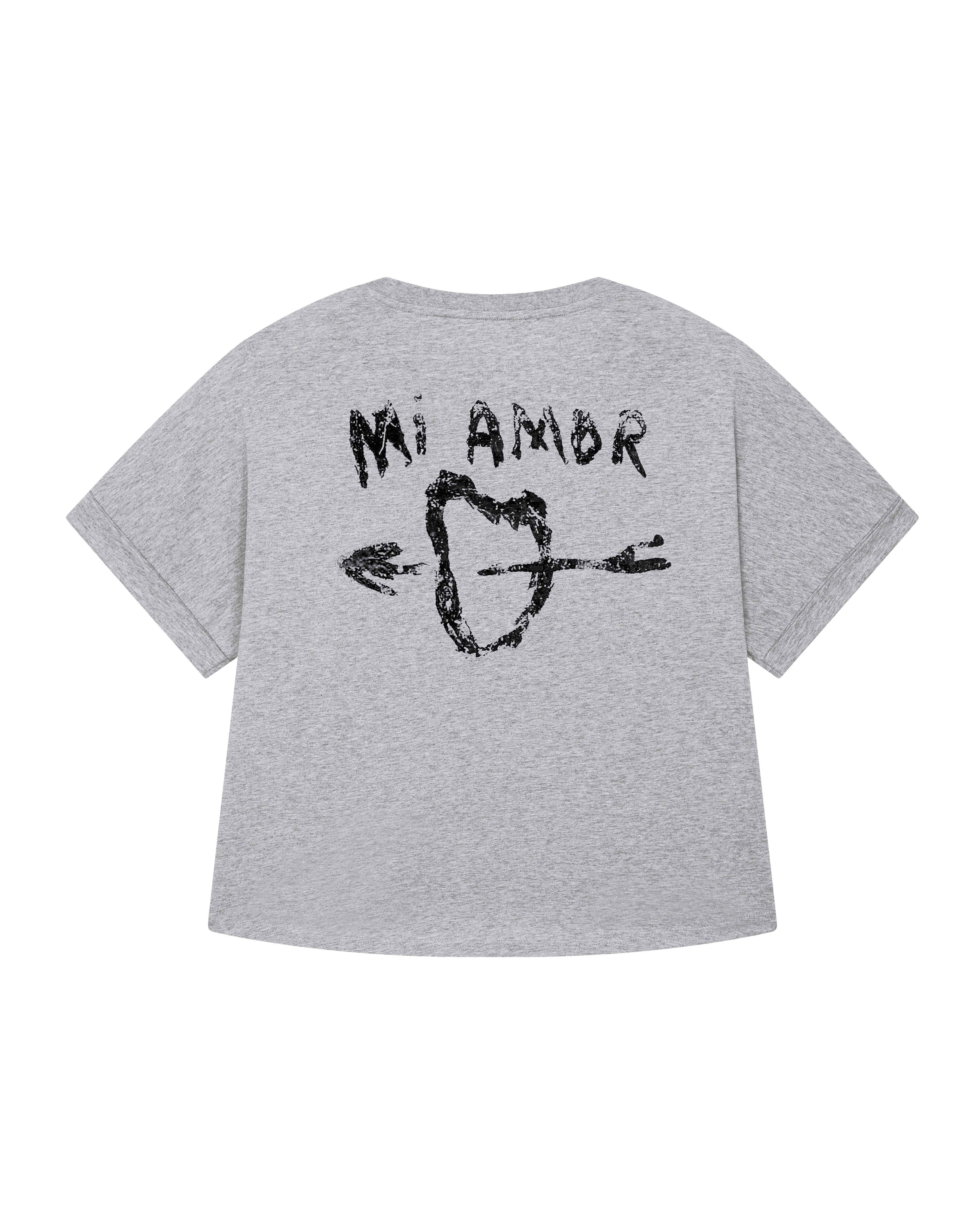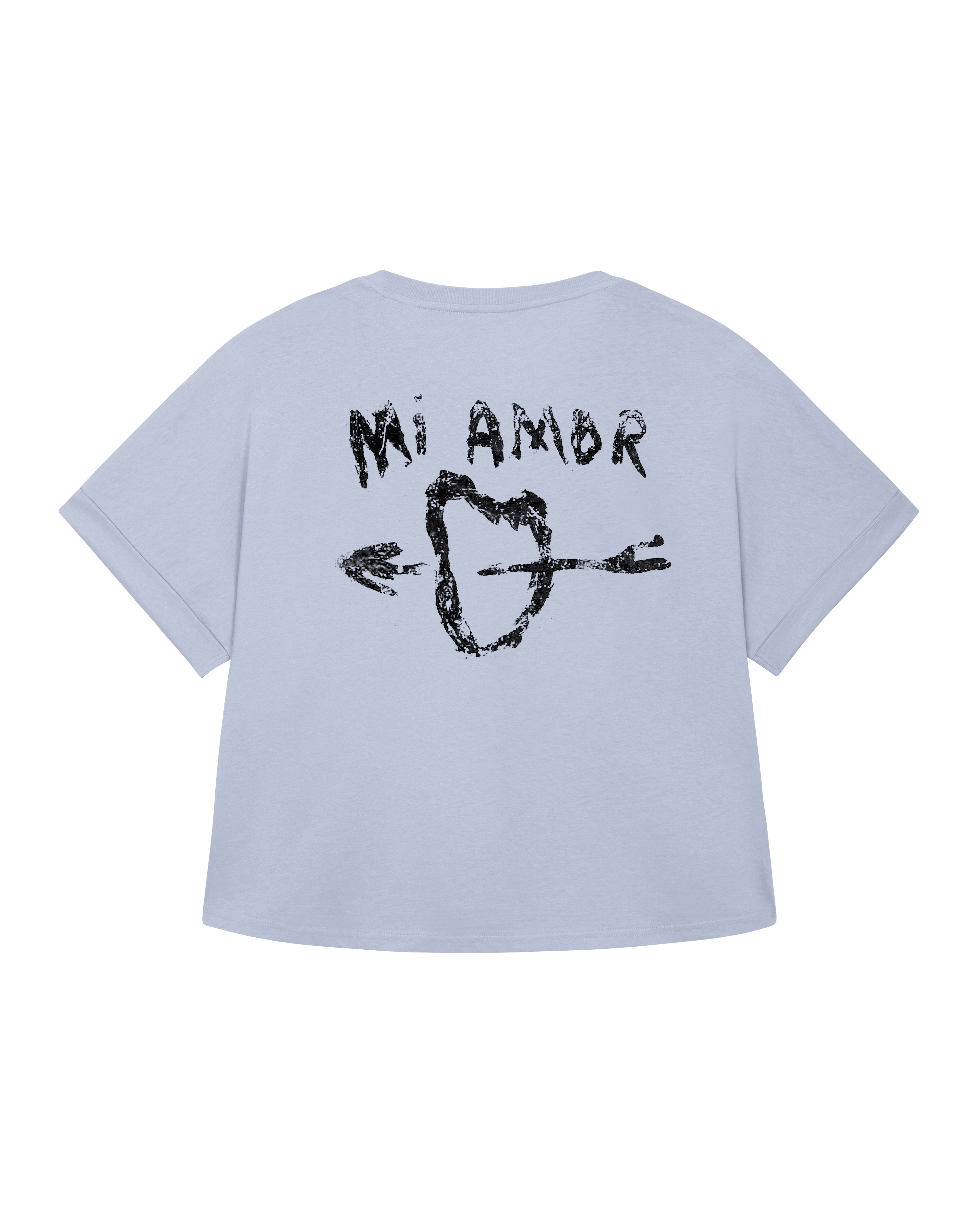 T-shirt Femme Manches Roulottées Imprimé au Dos "Mi Amor"