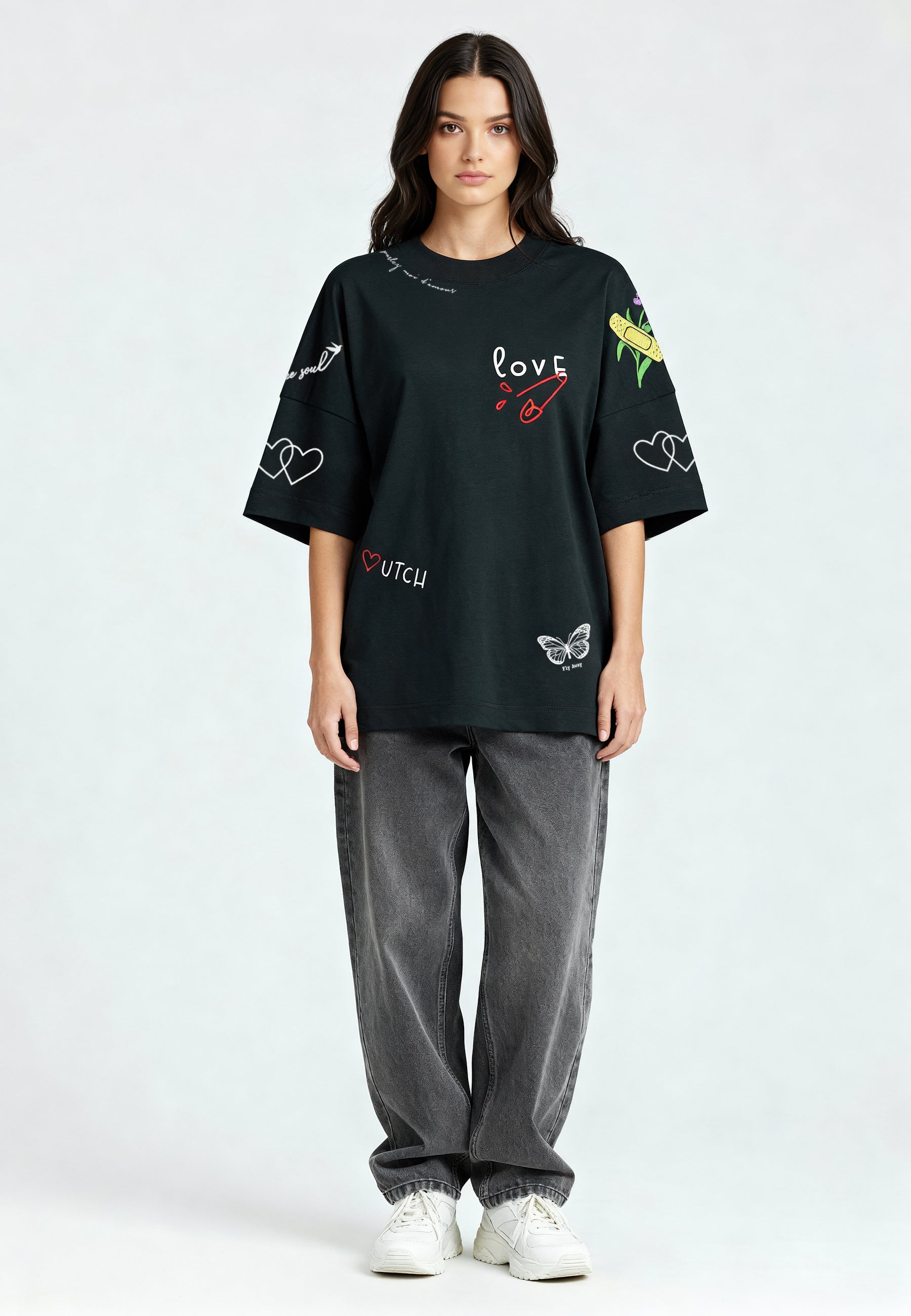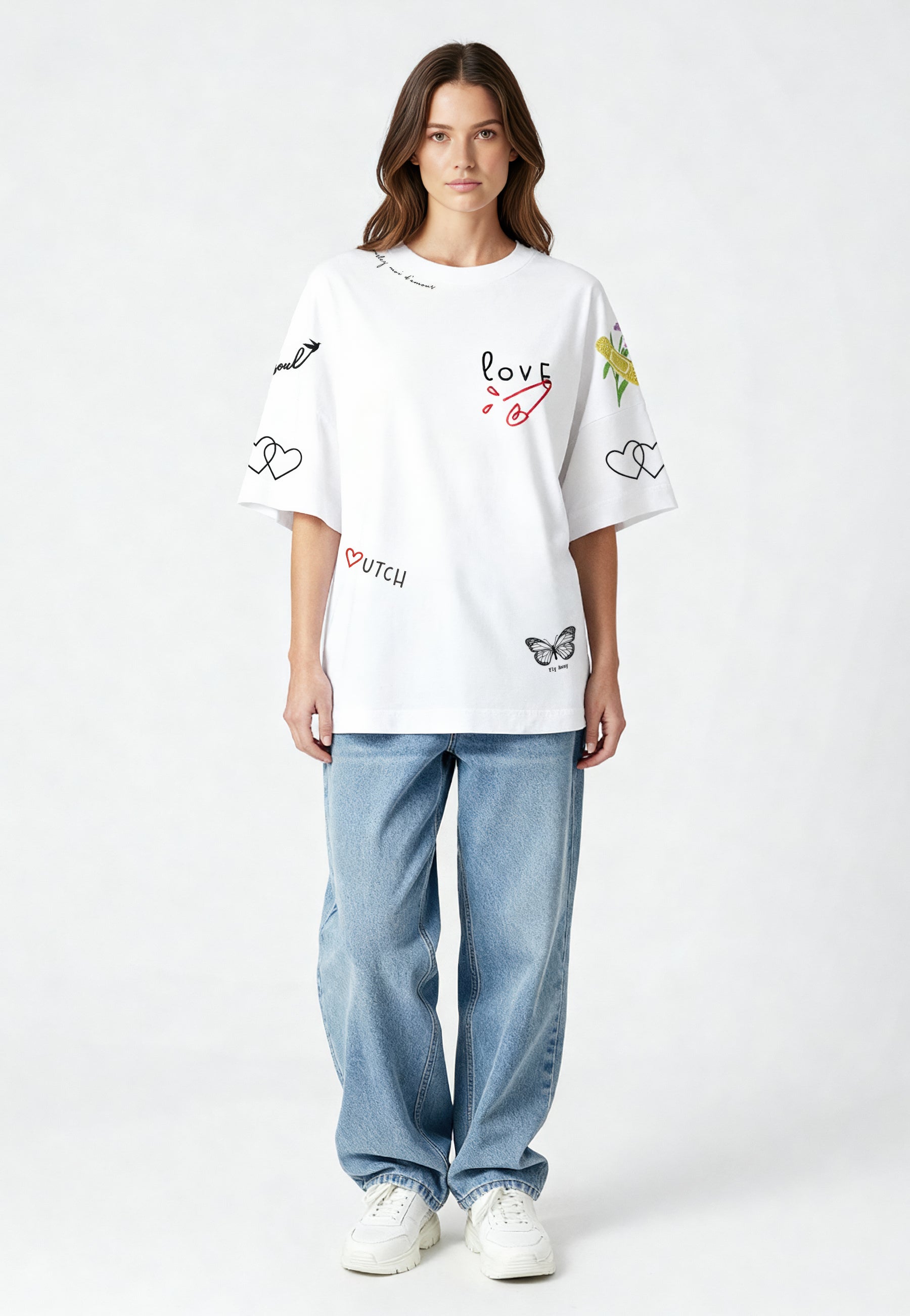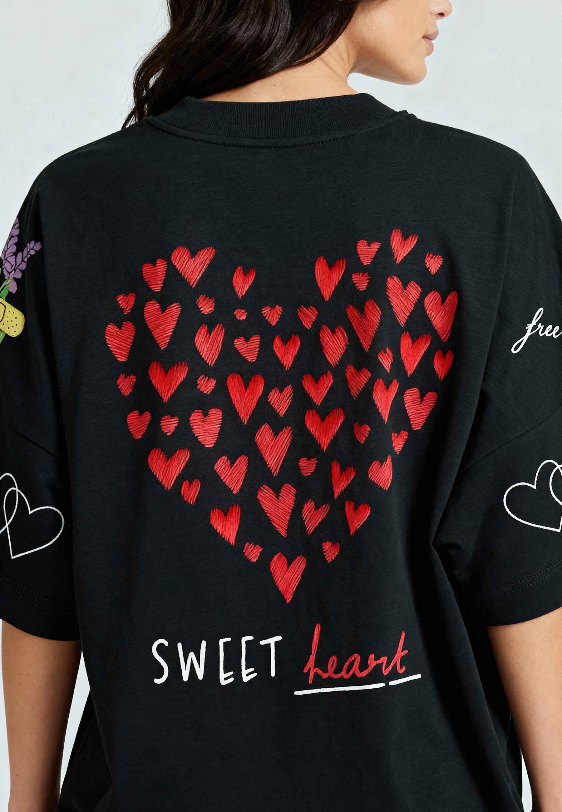 T-shirt Oversize en Jersey Épais Imprimé "Tattoo Sweet"