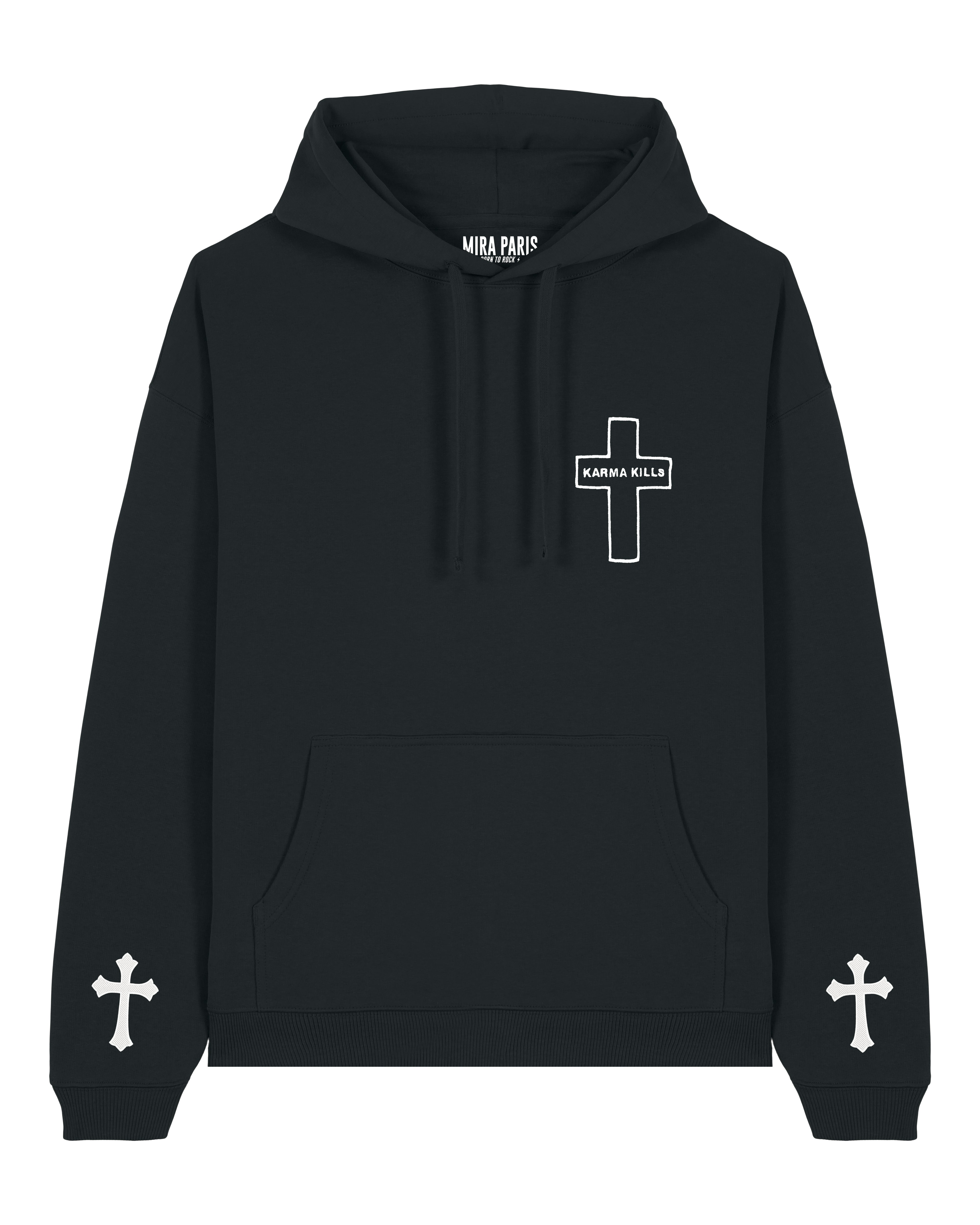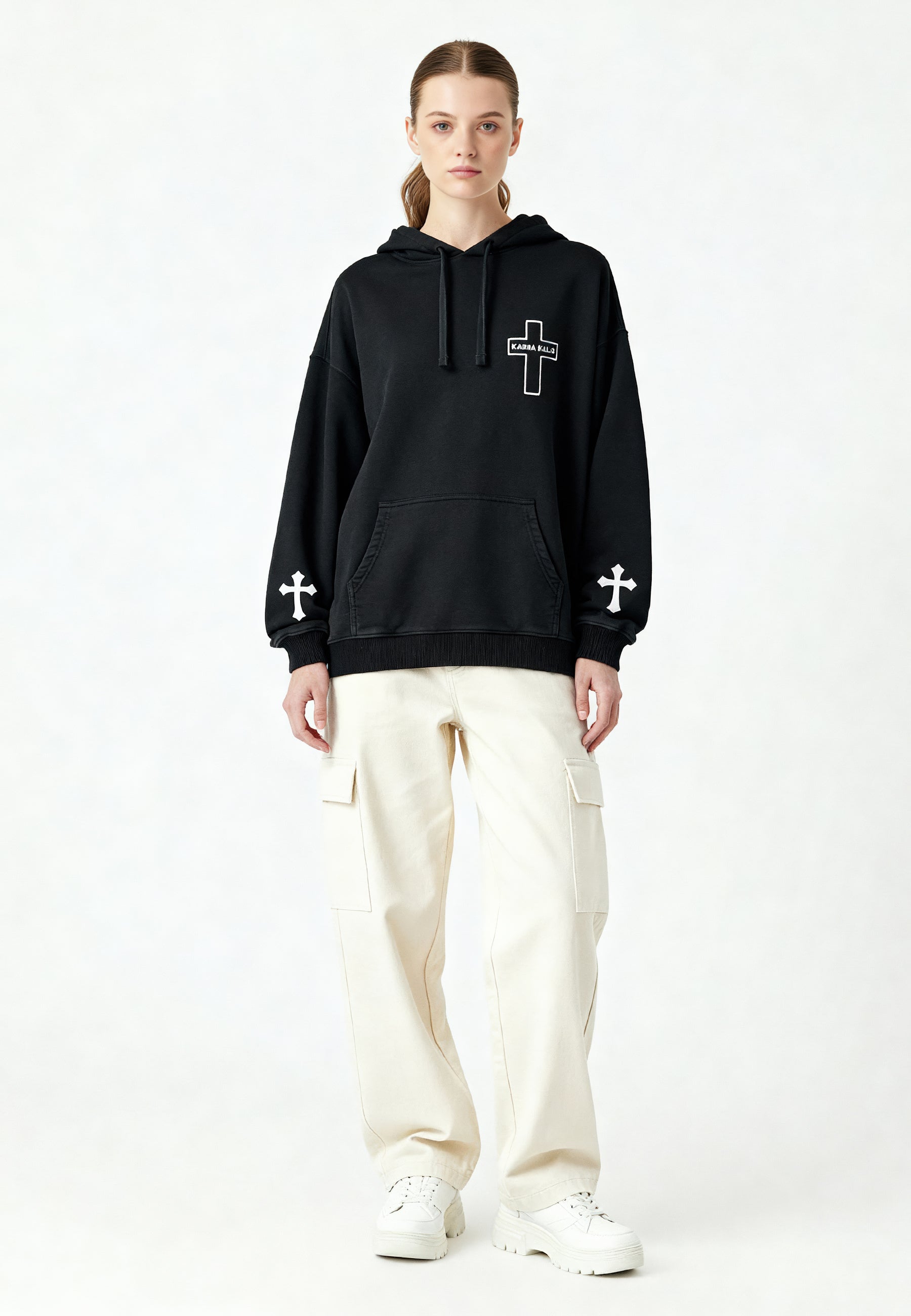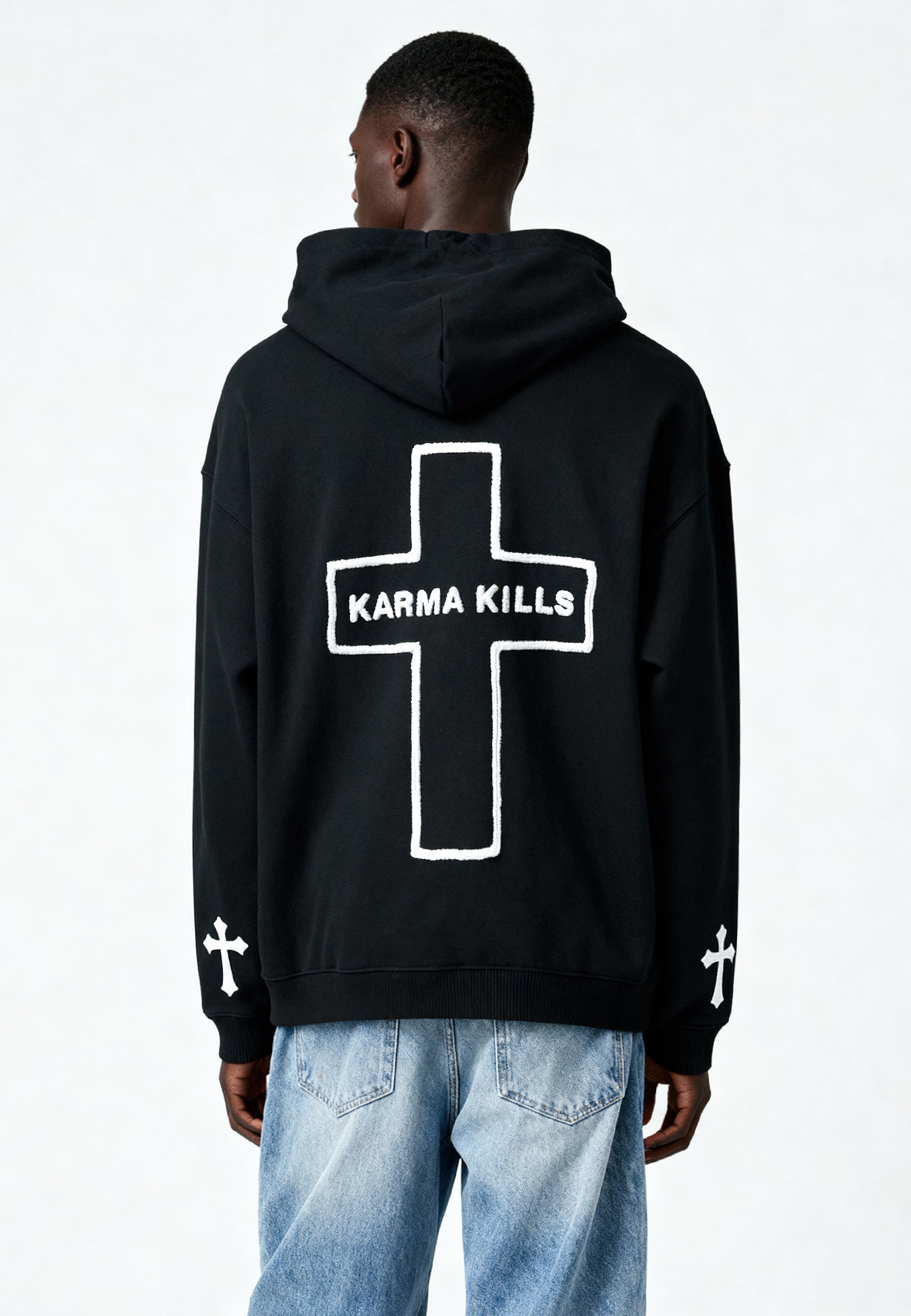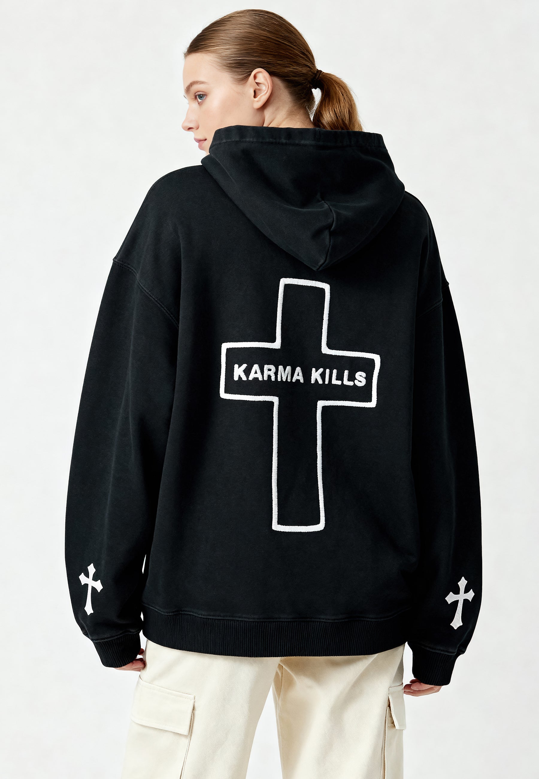Sweat à Capuche Oversize Brodé "Karma Kills"