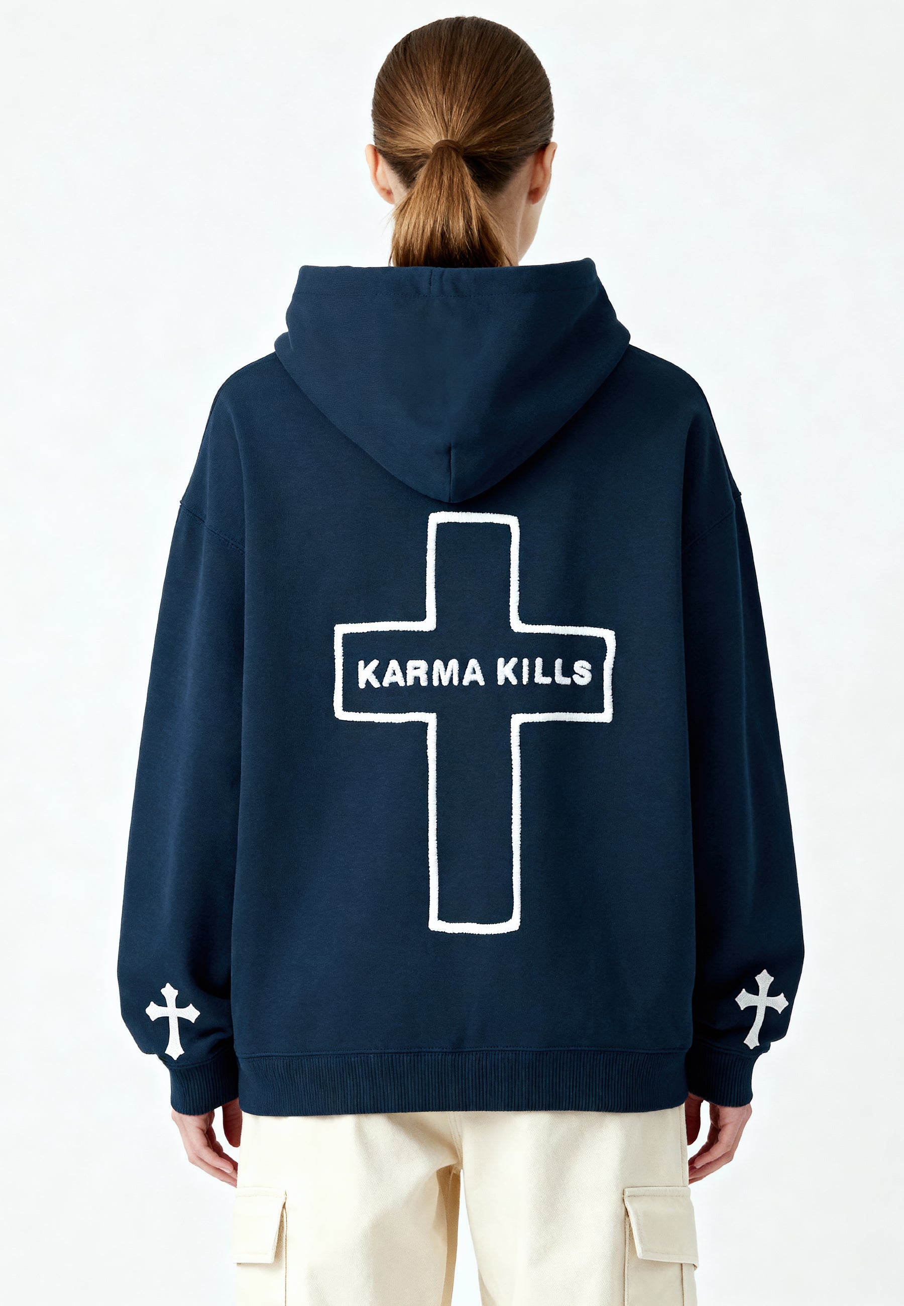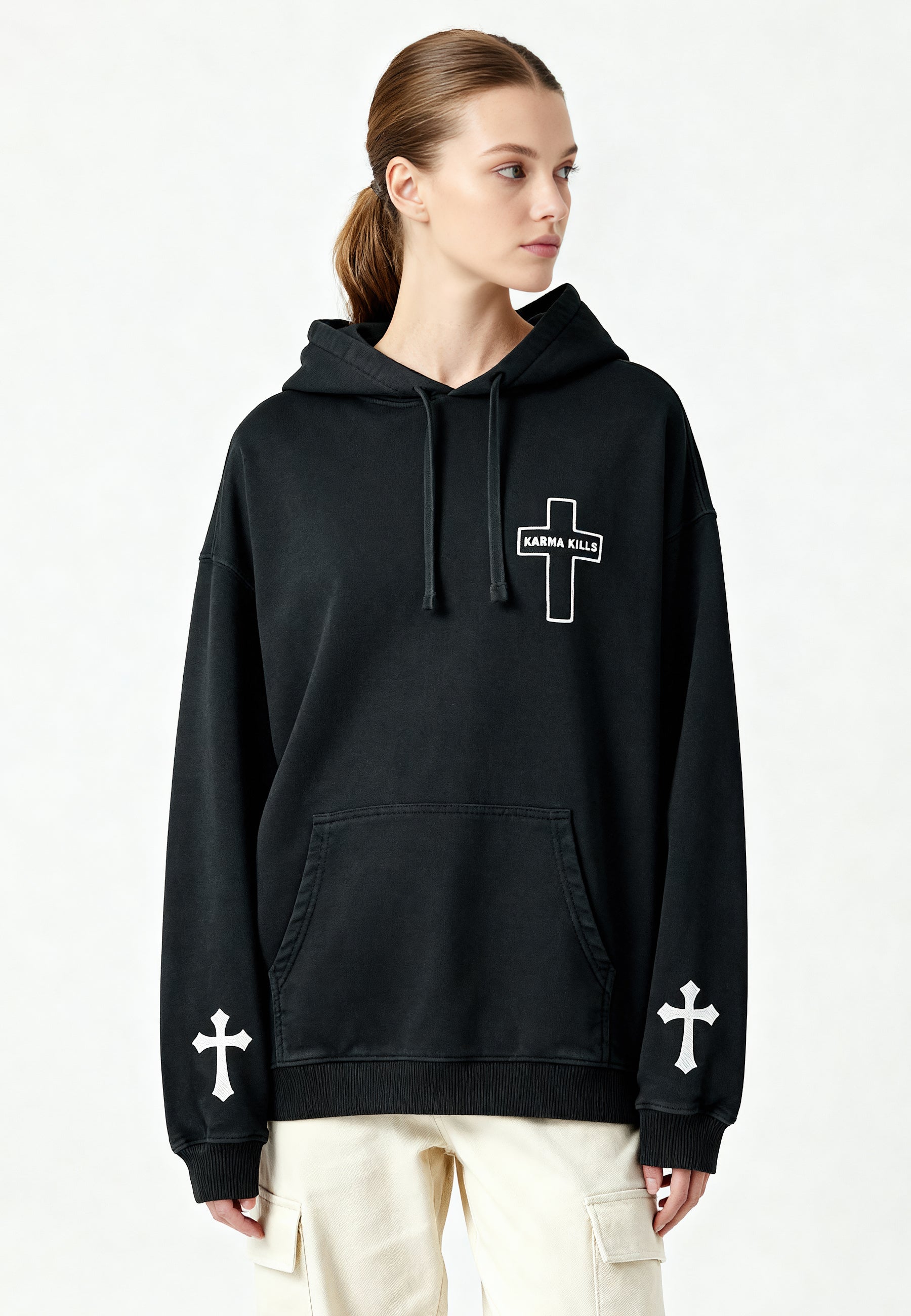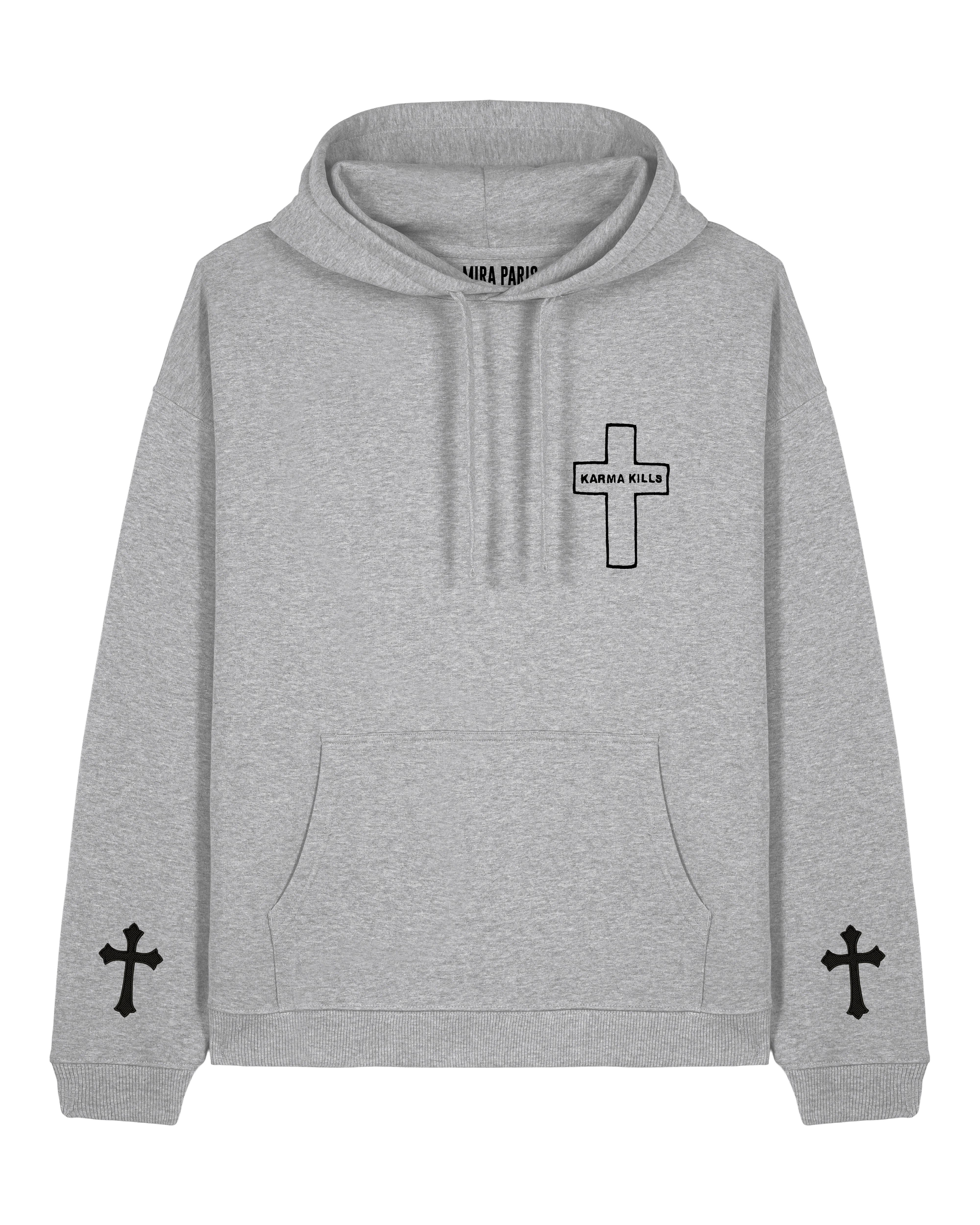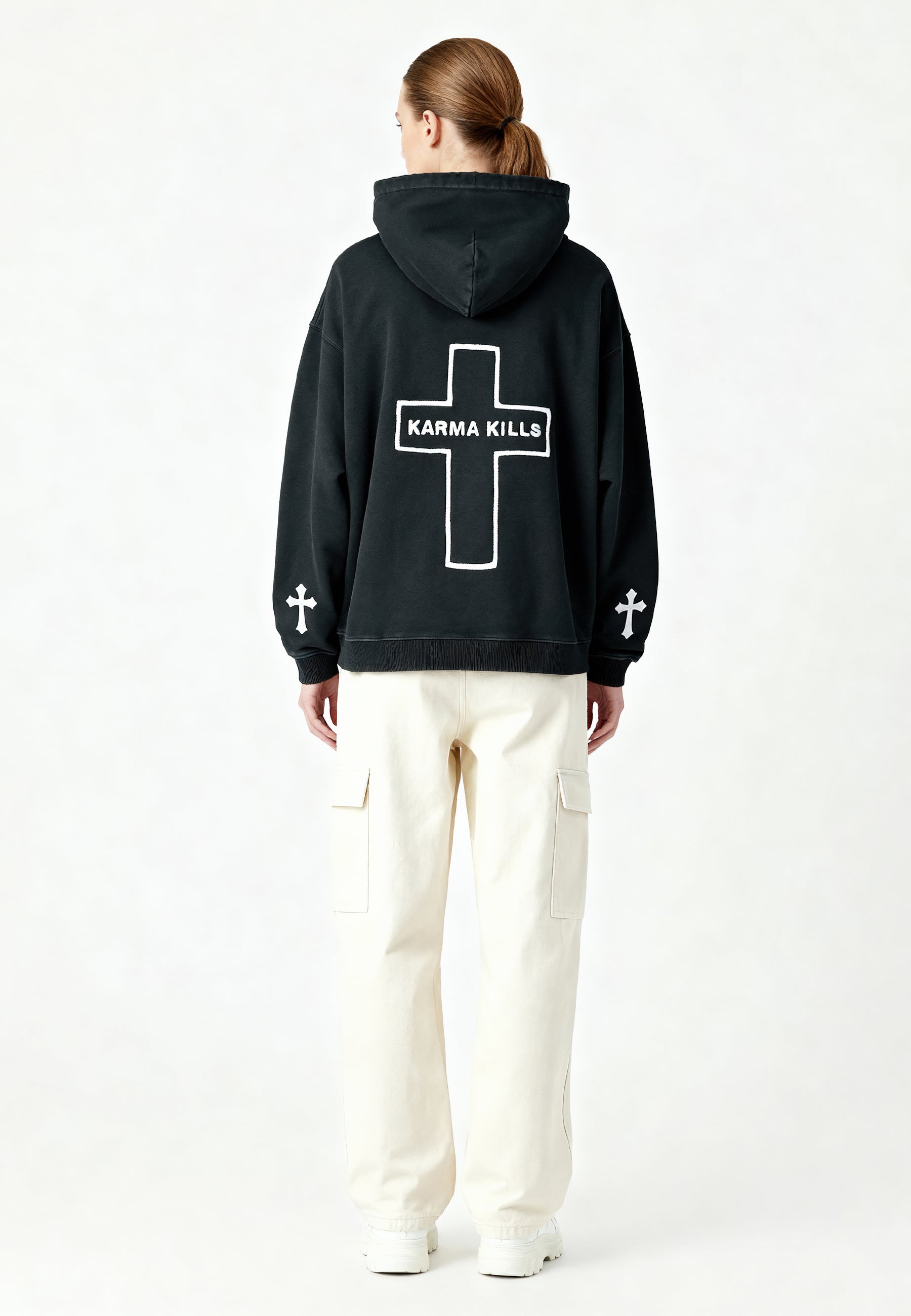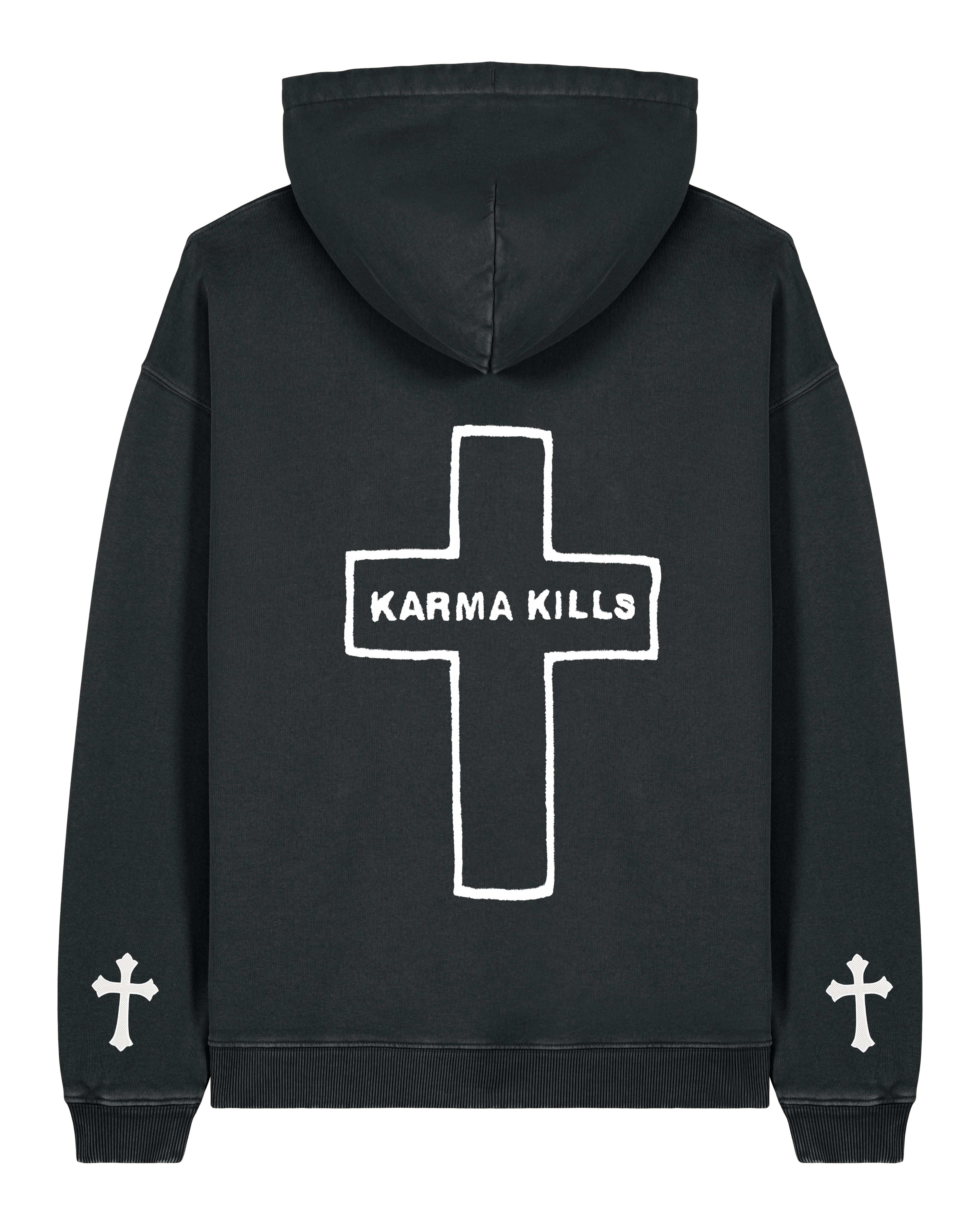 Sweat à Capuche Oversize Brodé "Karma Kills"