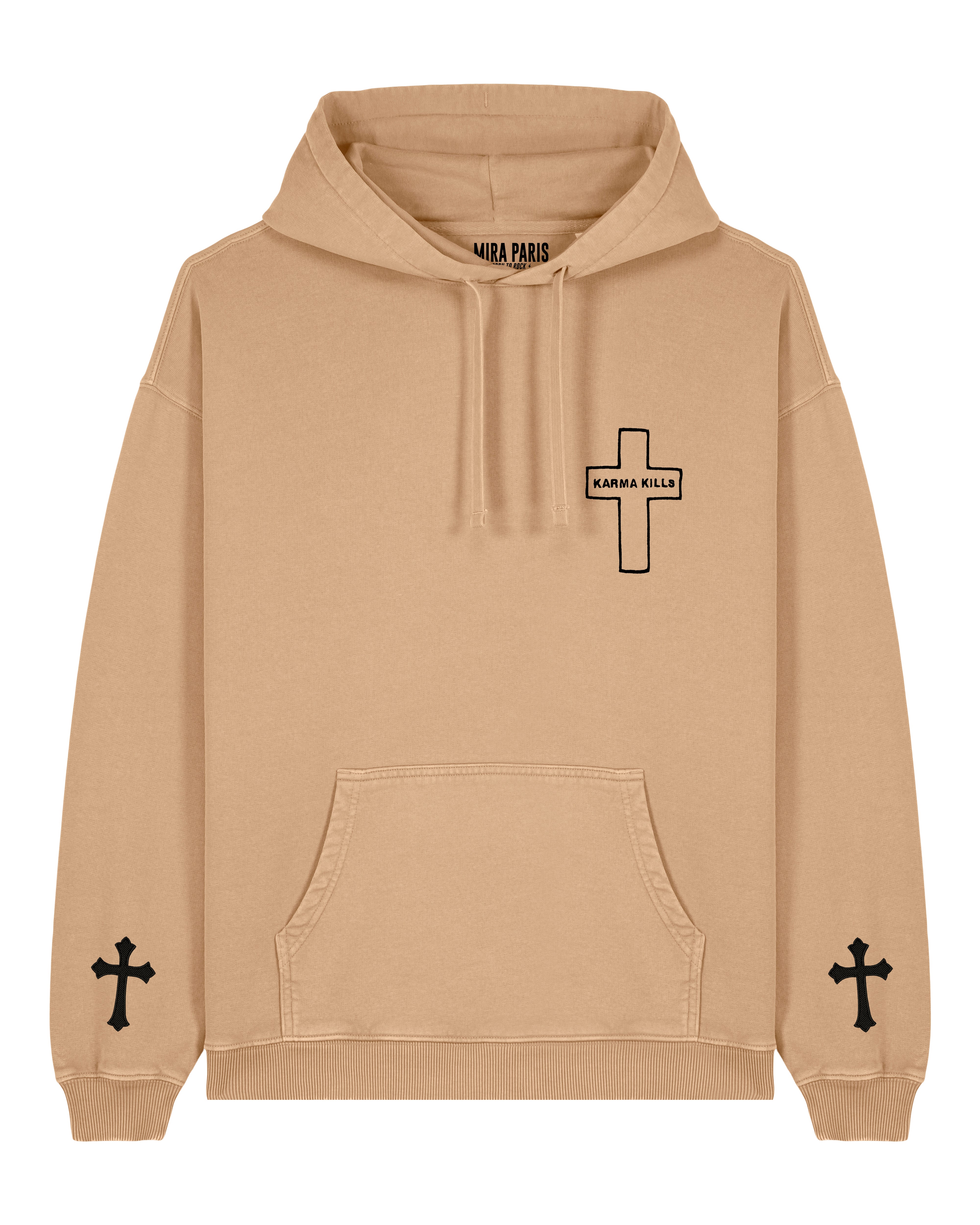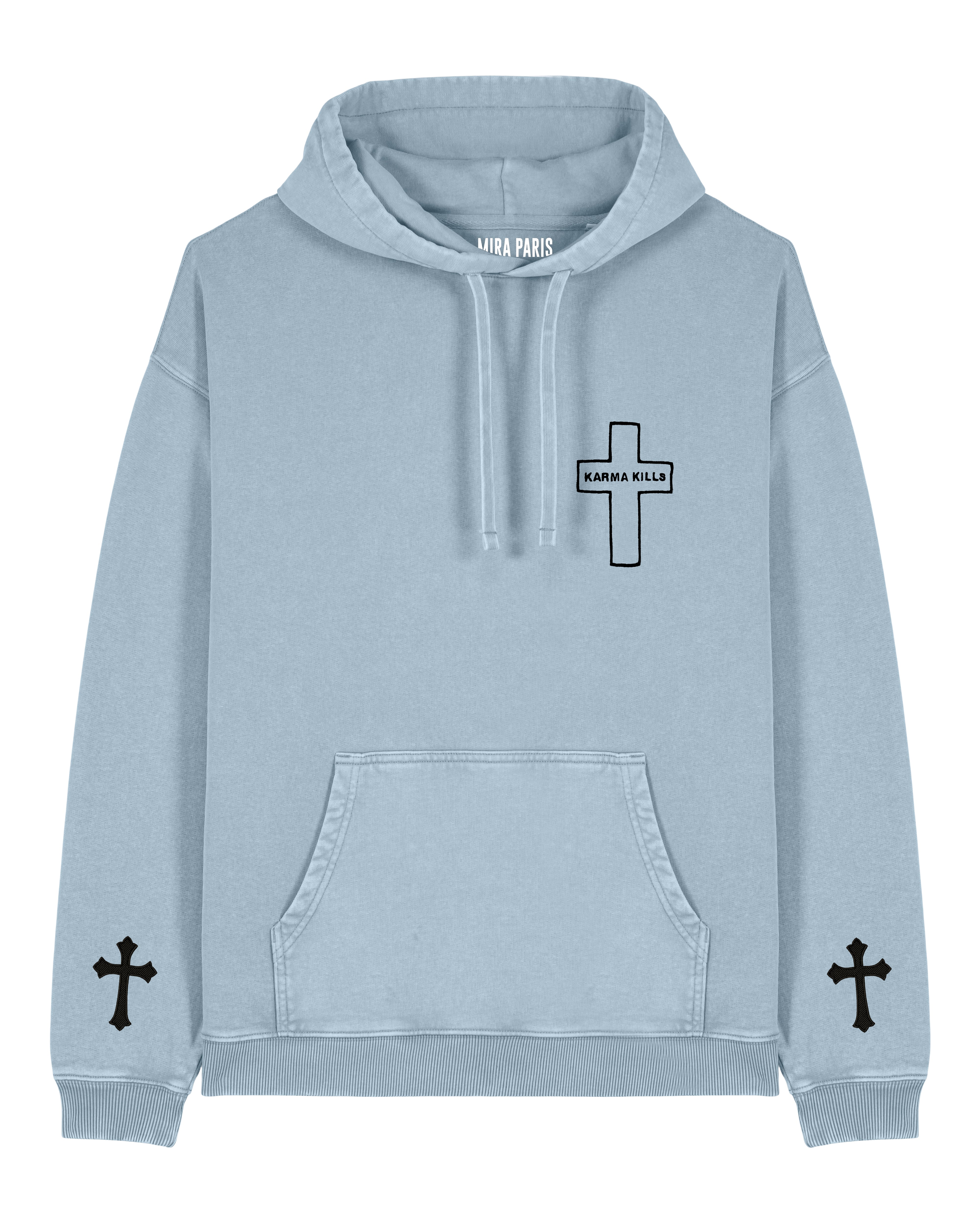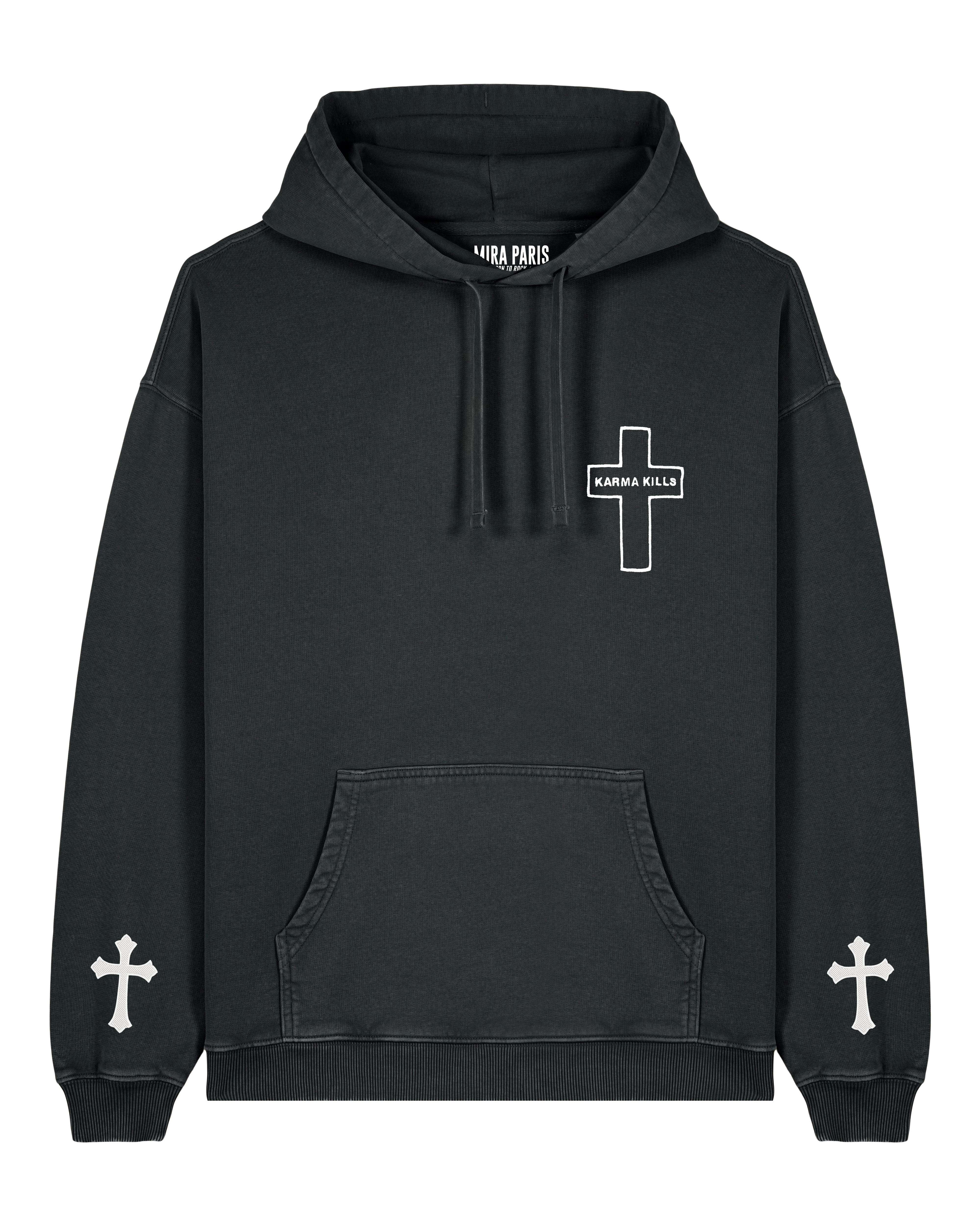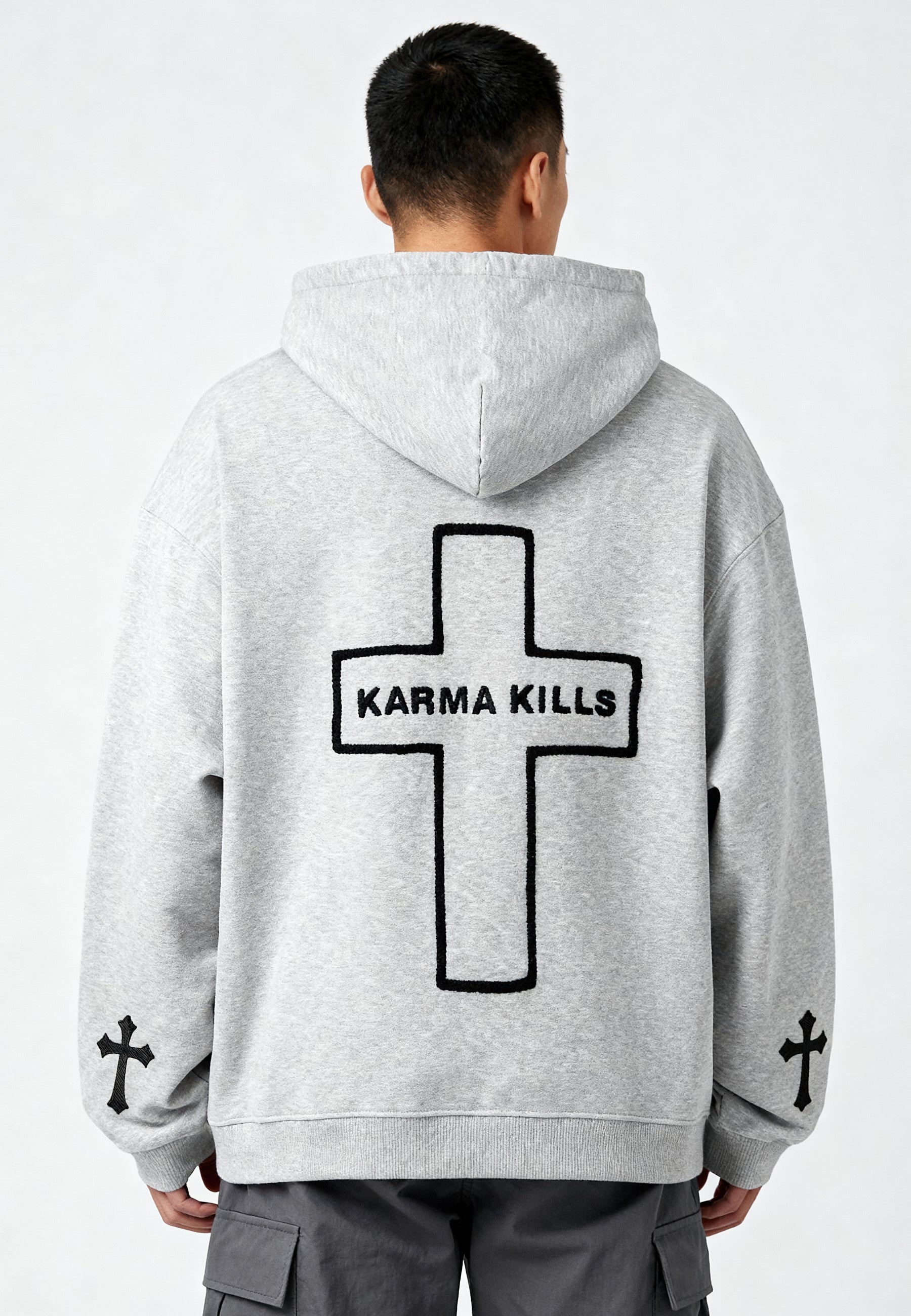 Sweat à Capuche Oversize Brodé "Karma Kills"
