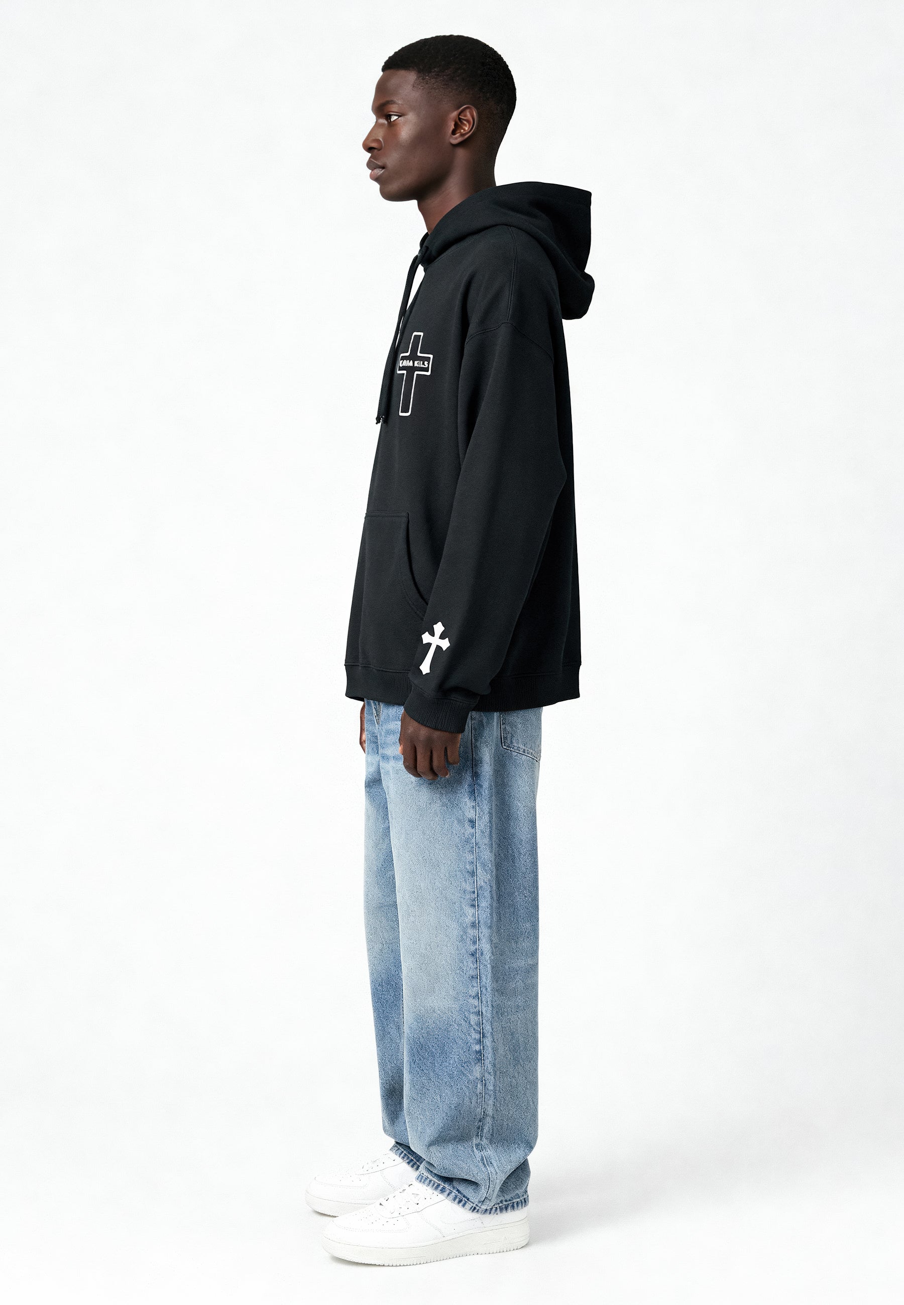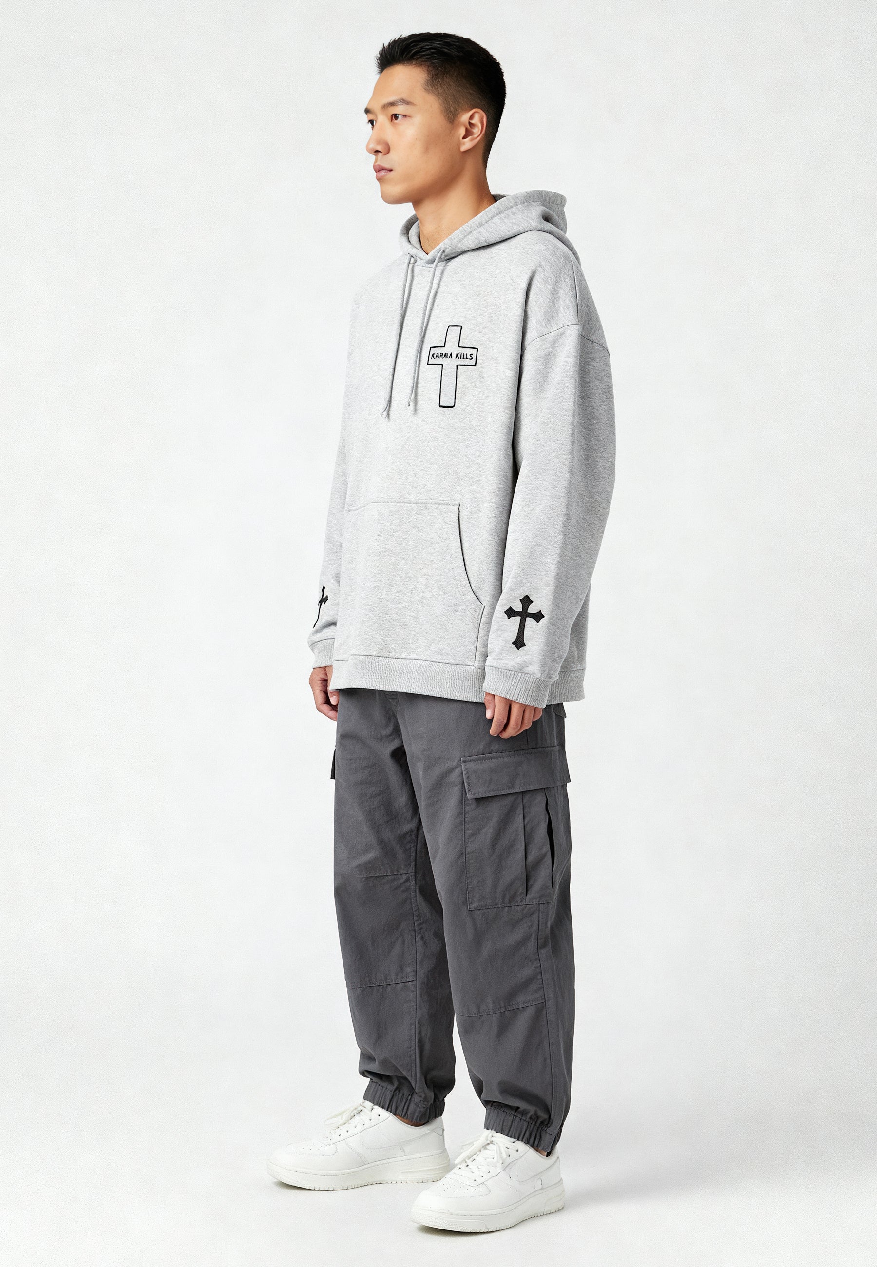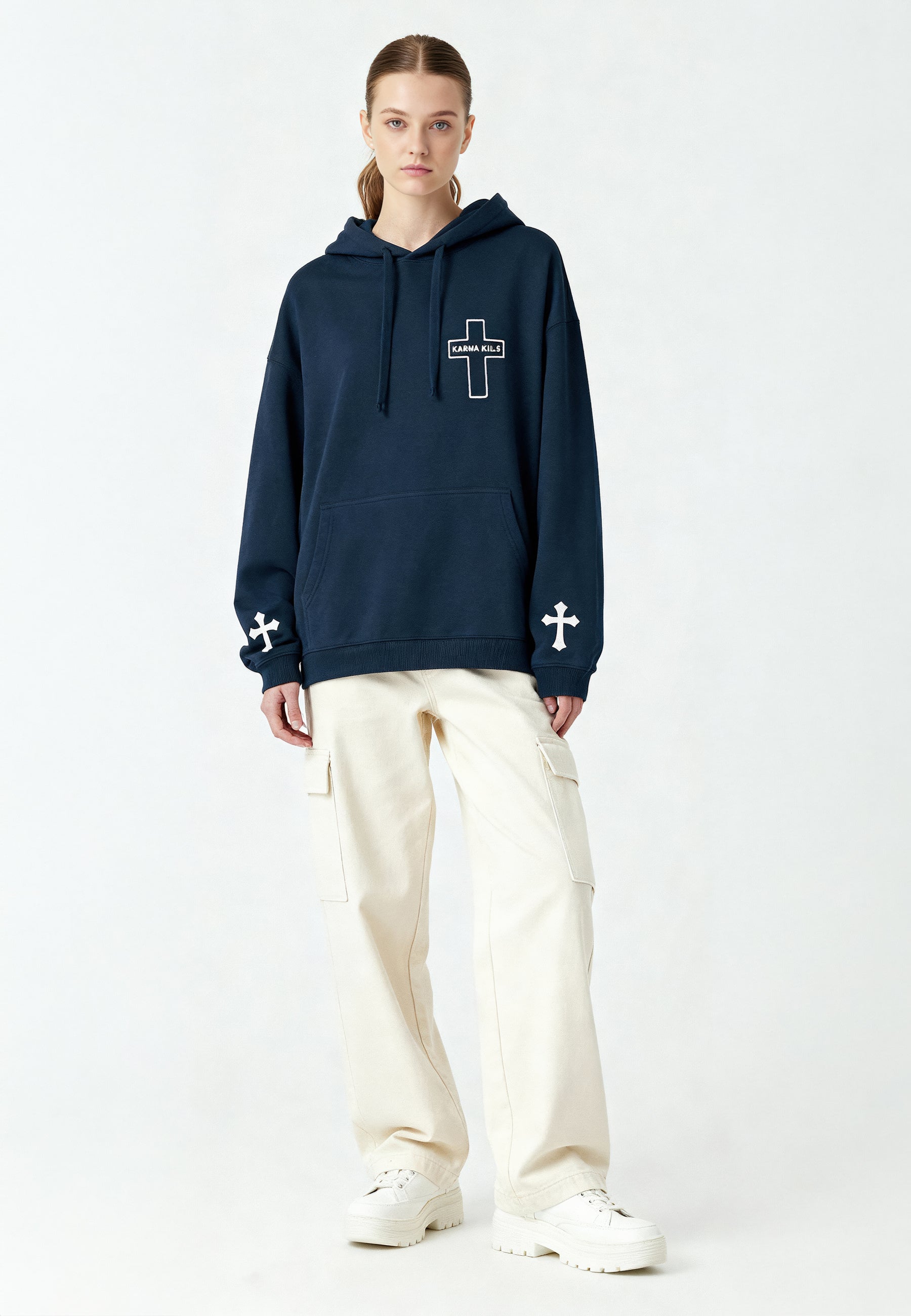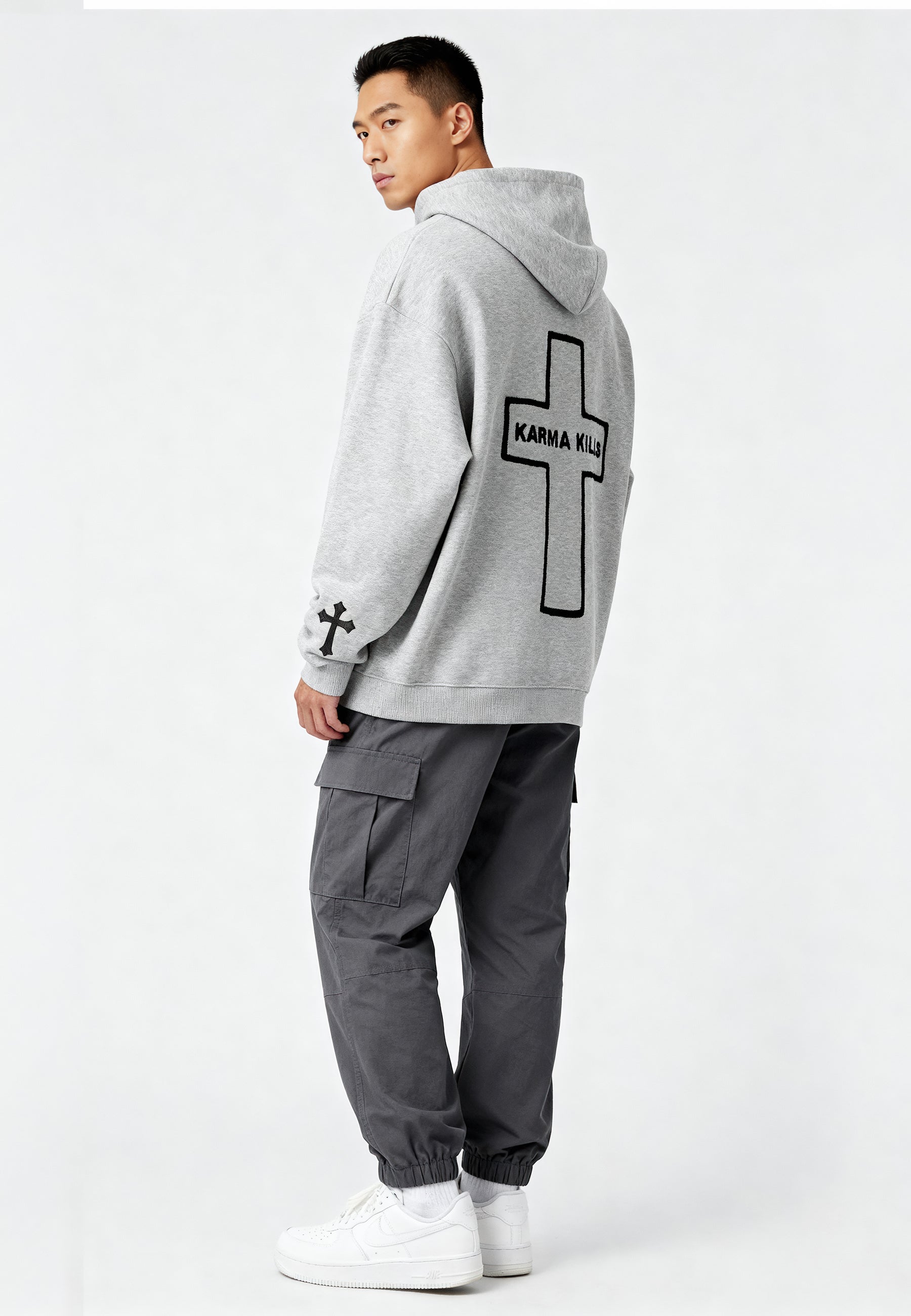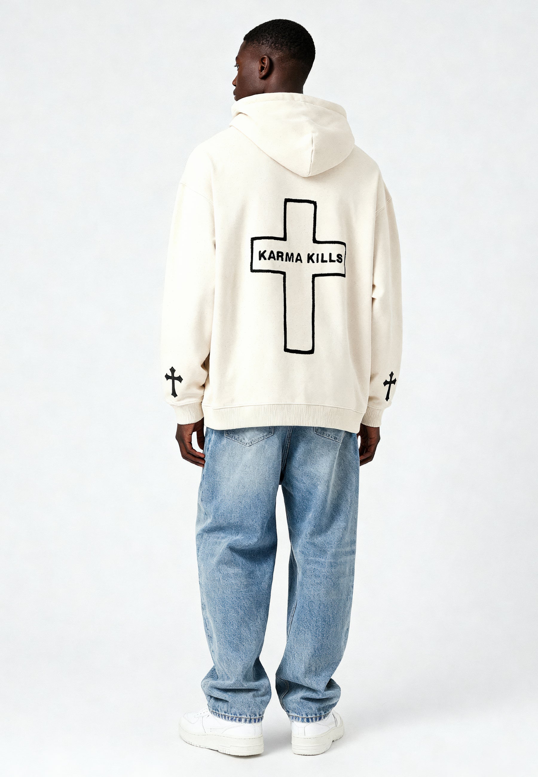 Sweat à Capuche Oversize Brodé "Karma Kills"