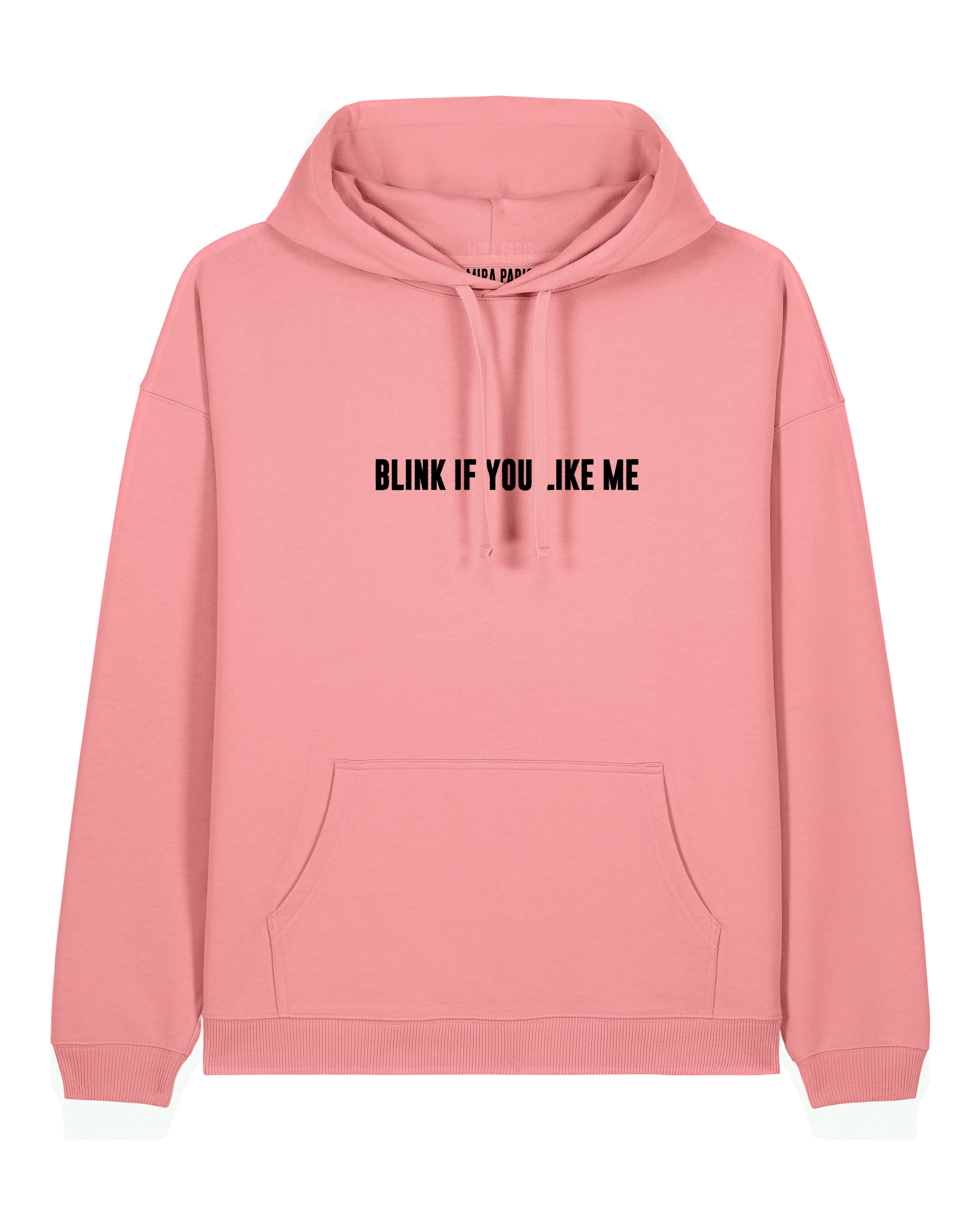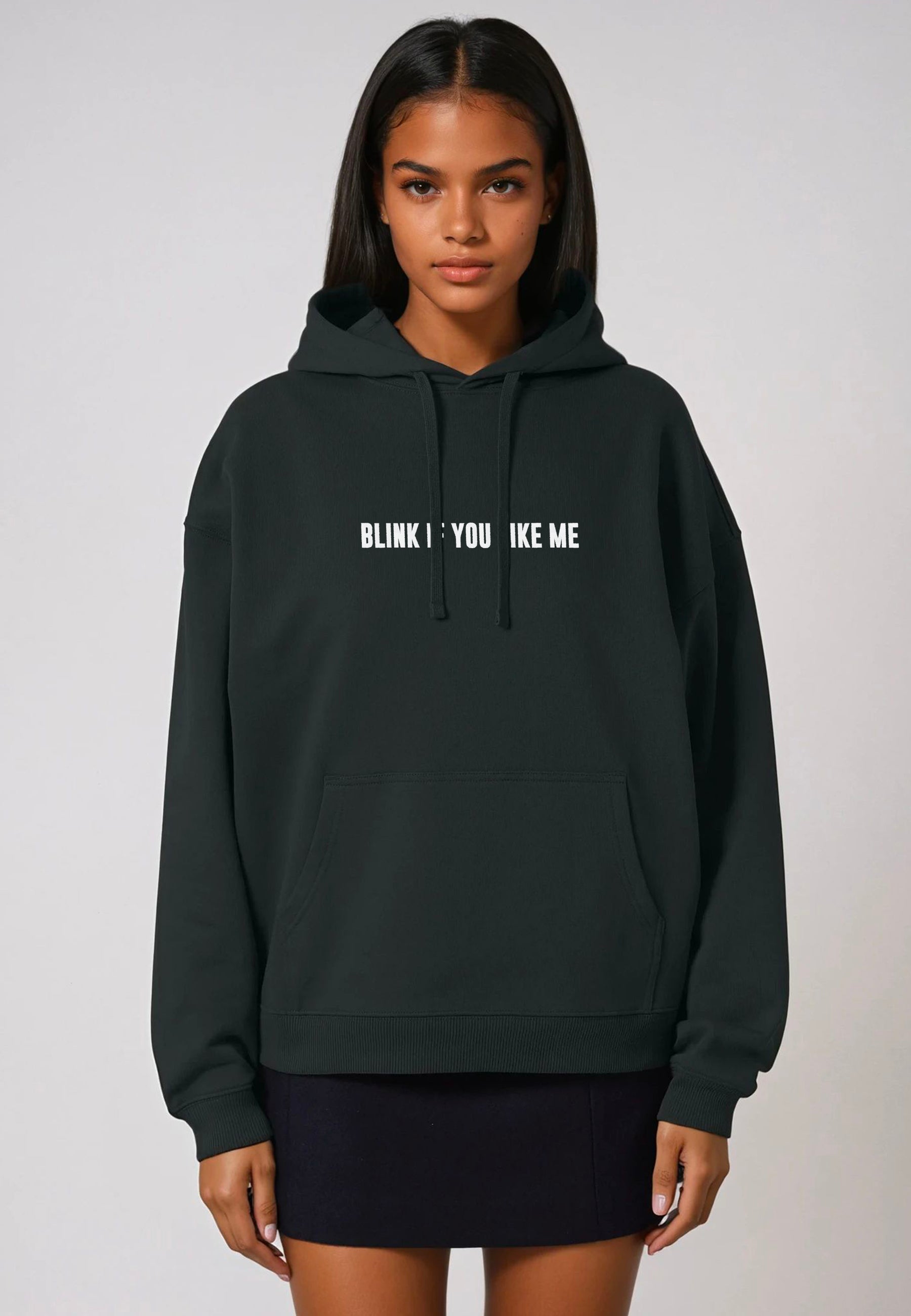 Sweat à Capuche Oversize Brodé "Blink If You Like Me"