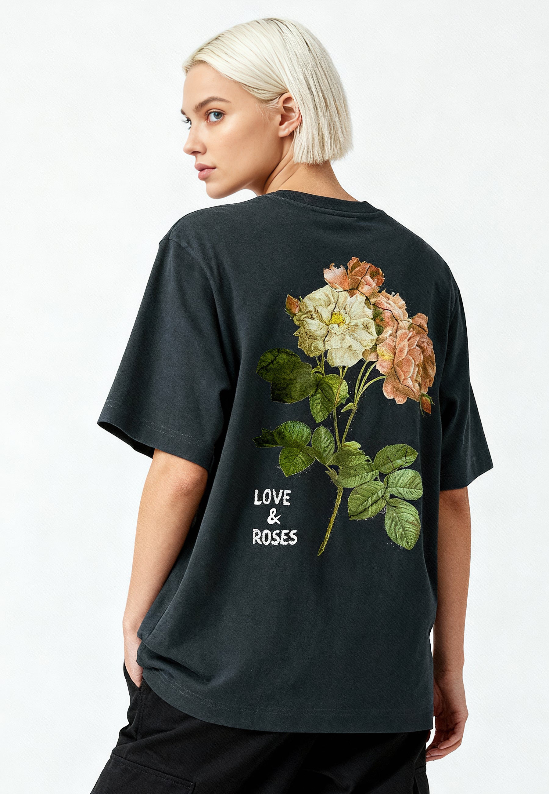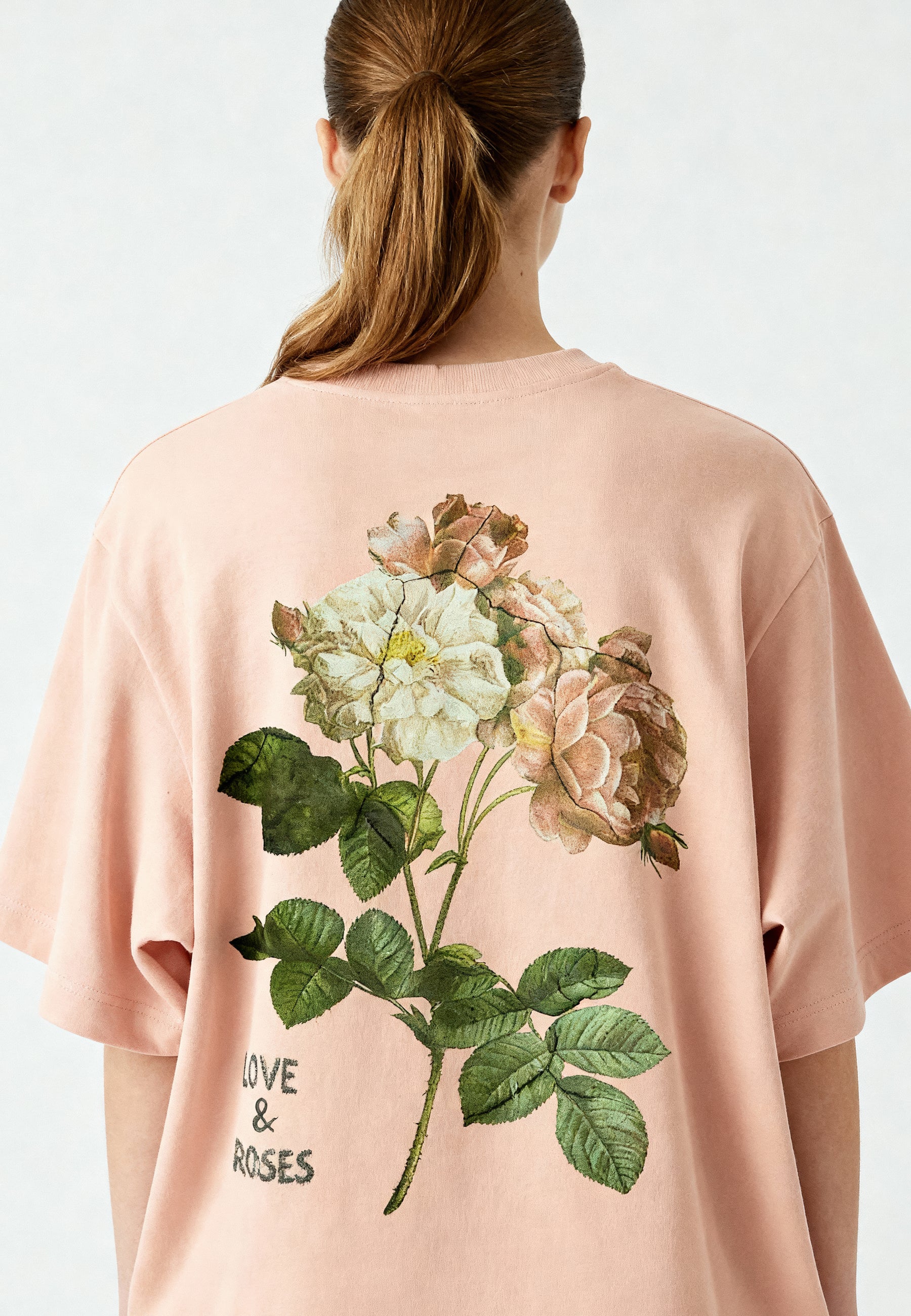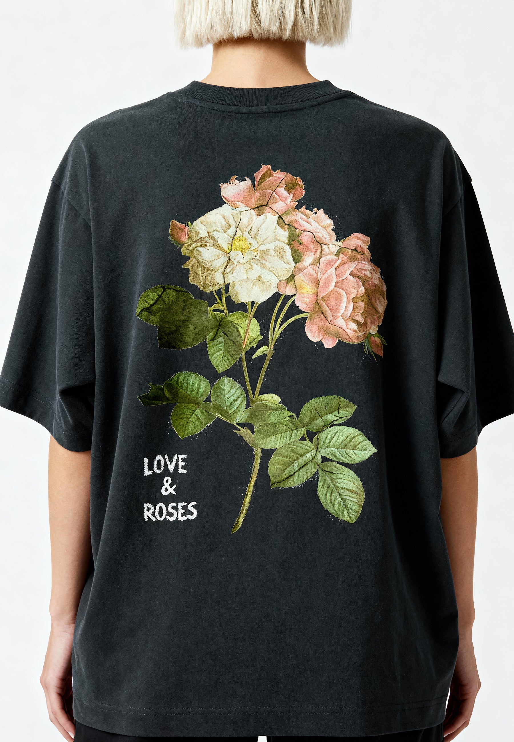 T-shirt Unisexe en Jersey Épais Imprimé au Dos "Roses"