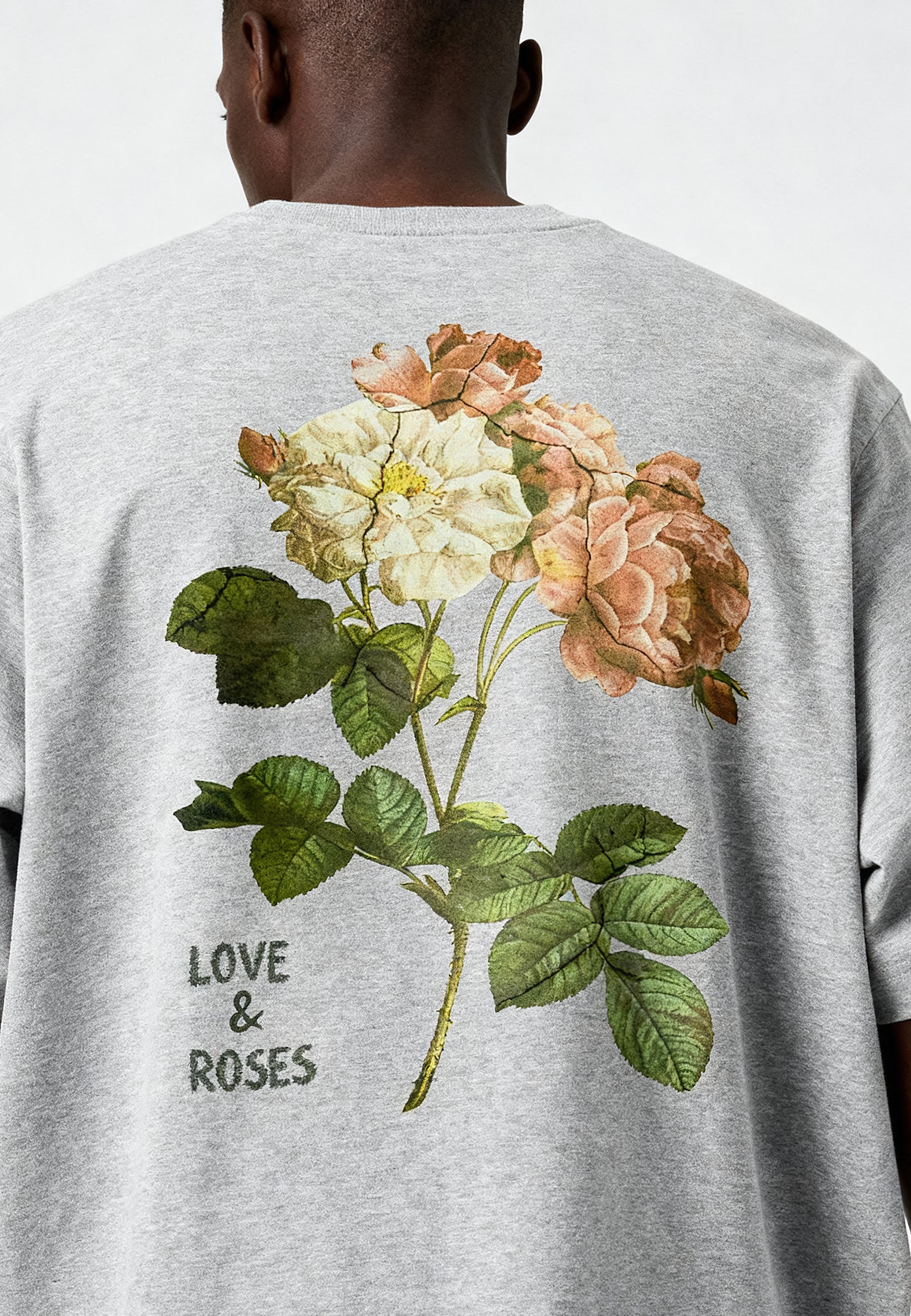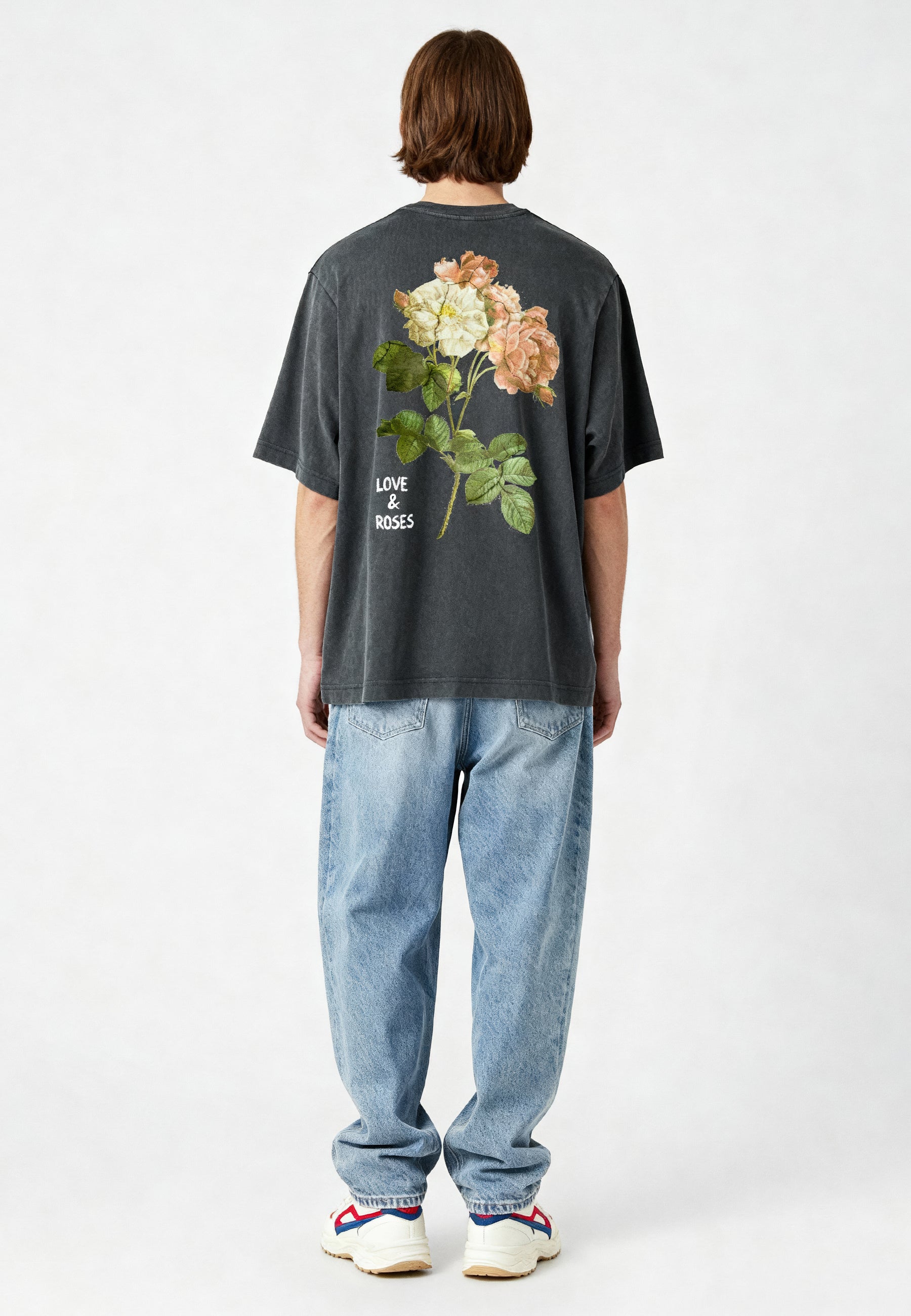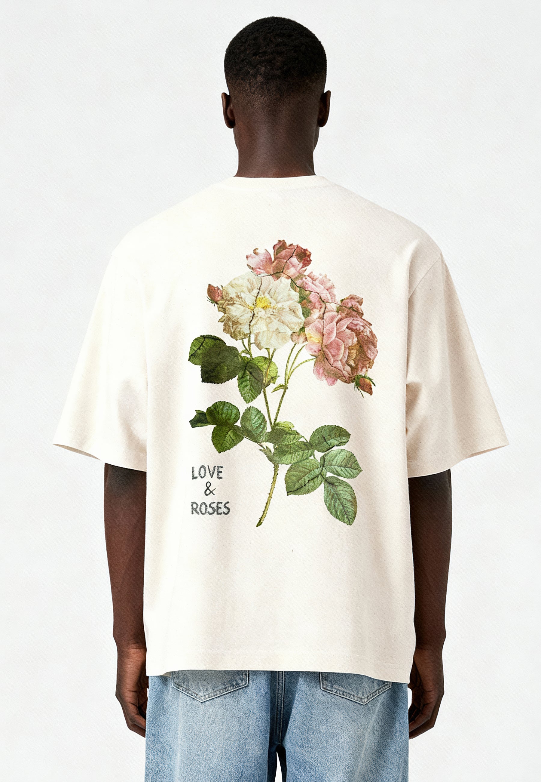T-shirt Unisexe en Jersey Épais Imprimé au Dos "Roses"
