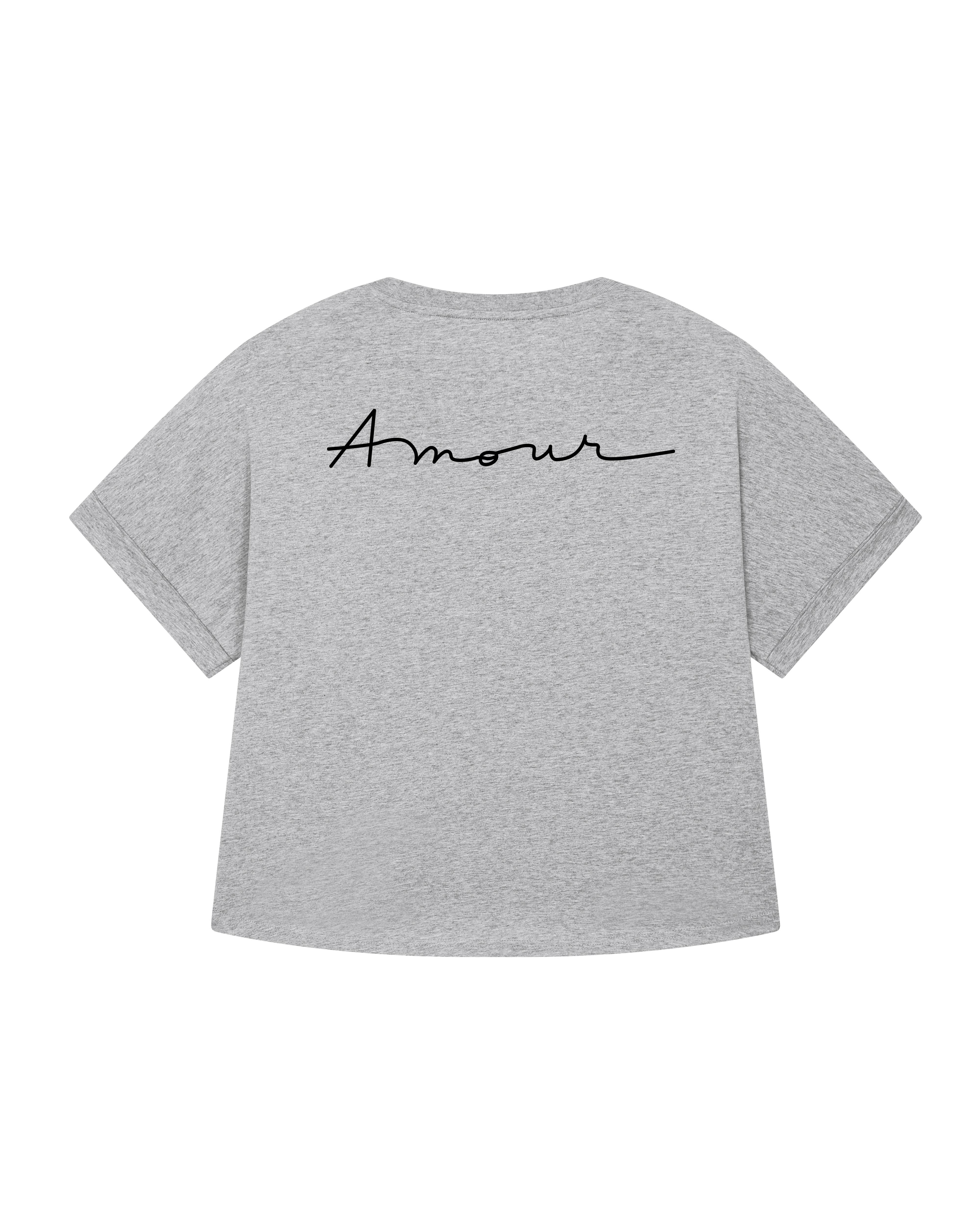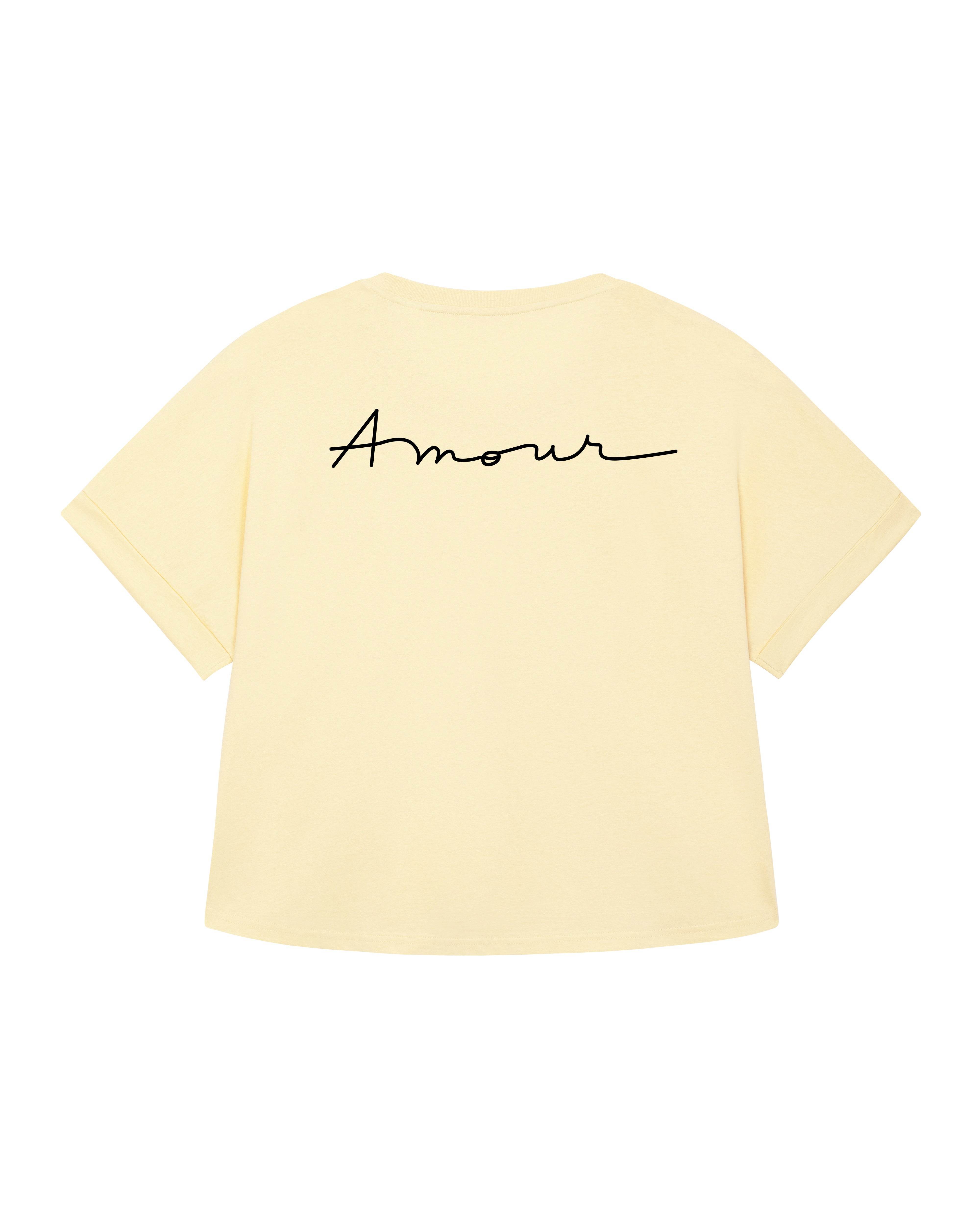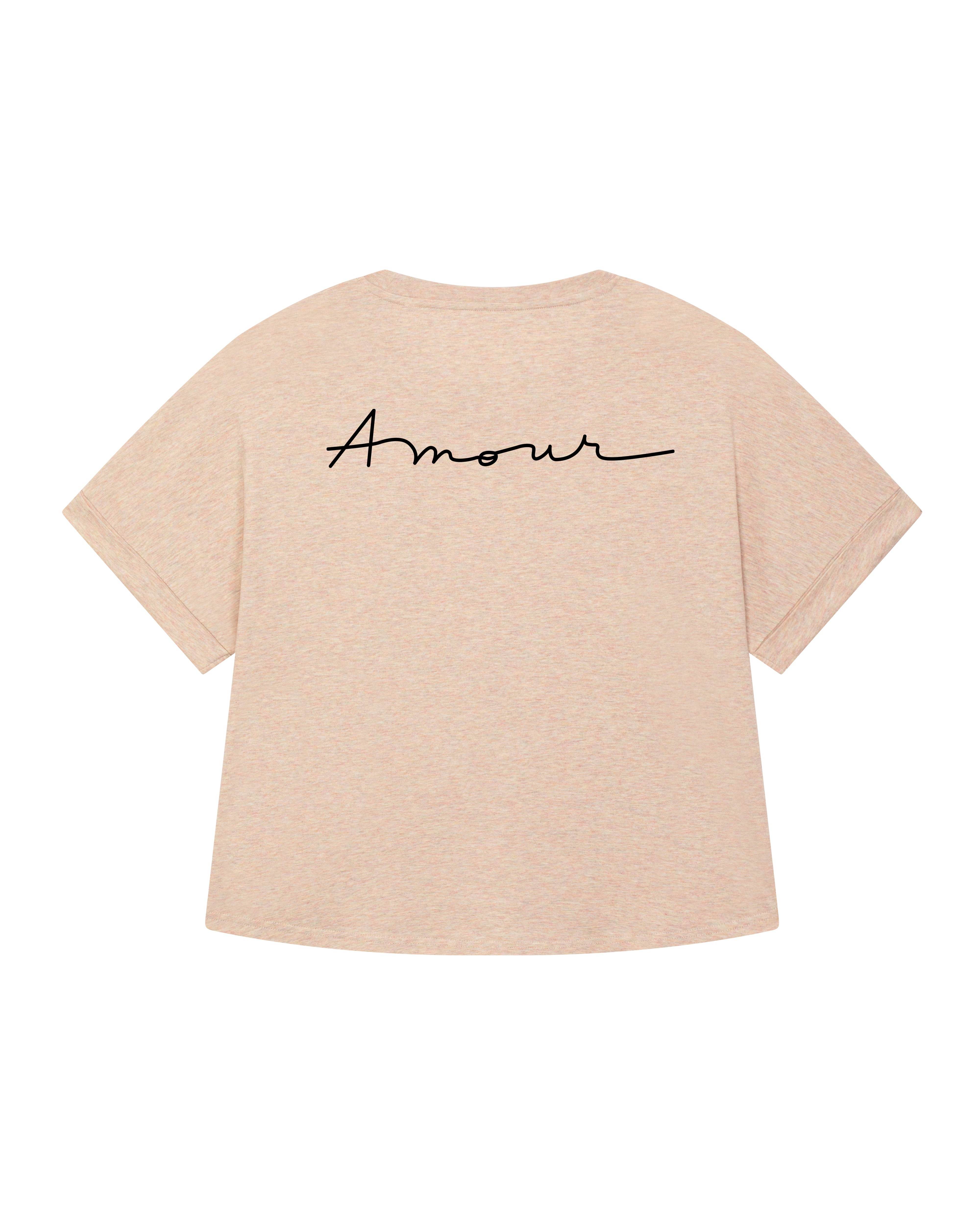 T-shirt Femme Manches Roulottées Imprimé au Dos "Amour"