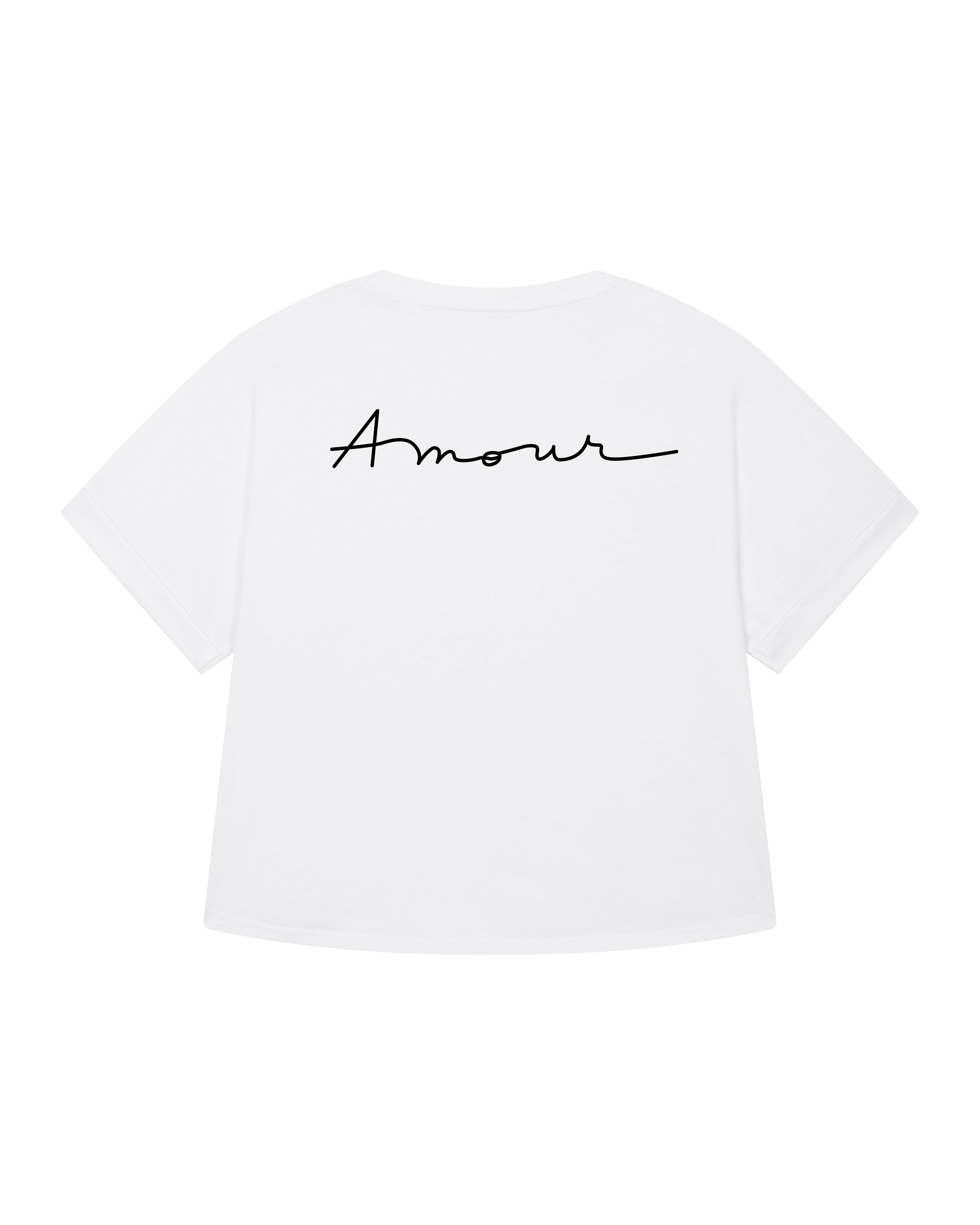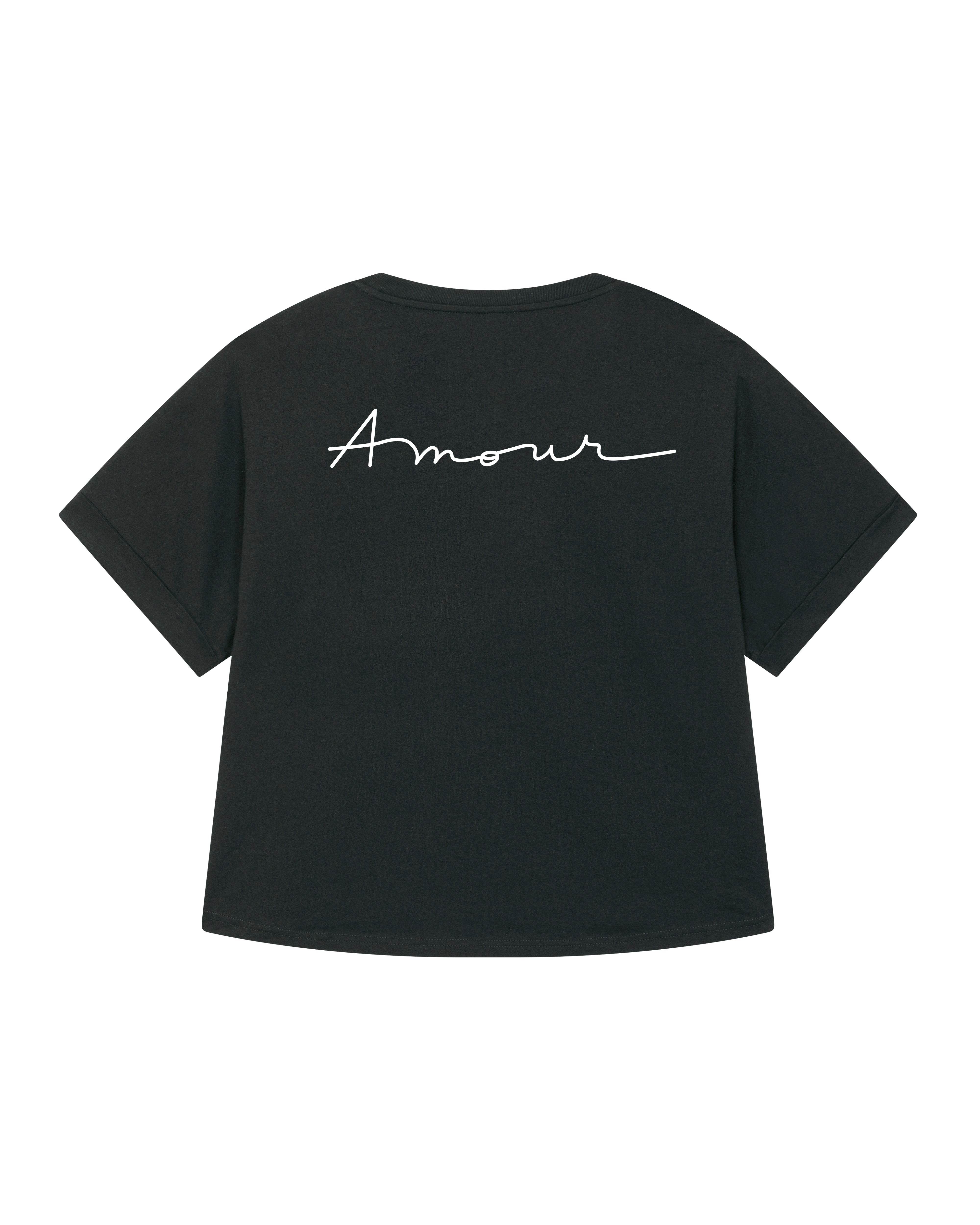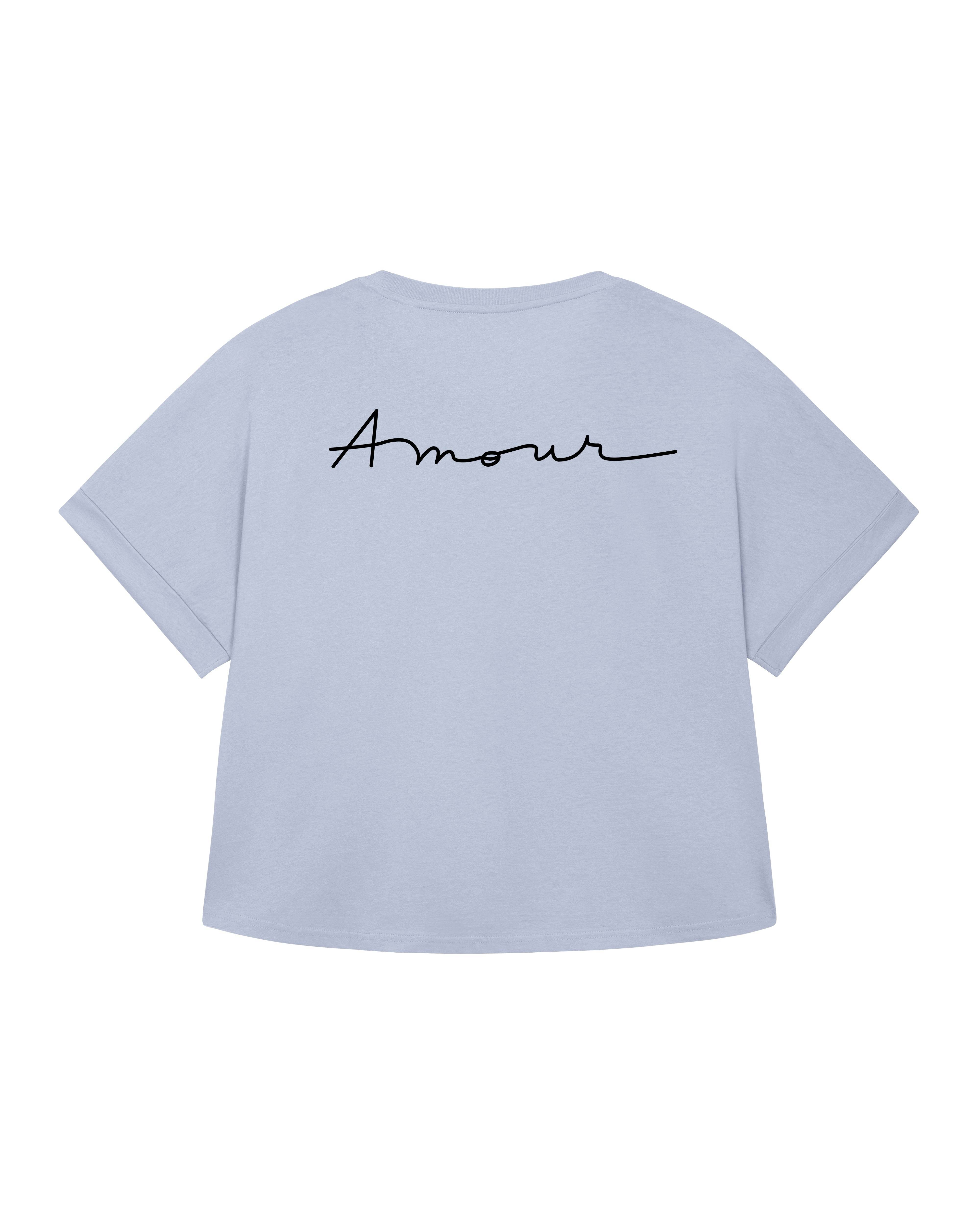 T-shirt Femme Manches Roulottées Imprimé au Dos "Amour"