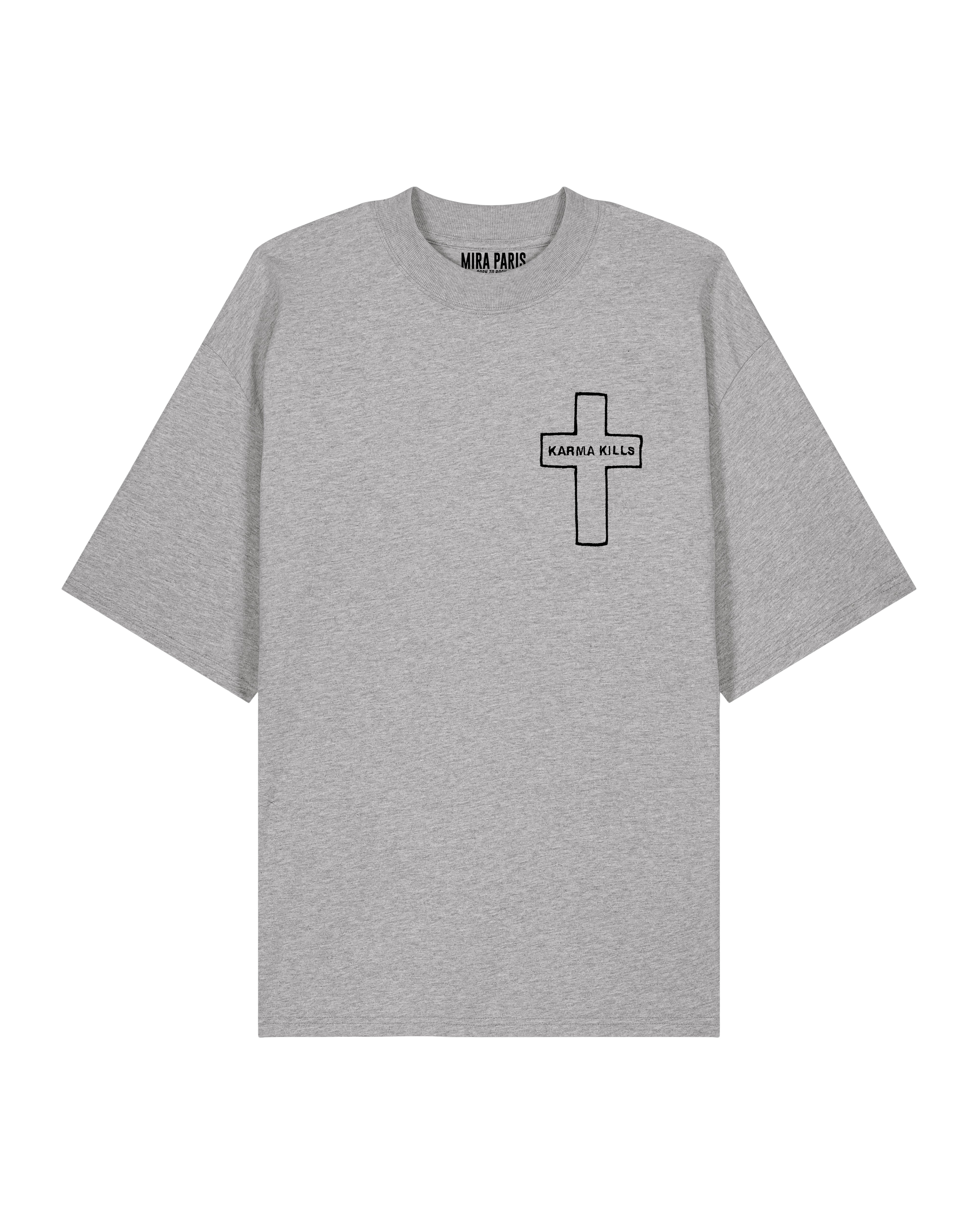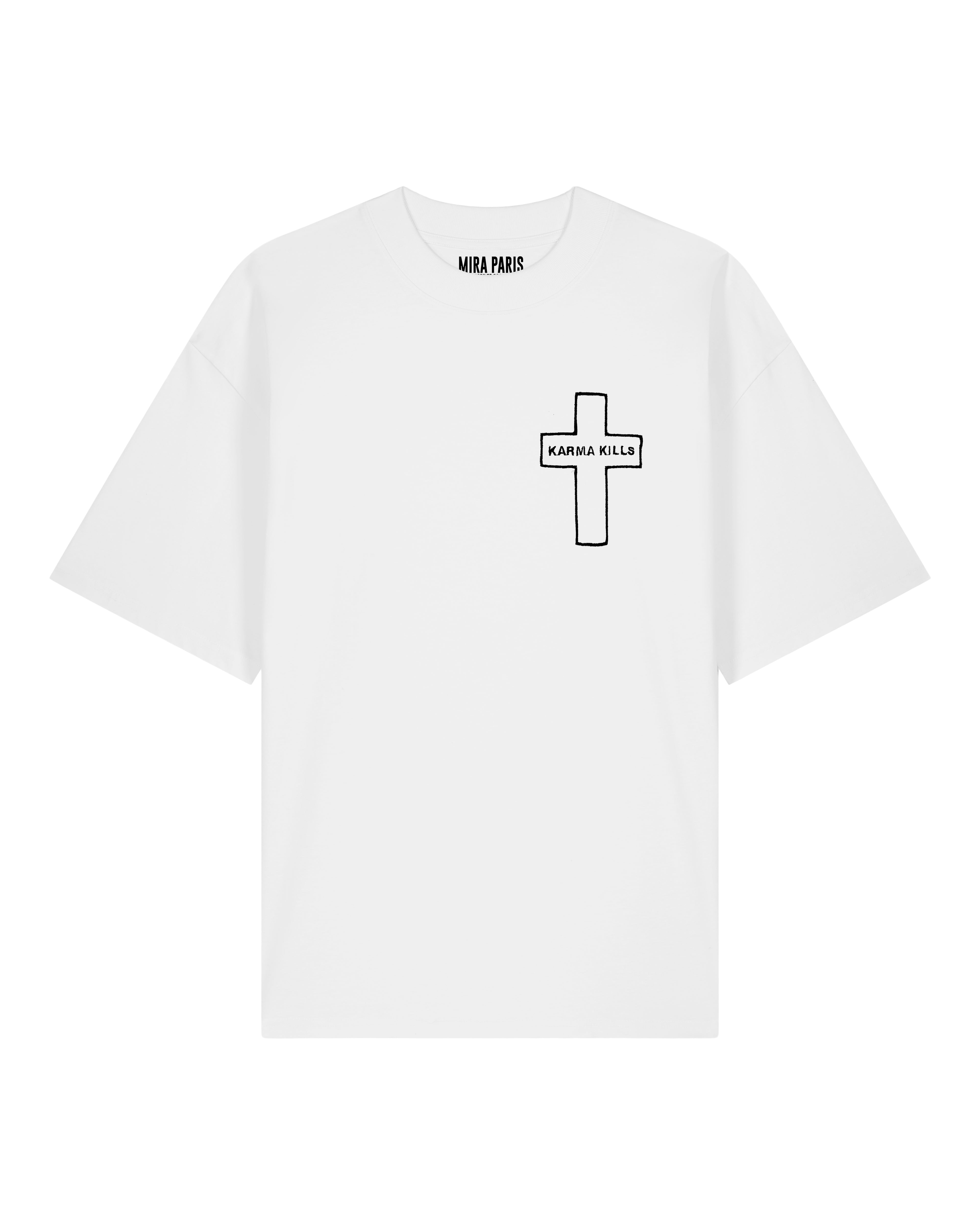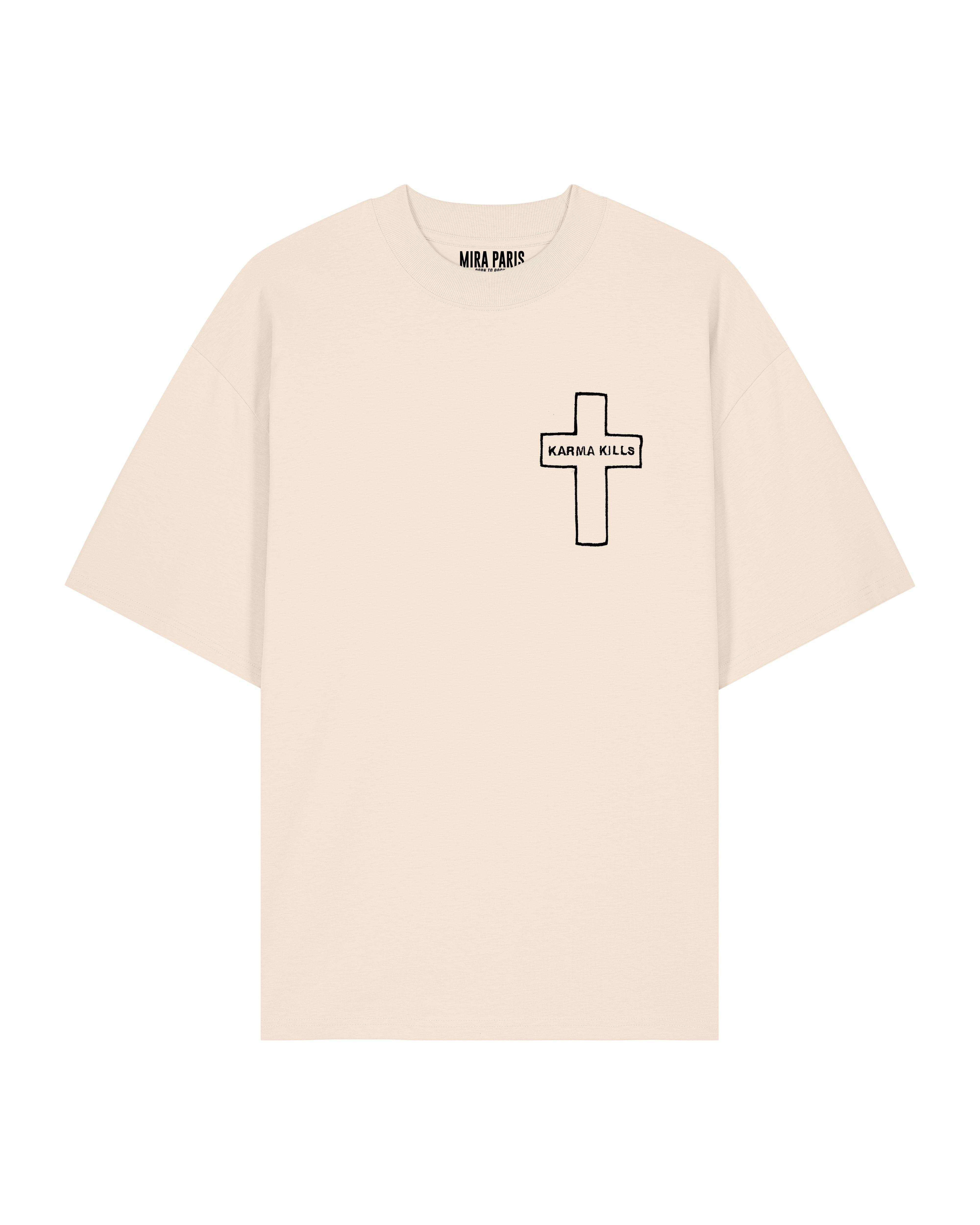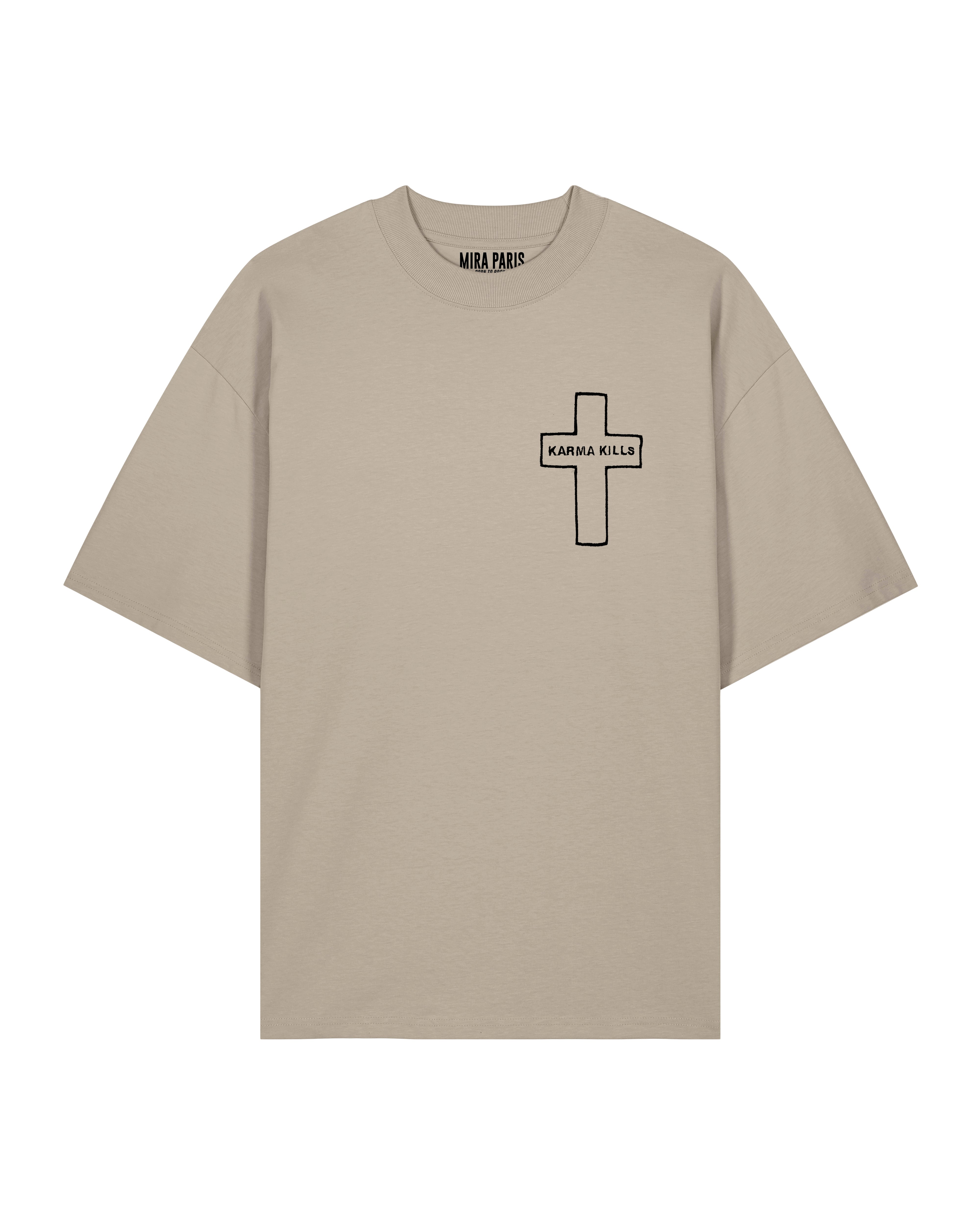 T-shirt Oversize en Jersey Épais Brodé "Karma Kills"