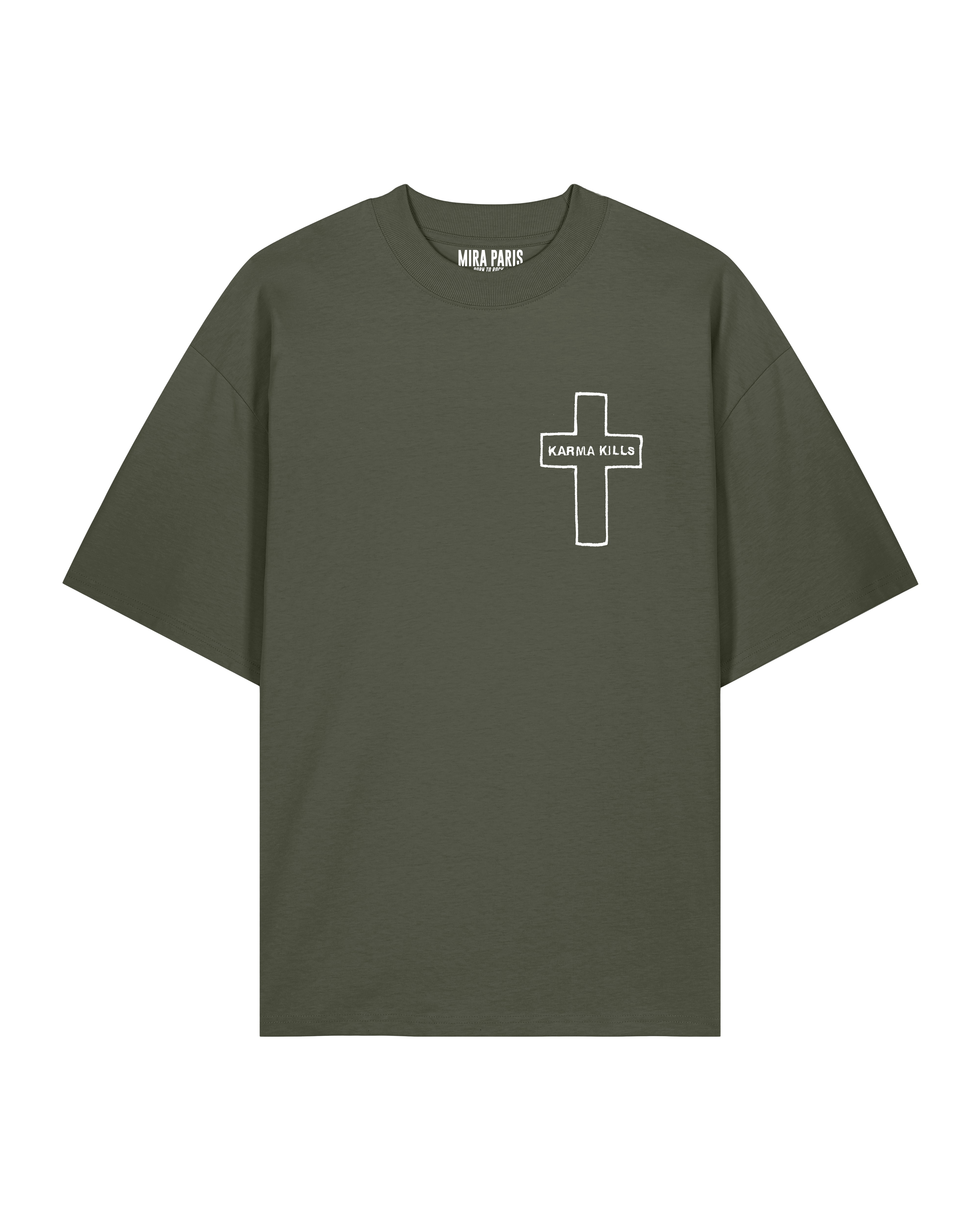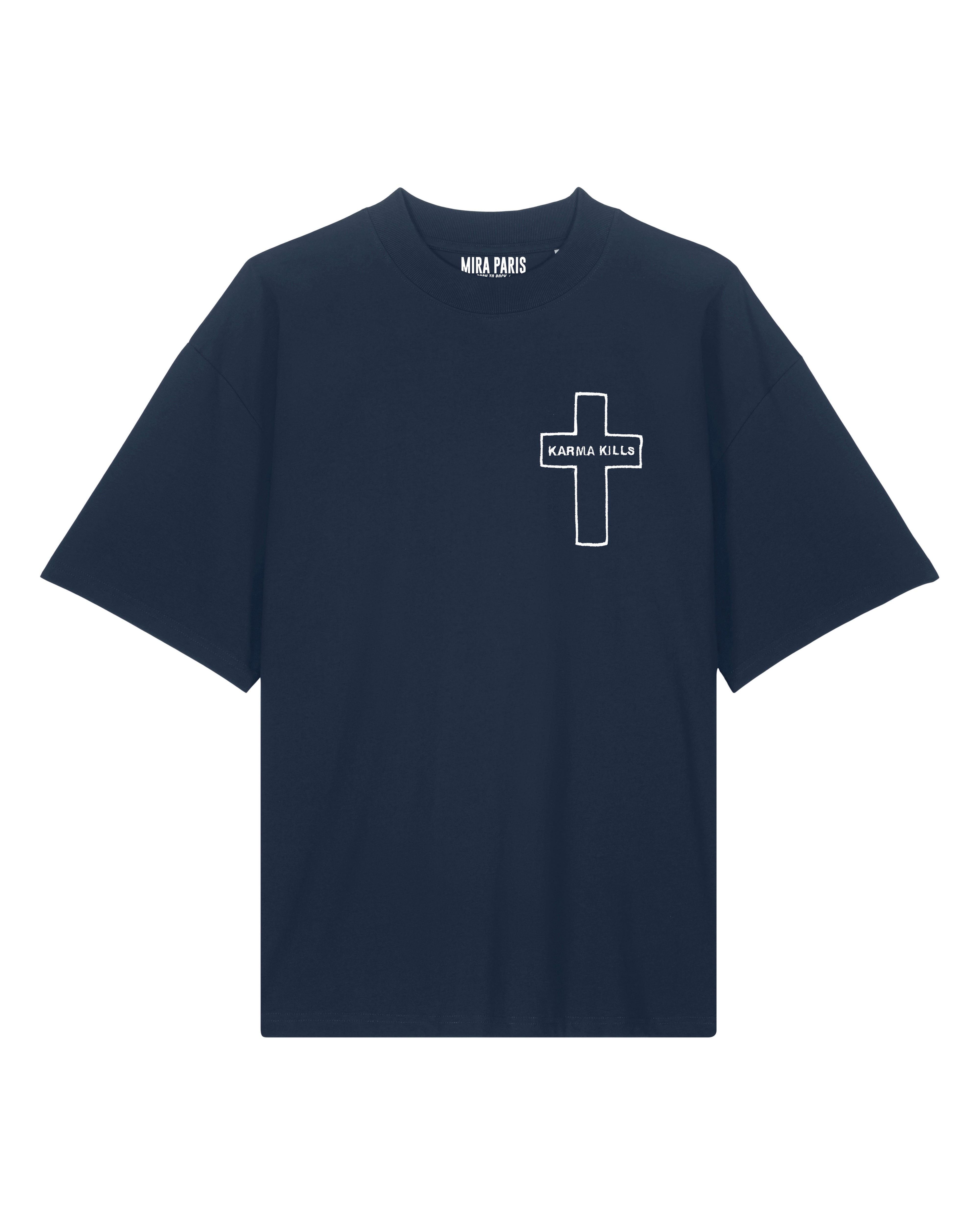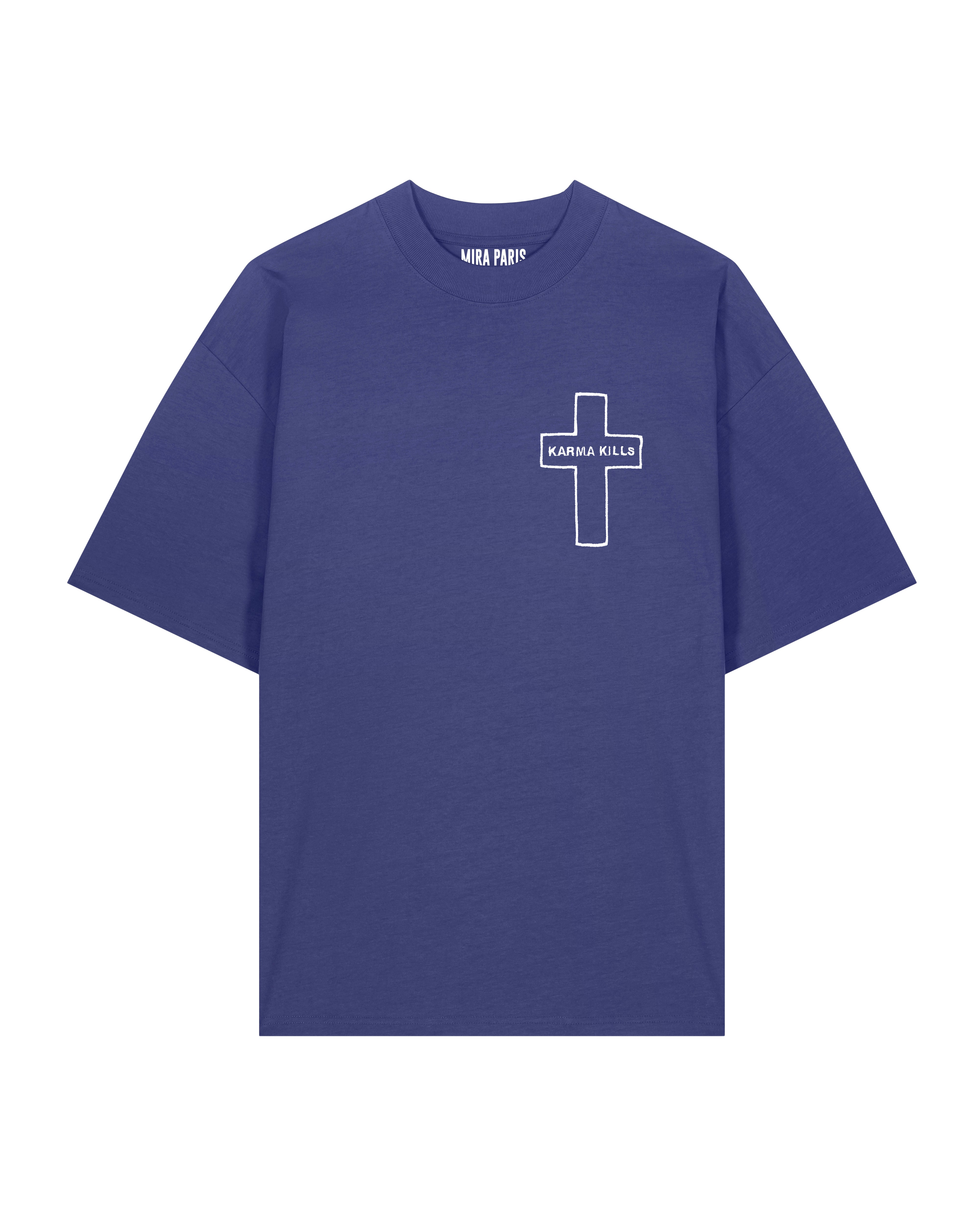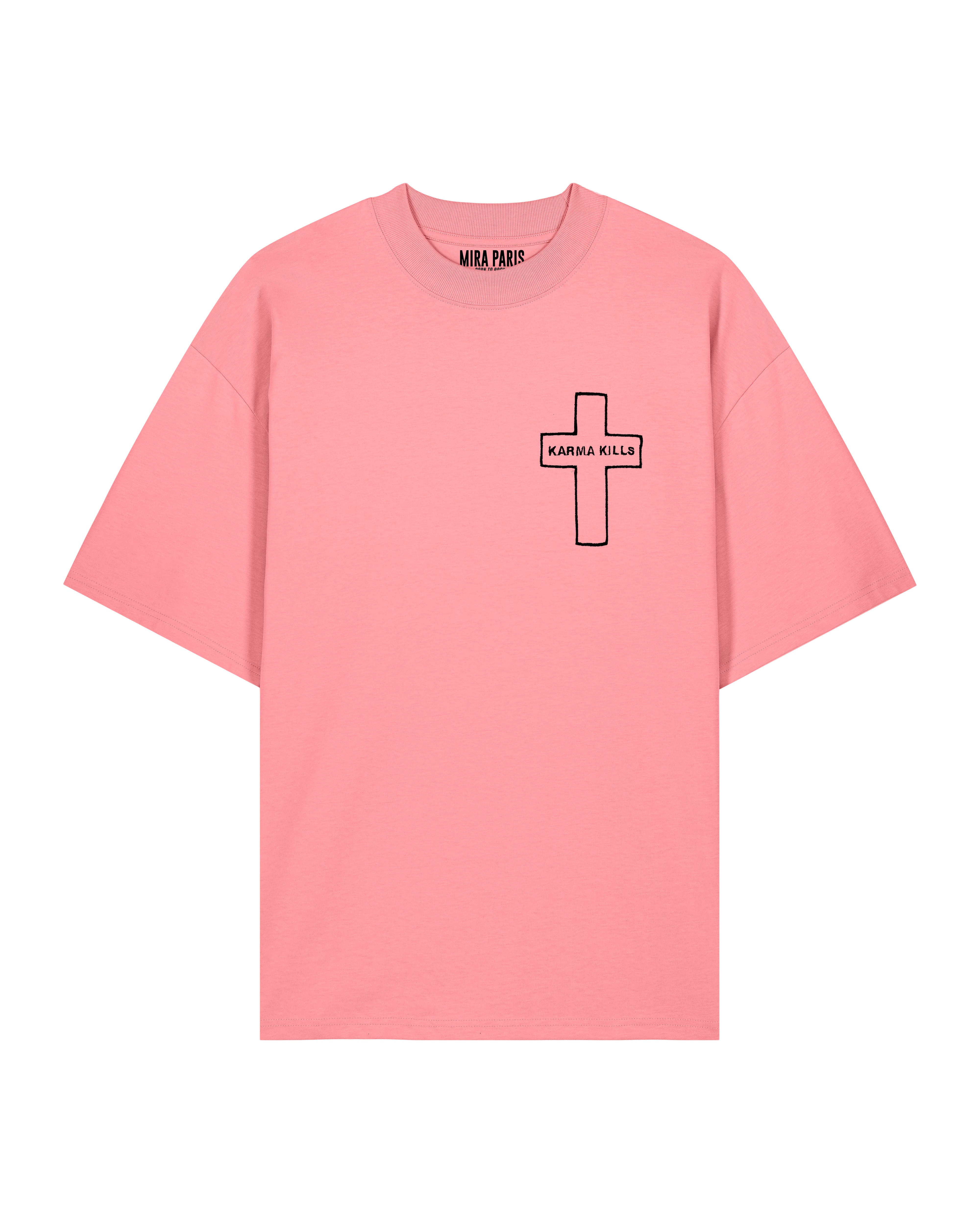 T-shirt Oversize en Jersey Épais Brodé "Karma Kills"