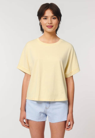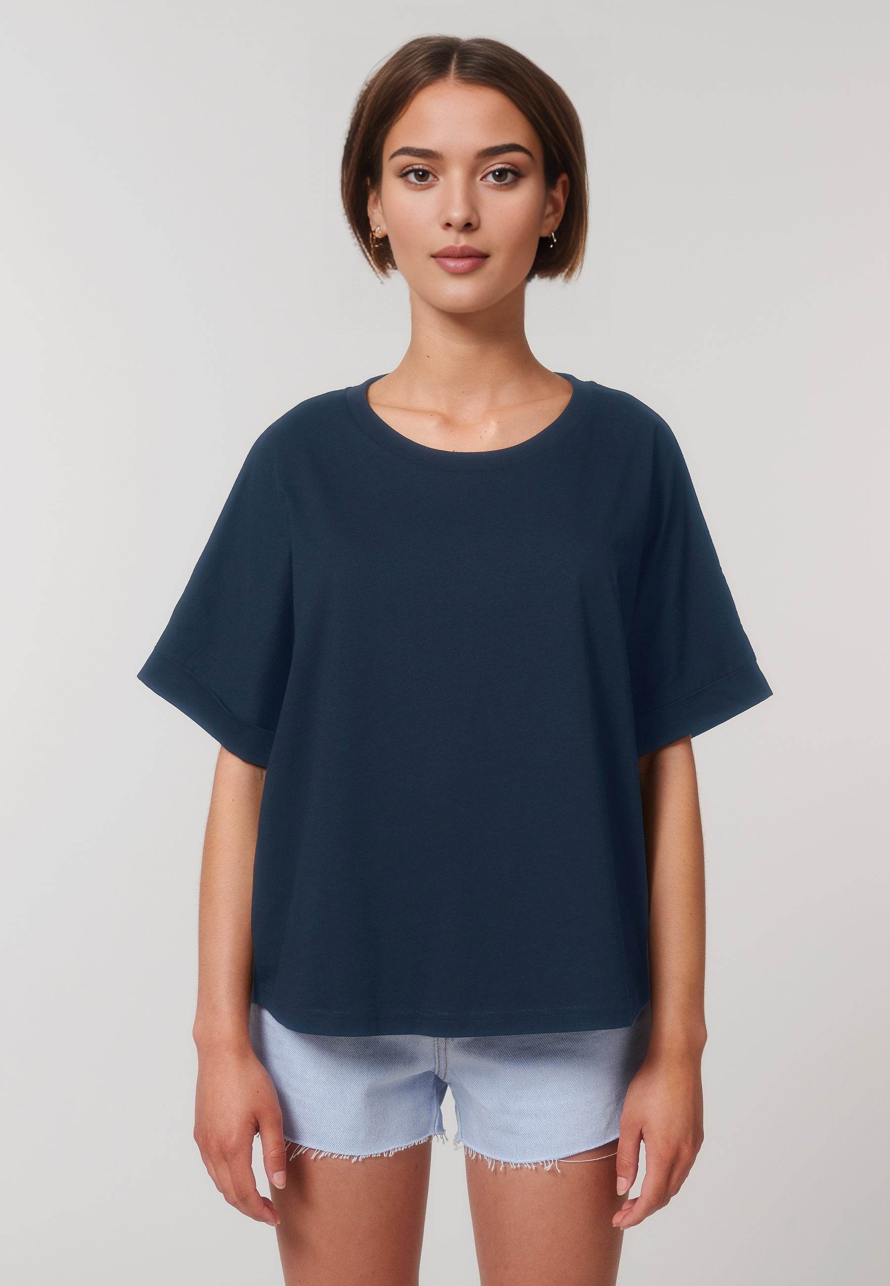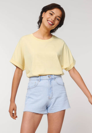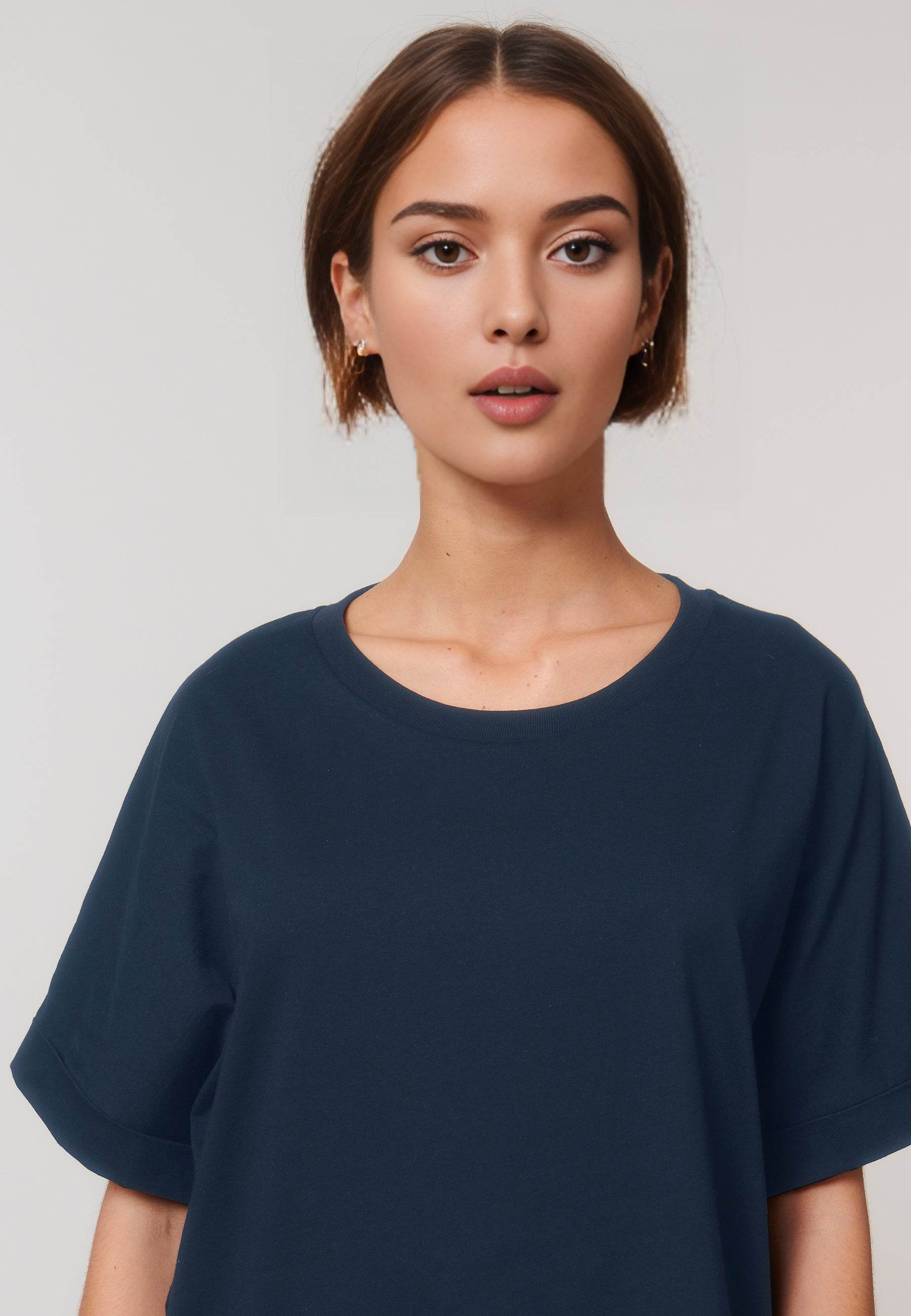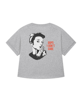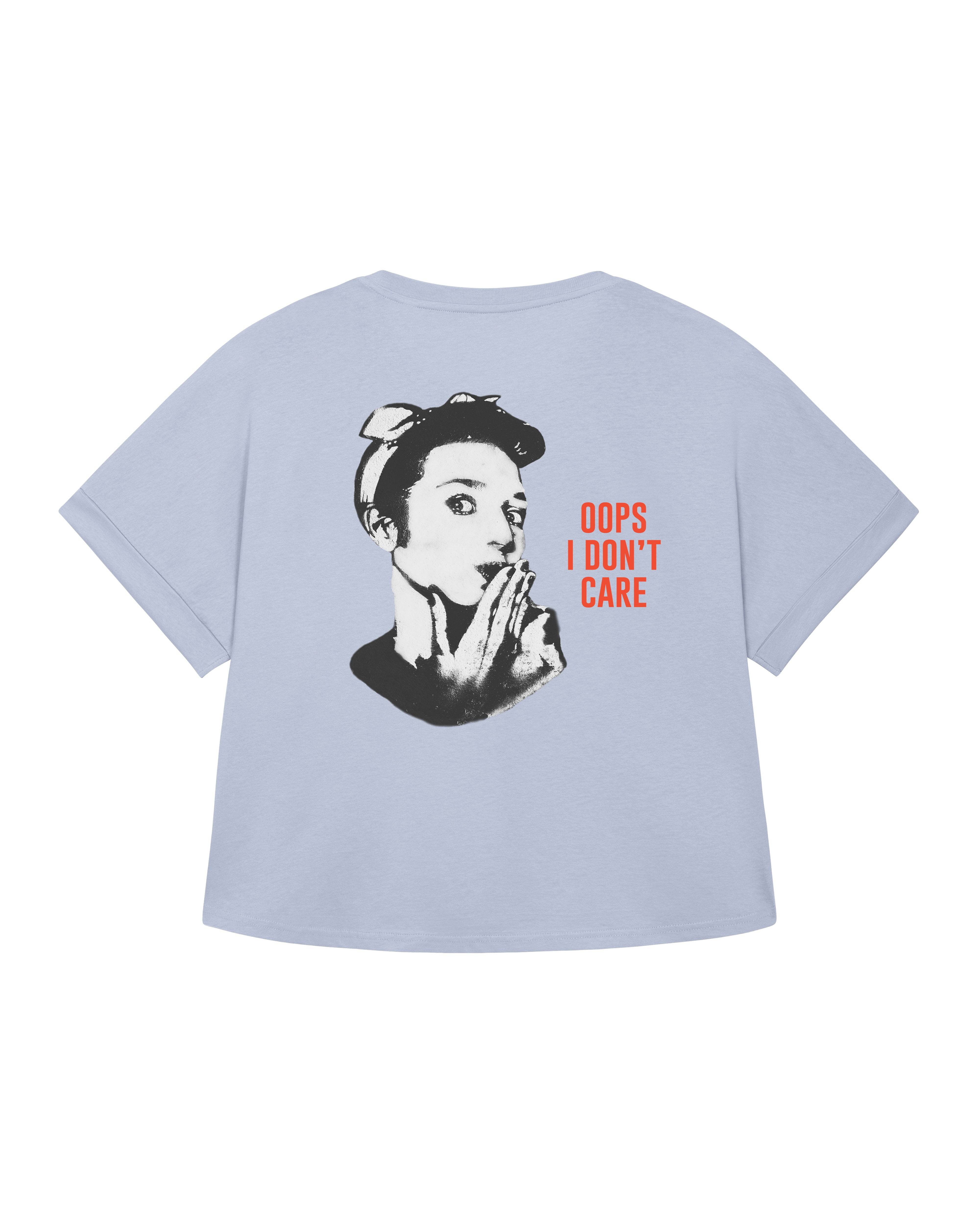 T-shirt Femme Manches Roulottées Imprimé au Dos "Oops I Don't Care"