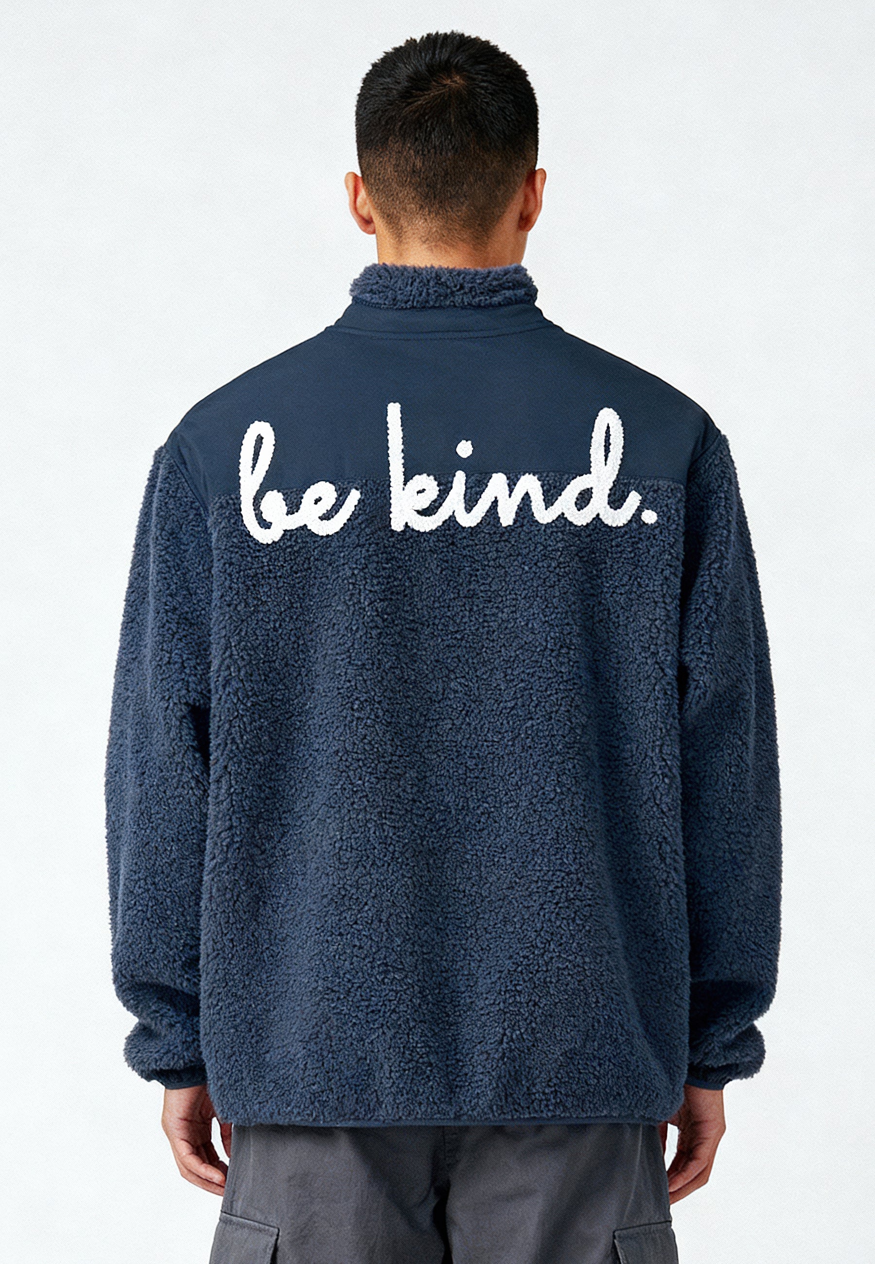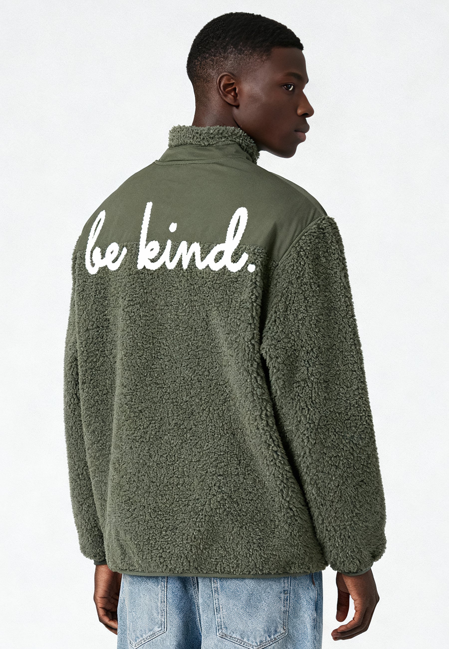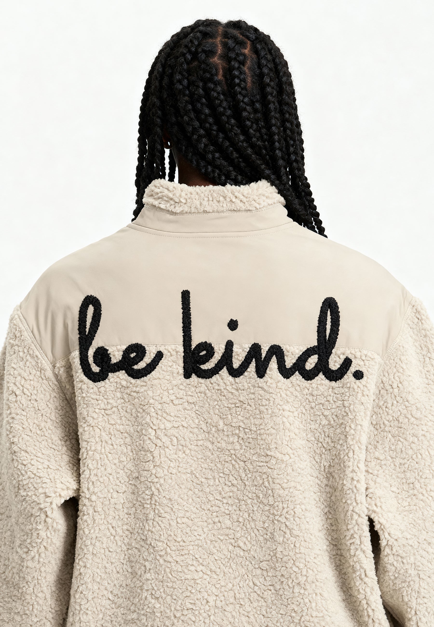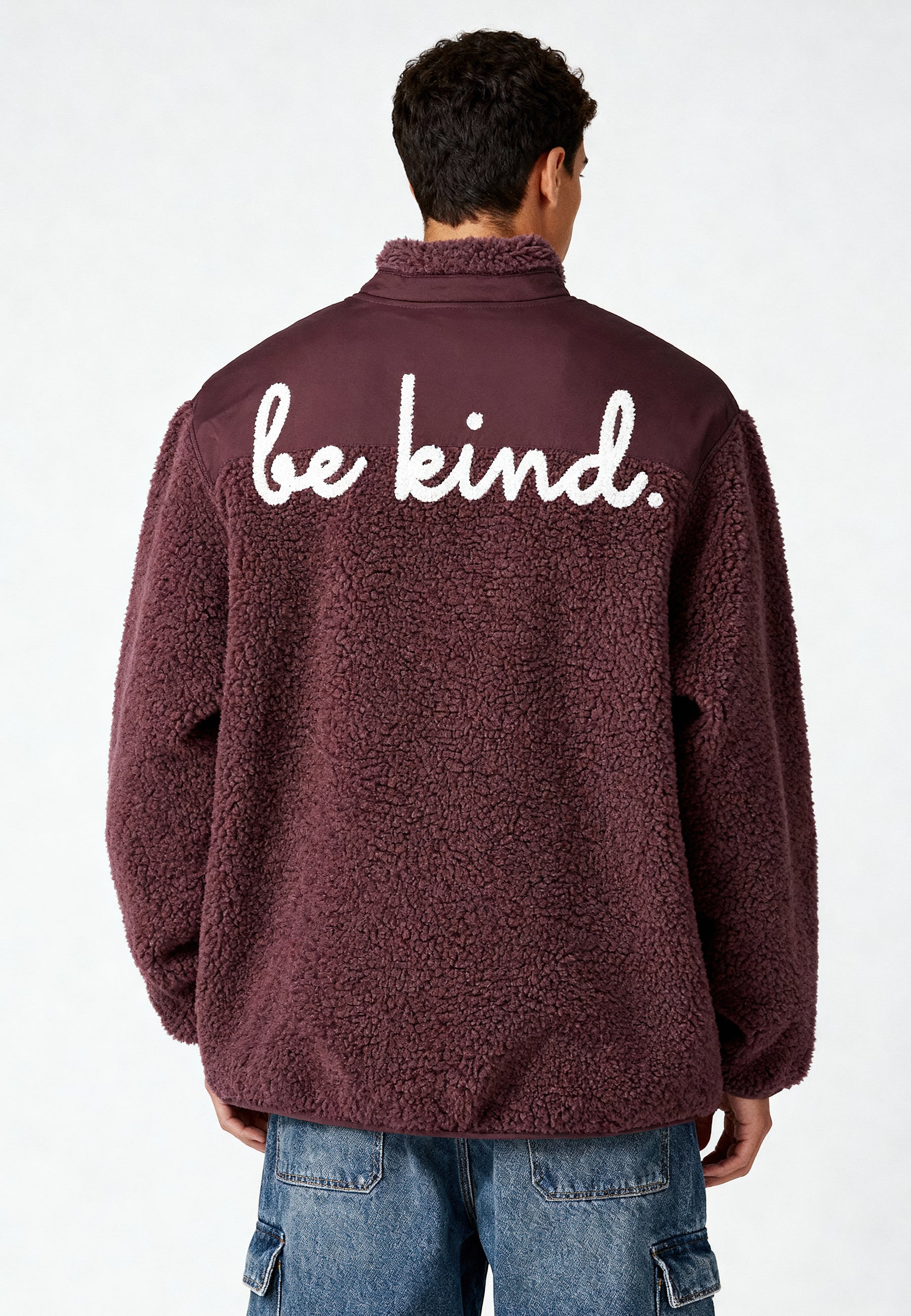 Veste Unisexe en Sherpa Brodée au Dos "Be Kind"