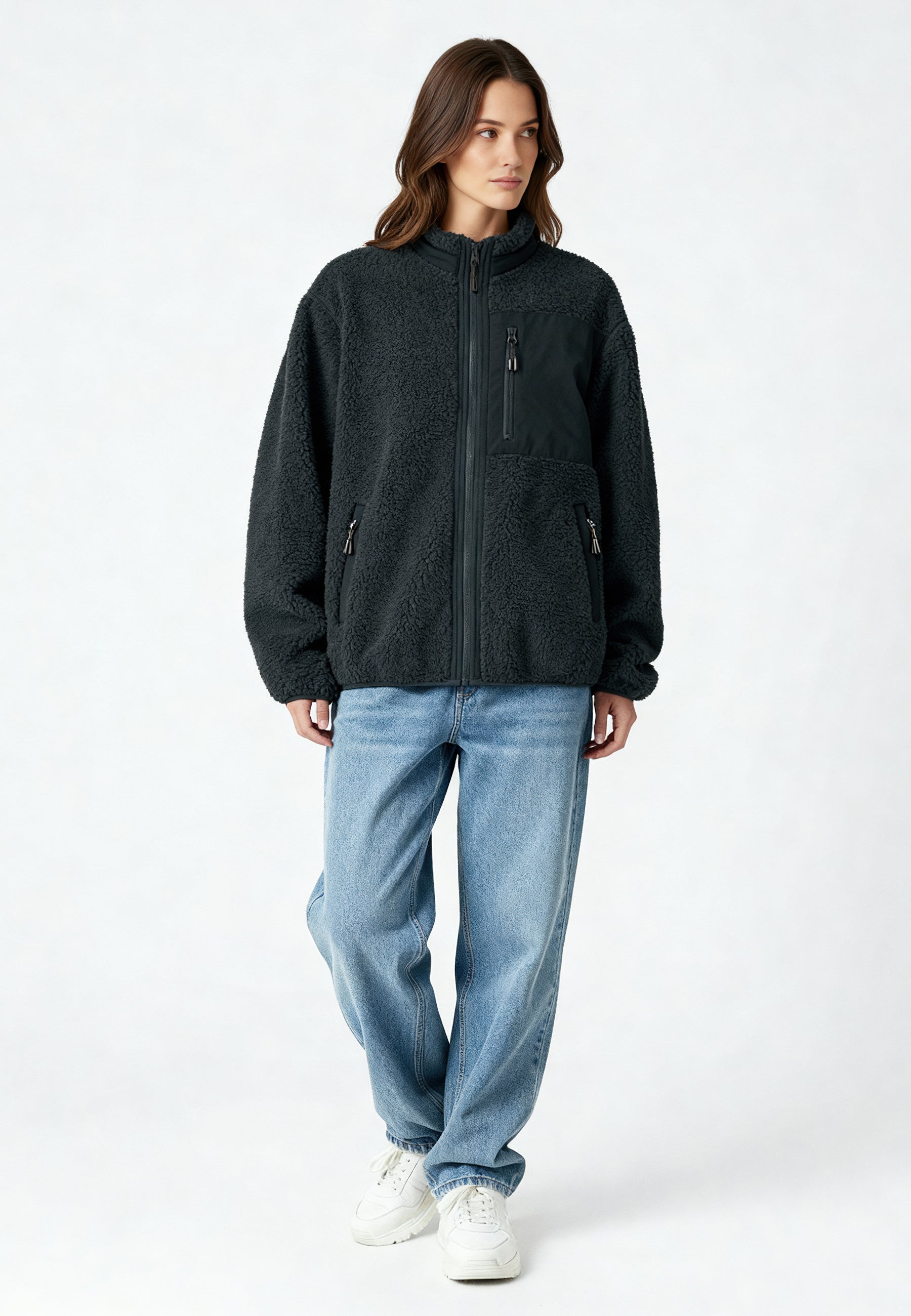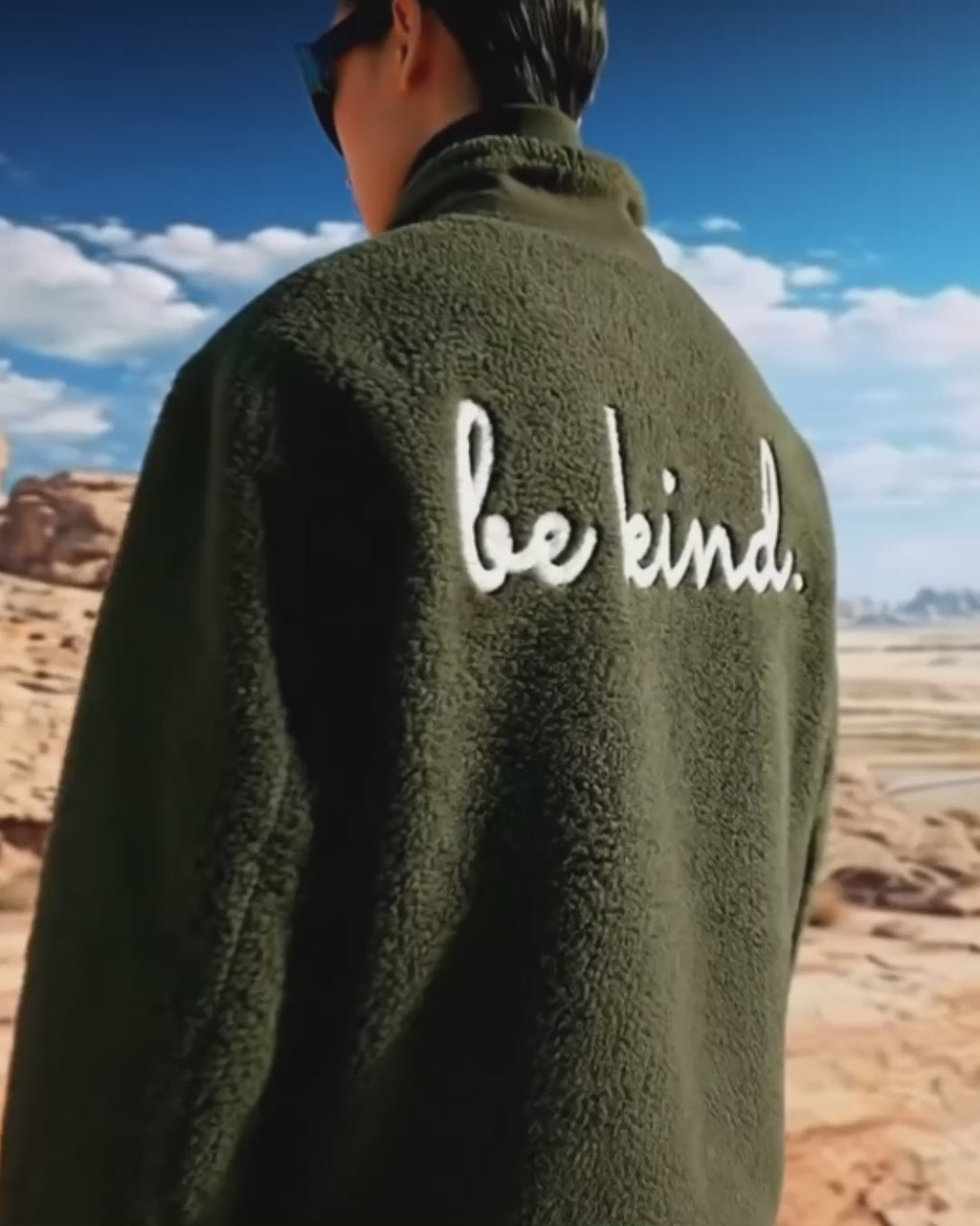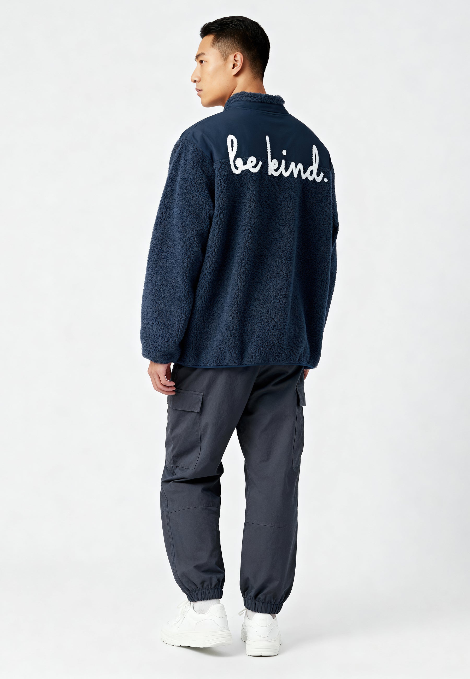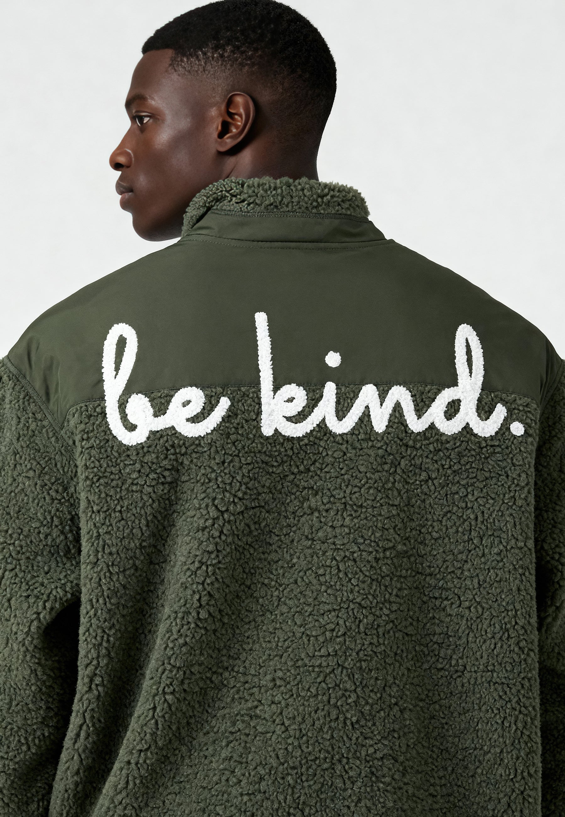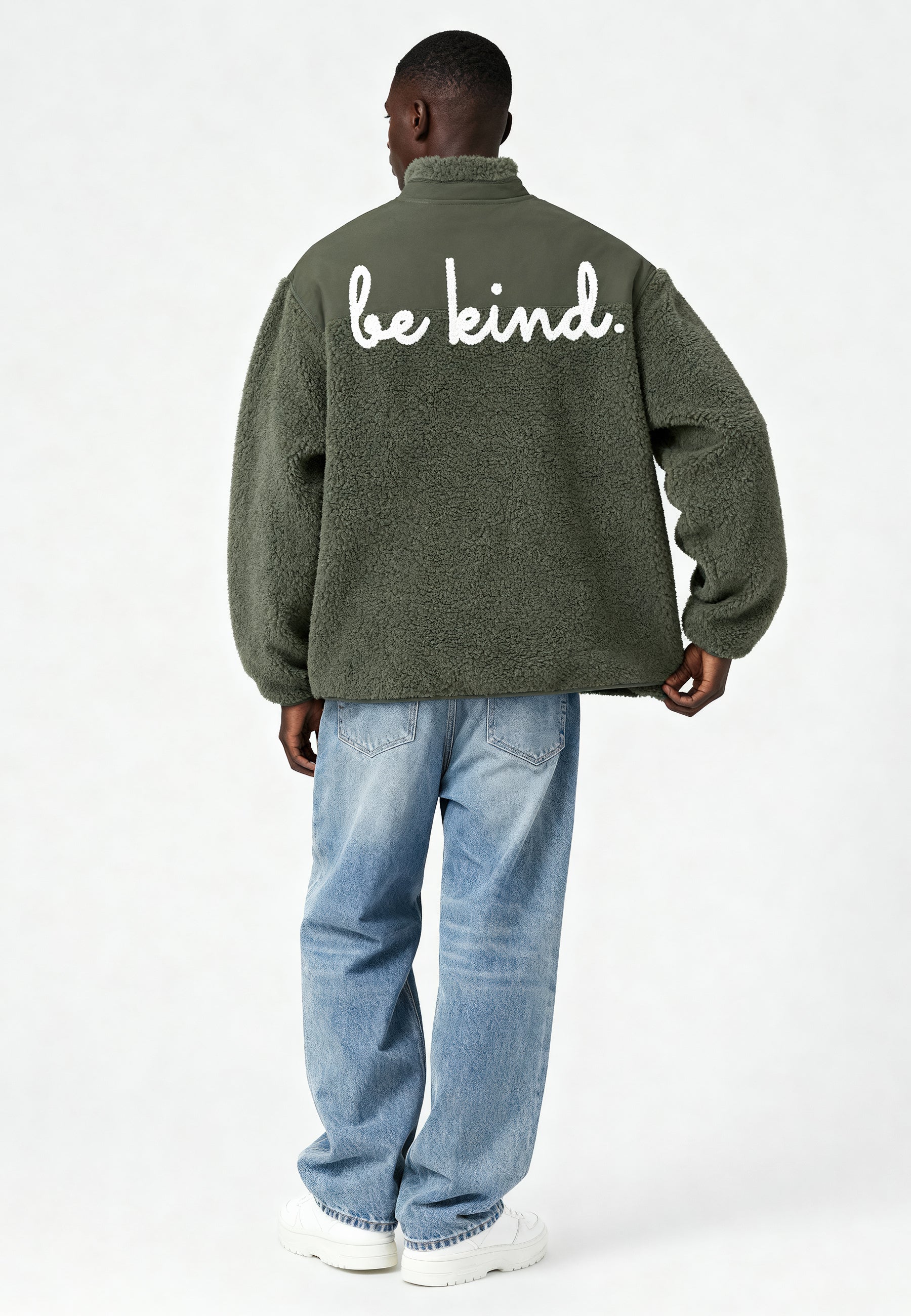 Veste Unisexe en Sherpa Brodée au Dos "Be Kind"