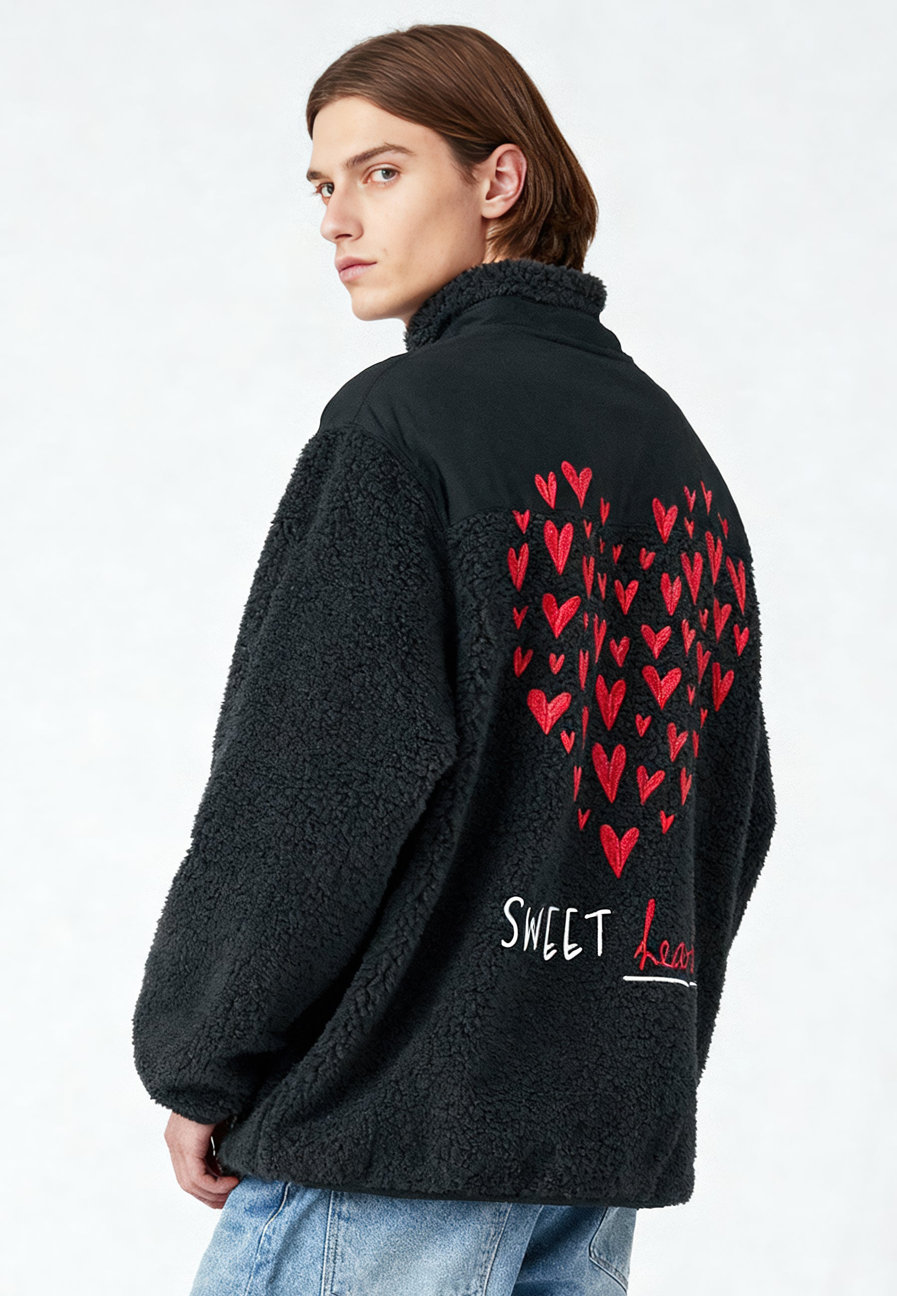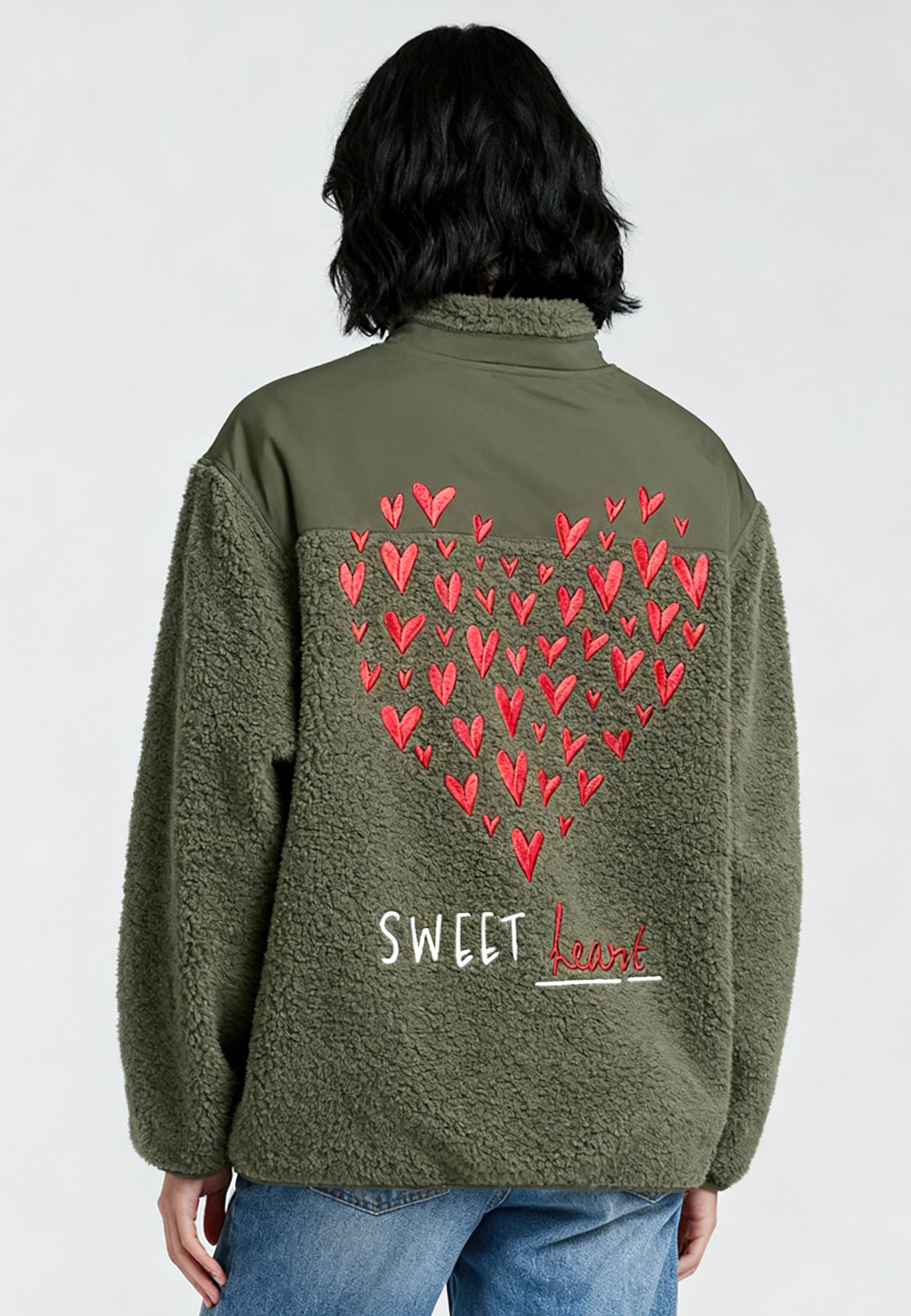 Veste Unisexe en Sherpa Brodée au Dos "Sweetheart"